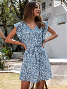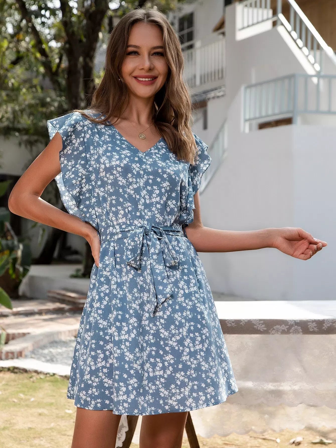 Ditsy Floral Ruffle Trimed A-line Dress Without Belt