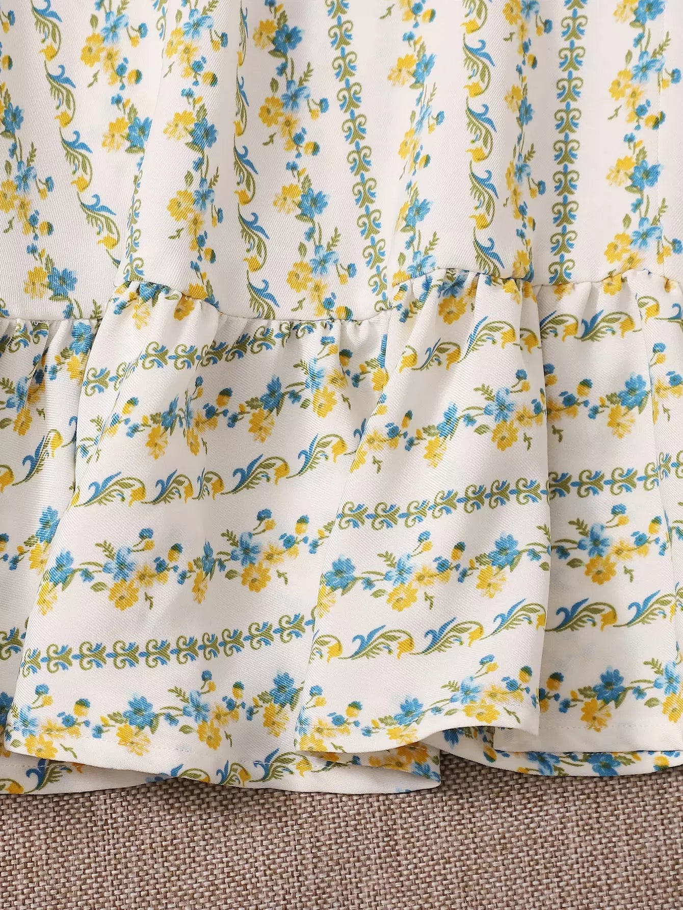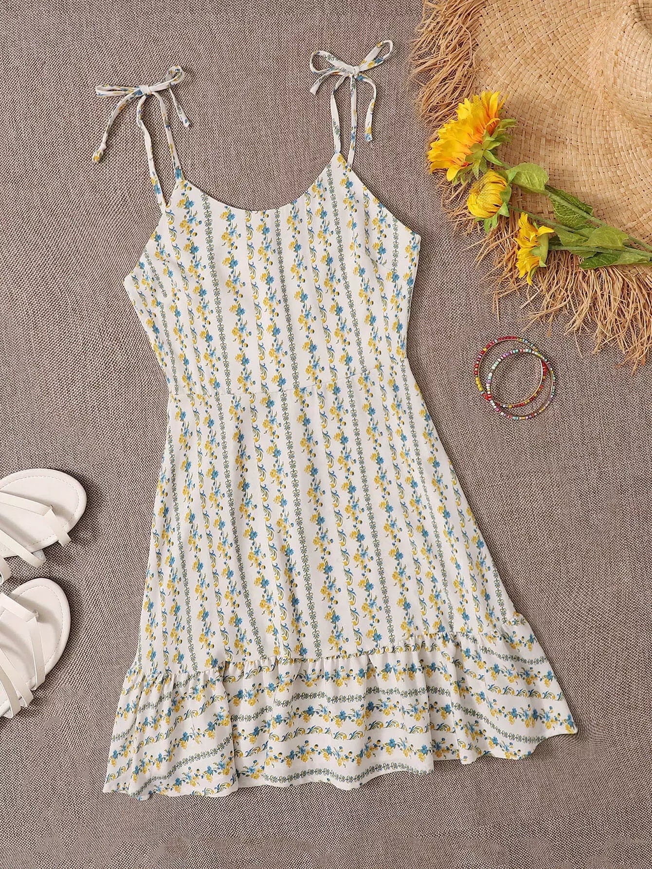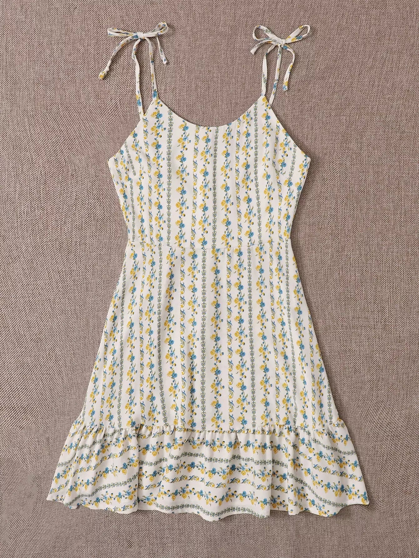 Ditsy Floral Tie Shoulder Ruffle Hem Cami Dress