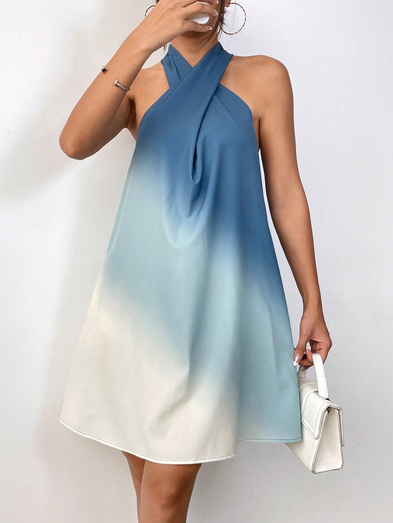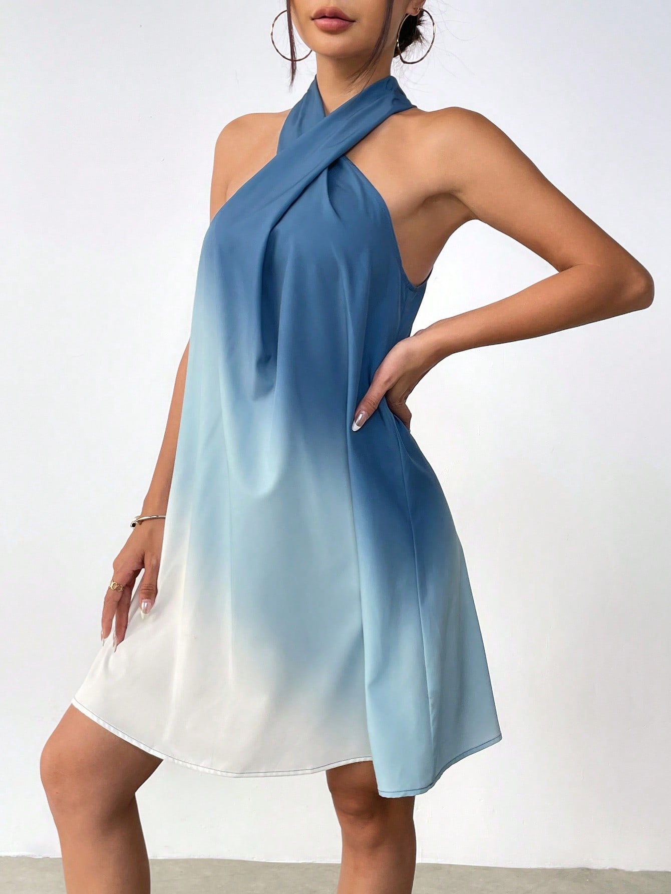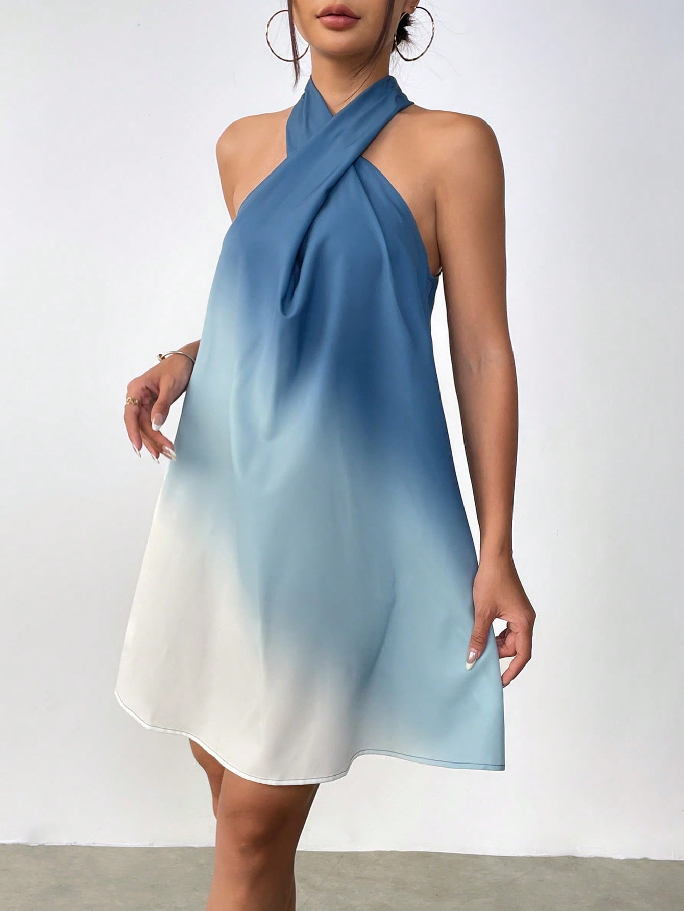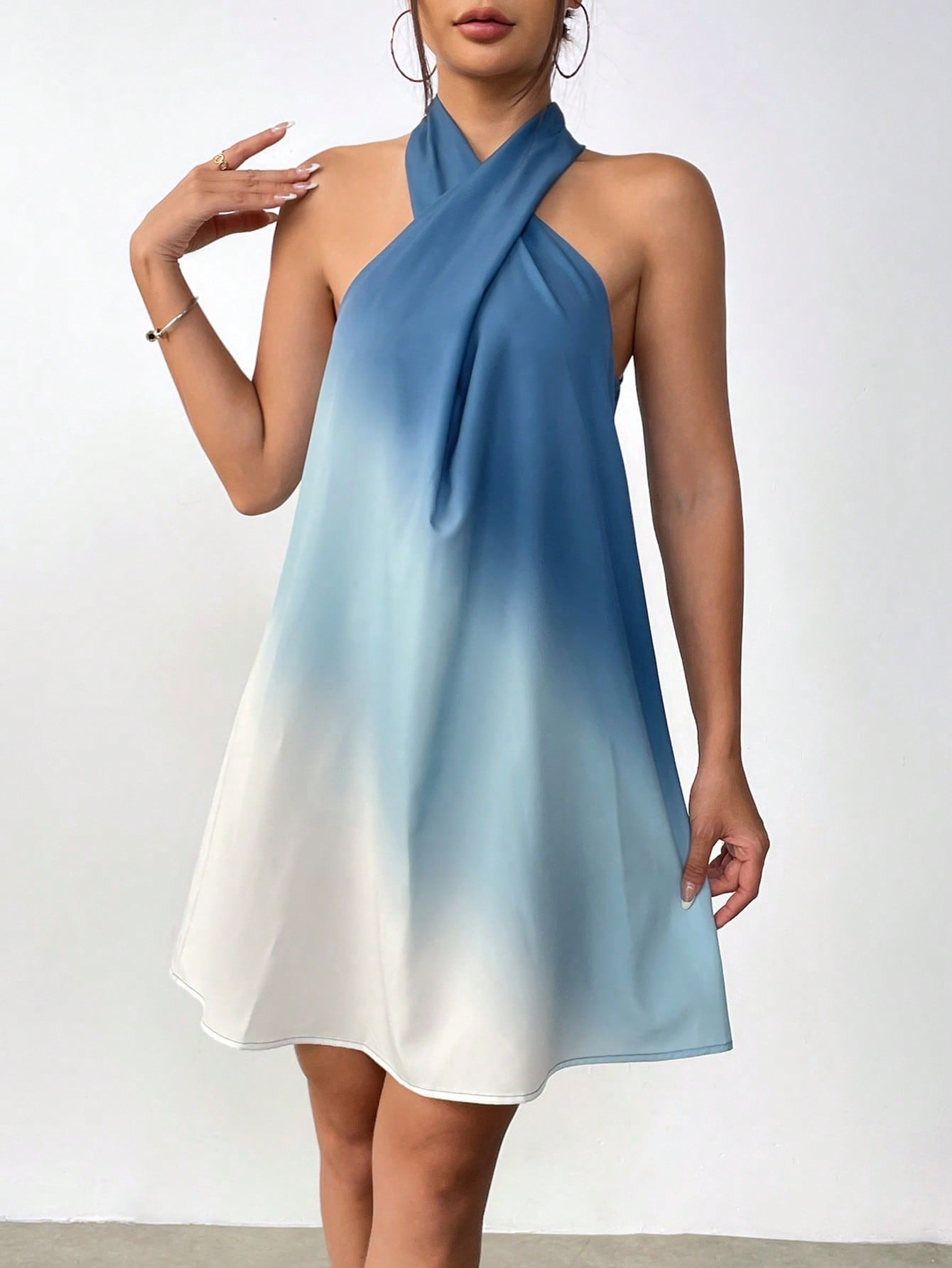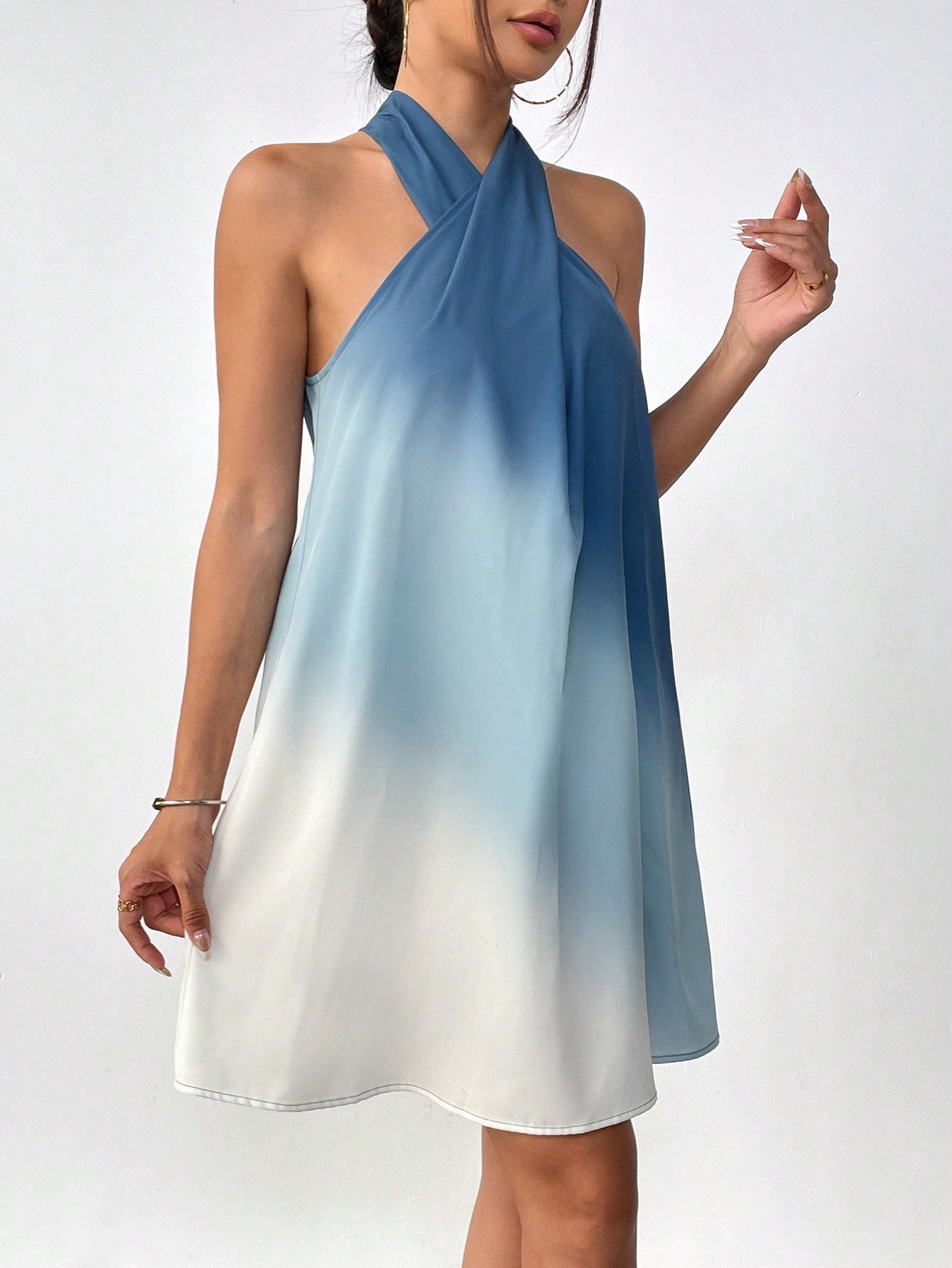 Firerie Spring Break Halter Neck Blue Gradient Dress