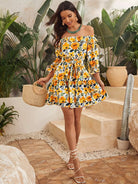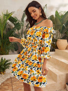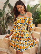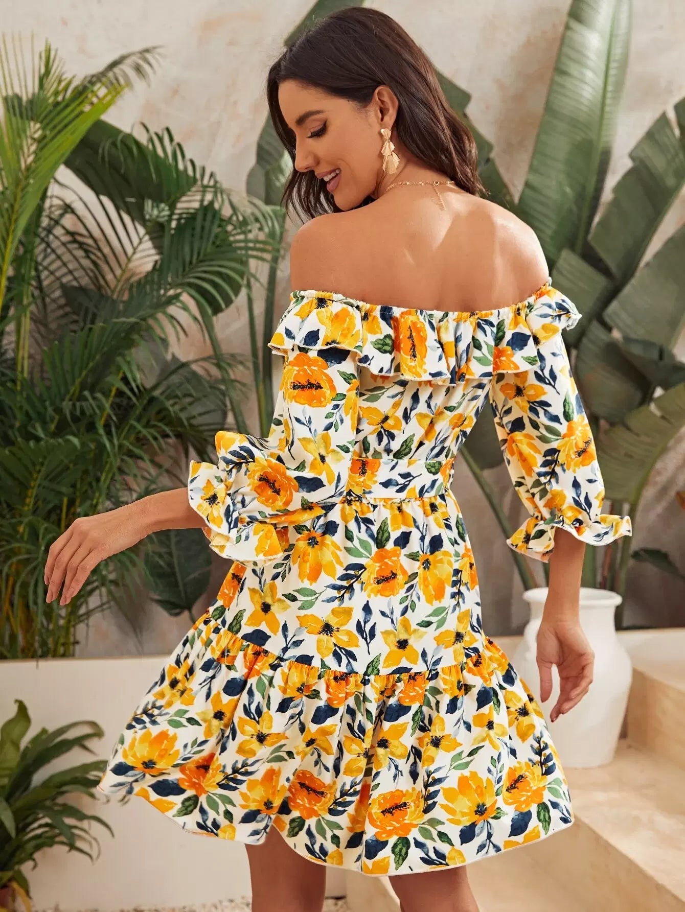Floral Off Shoulder Ruffle Hem Dress Without Belt