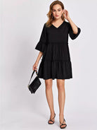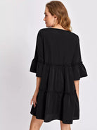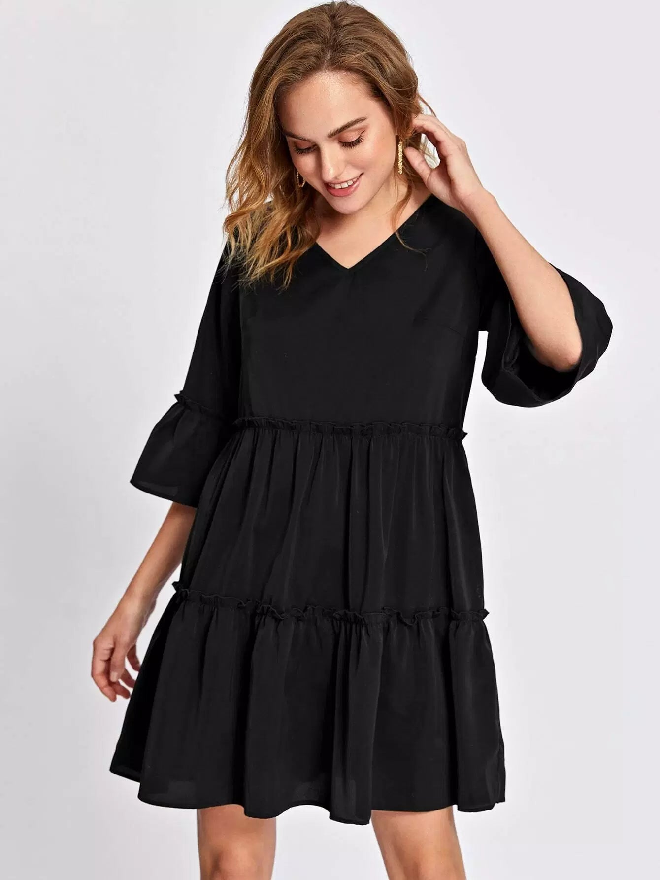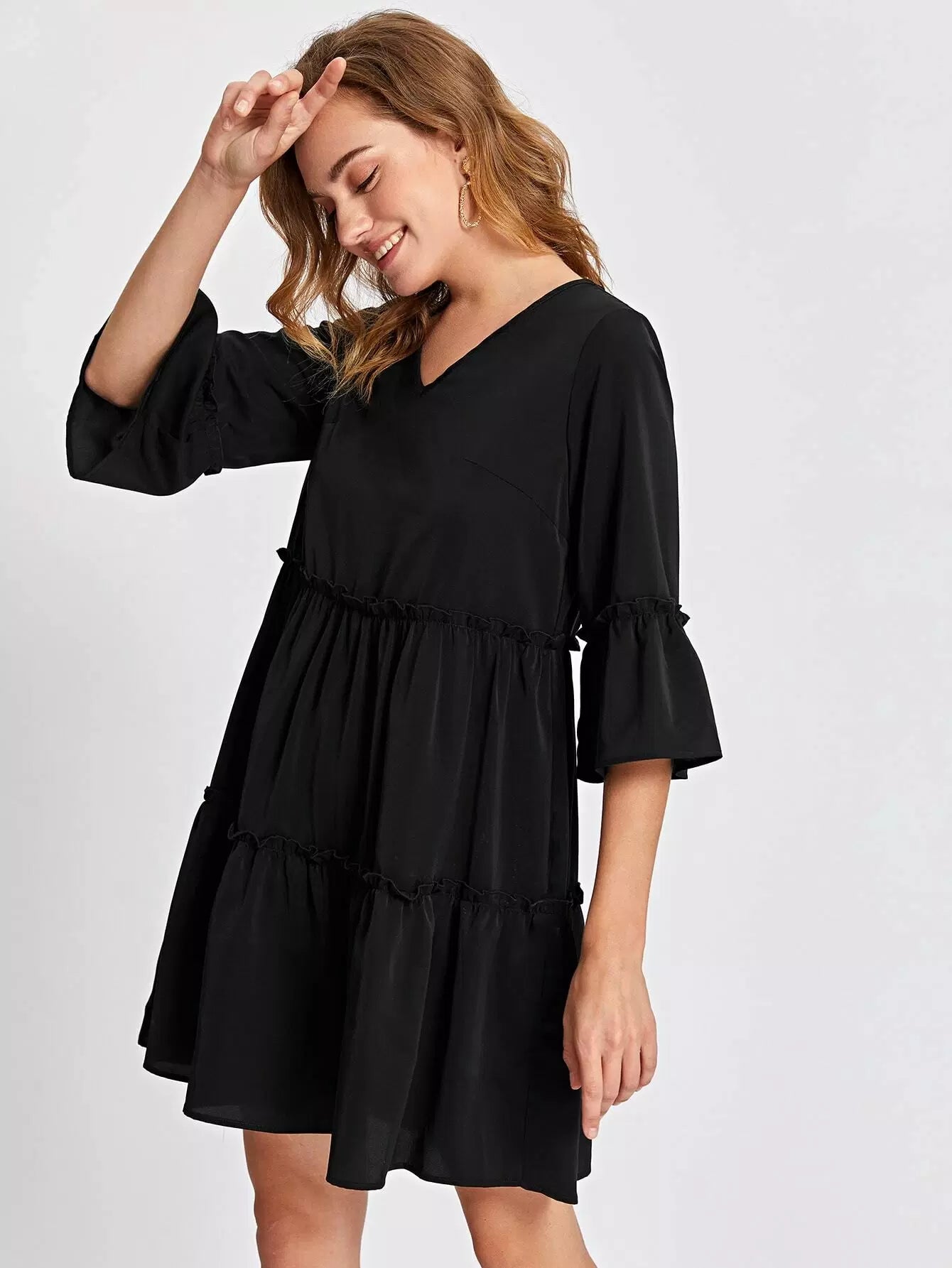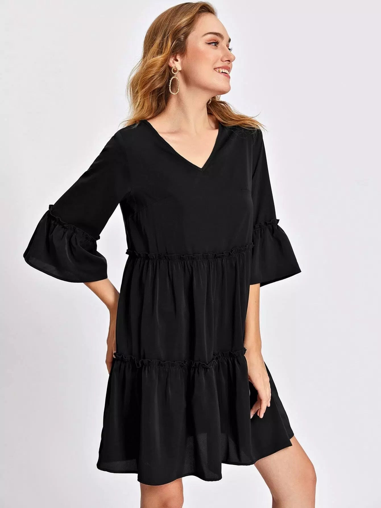 Flounce Sleeve Frill Ruffle Hem Smock Dress