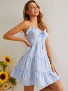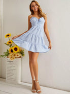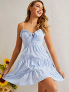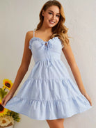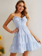 Frill Trim Tie Front Ruffle Hem Cami Dress