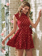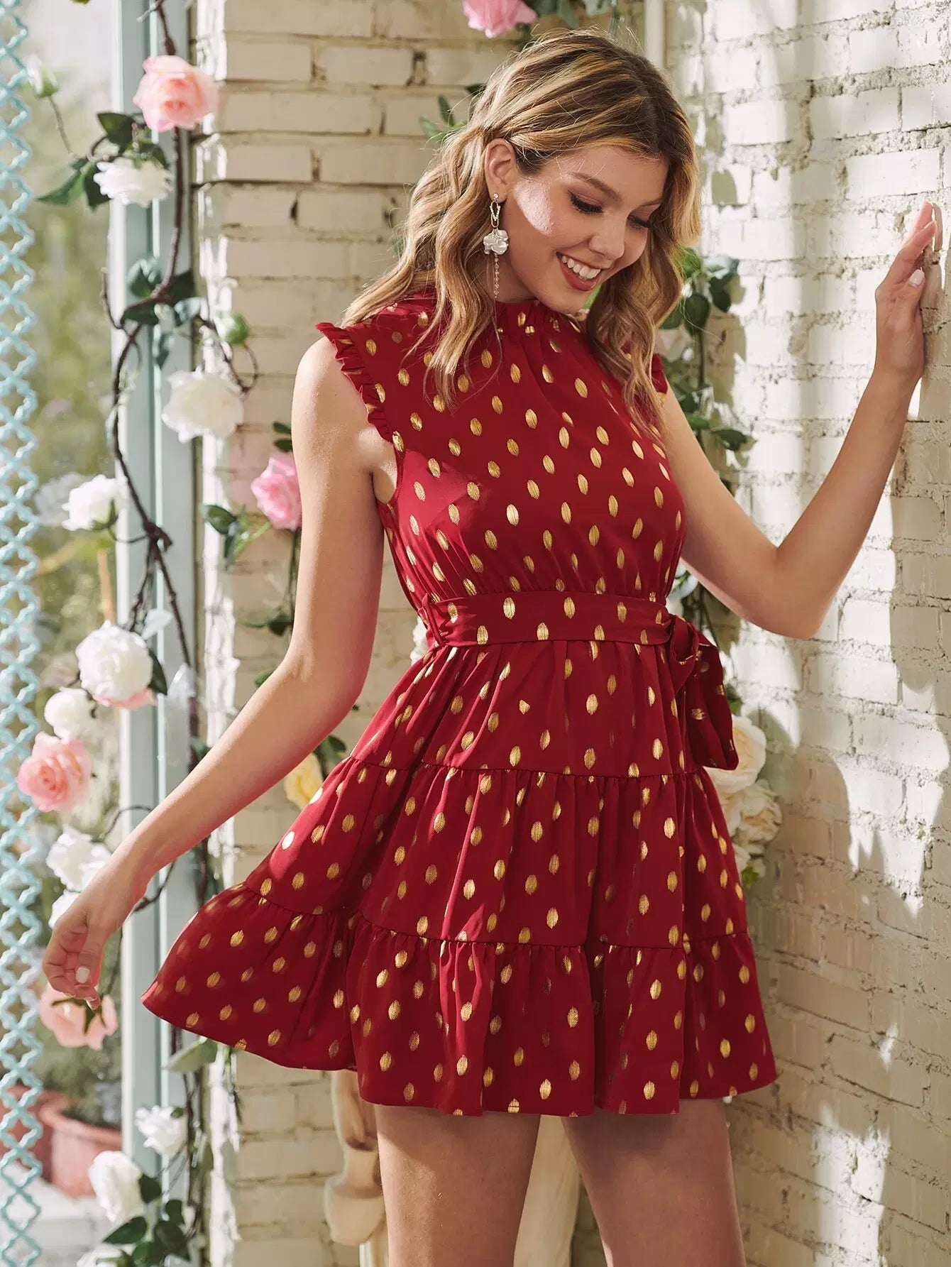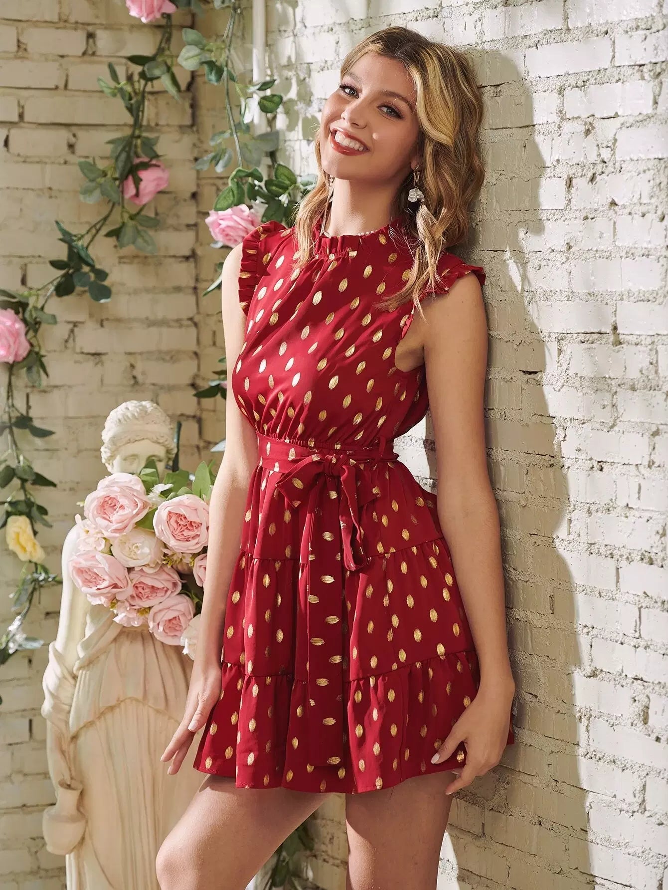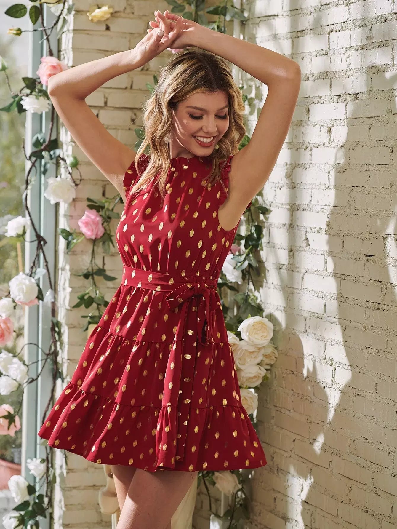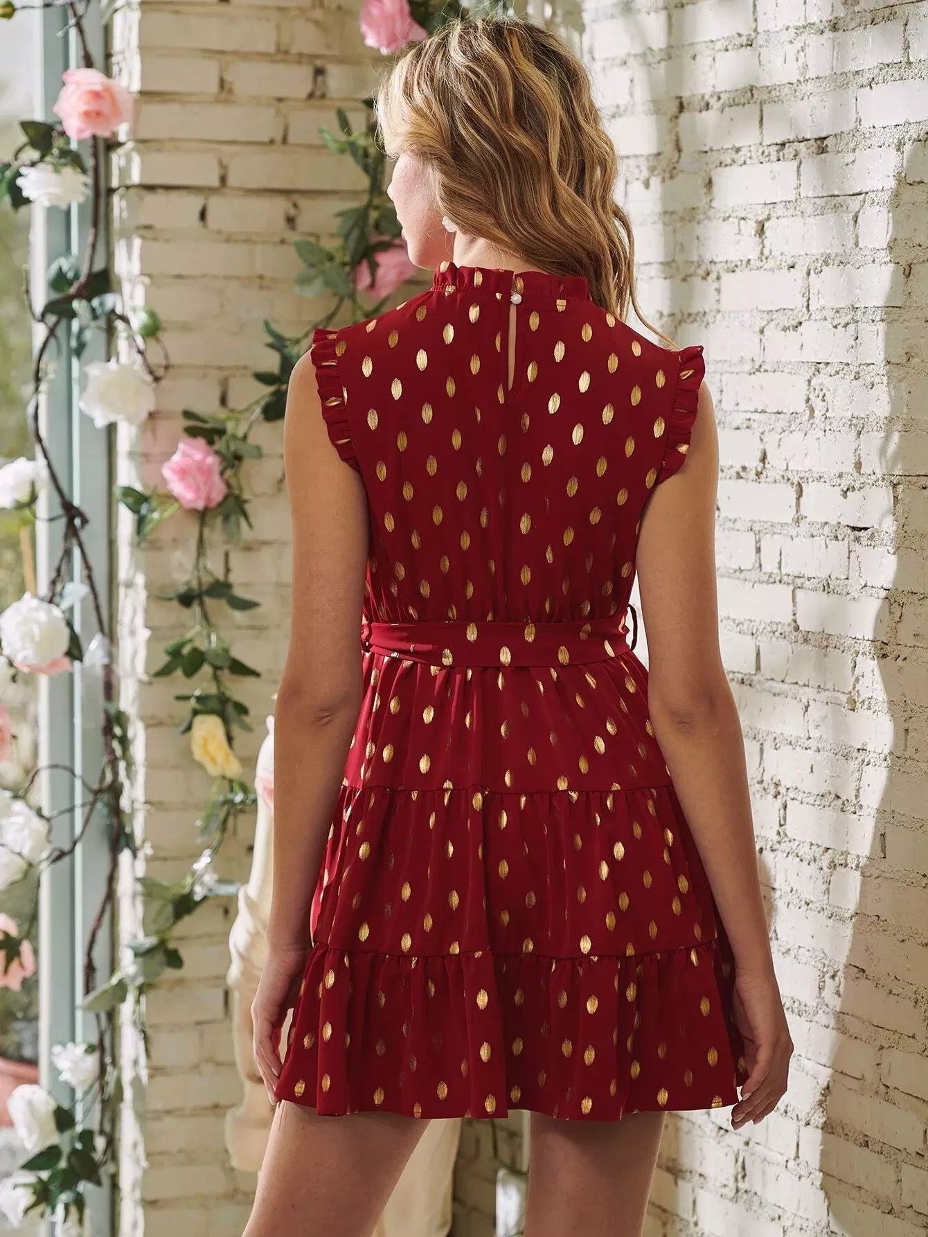 Gilding Dot Print Ruffle Hem Dress Without Belt