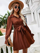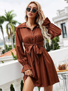 Half Button Tie Front Flounce Sleeve Shirt Dress