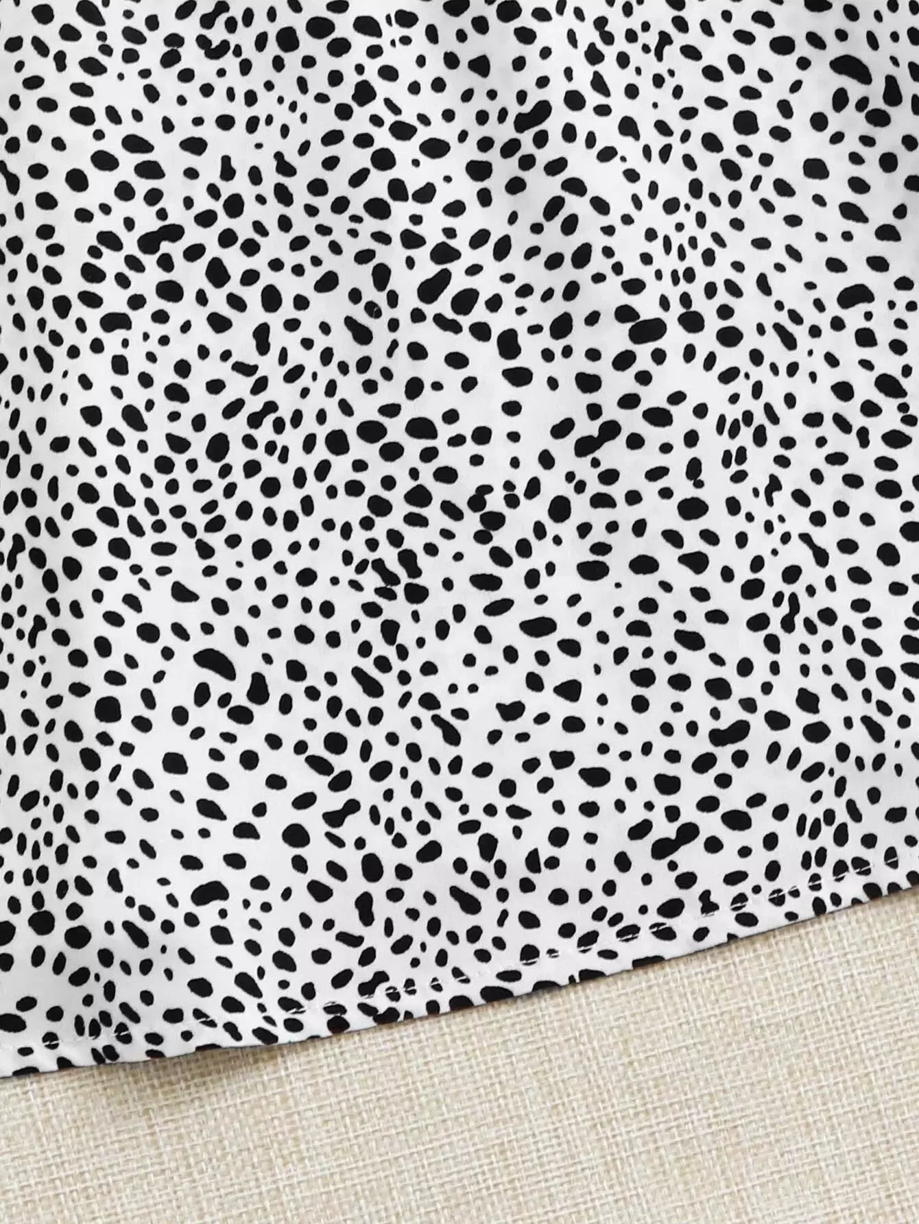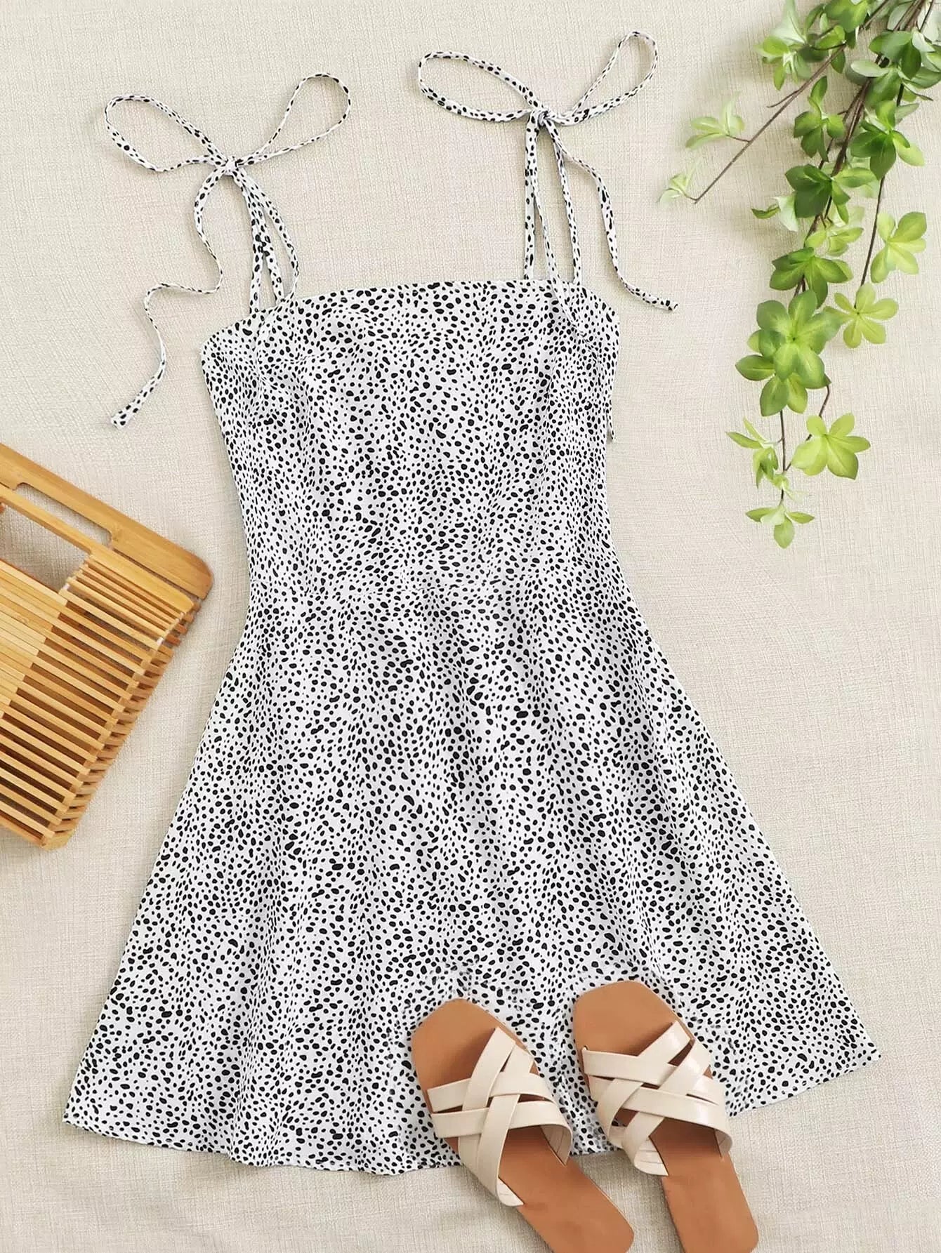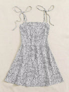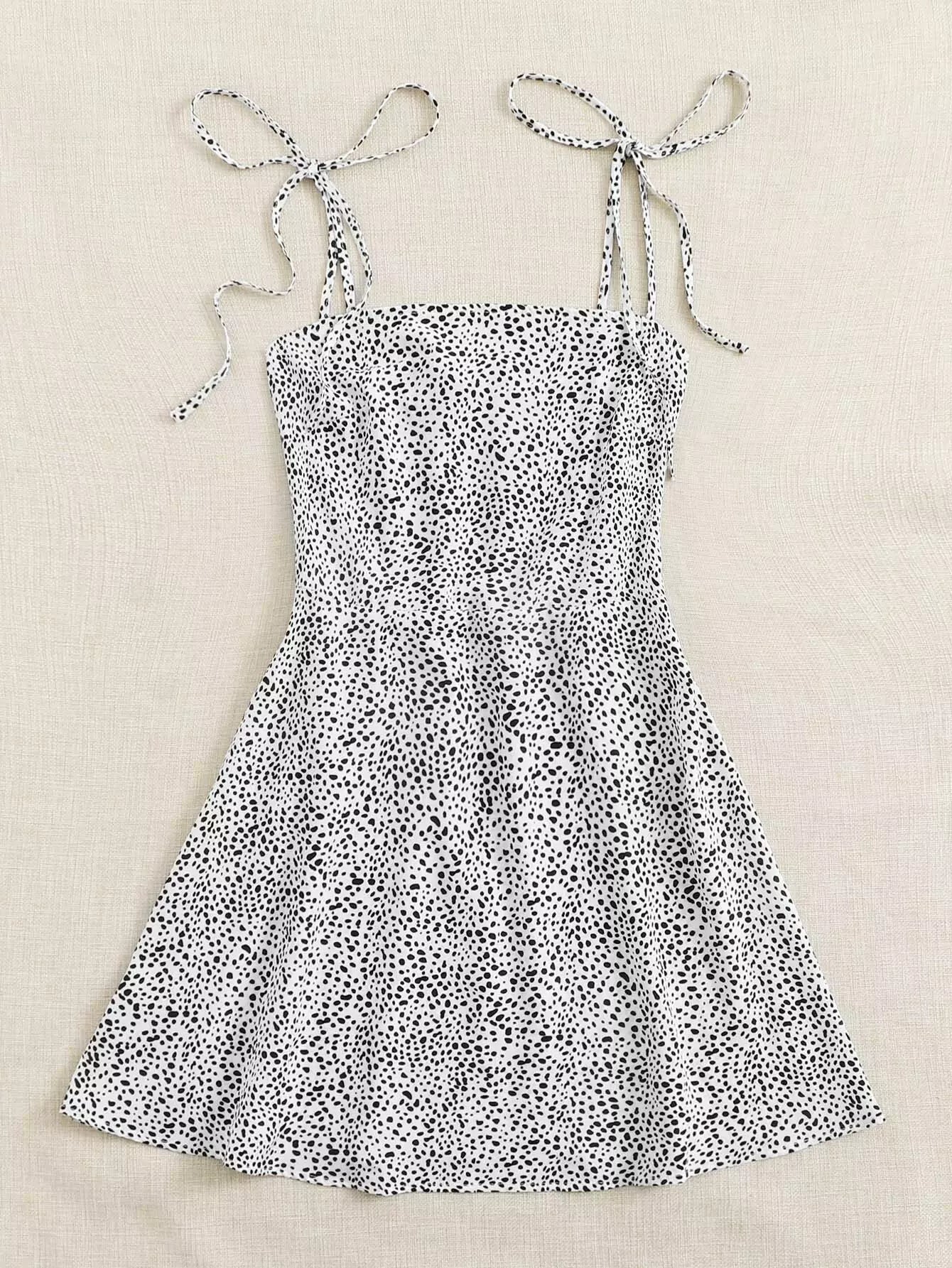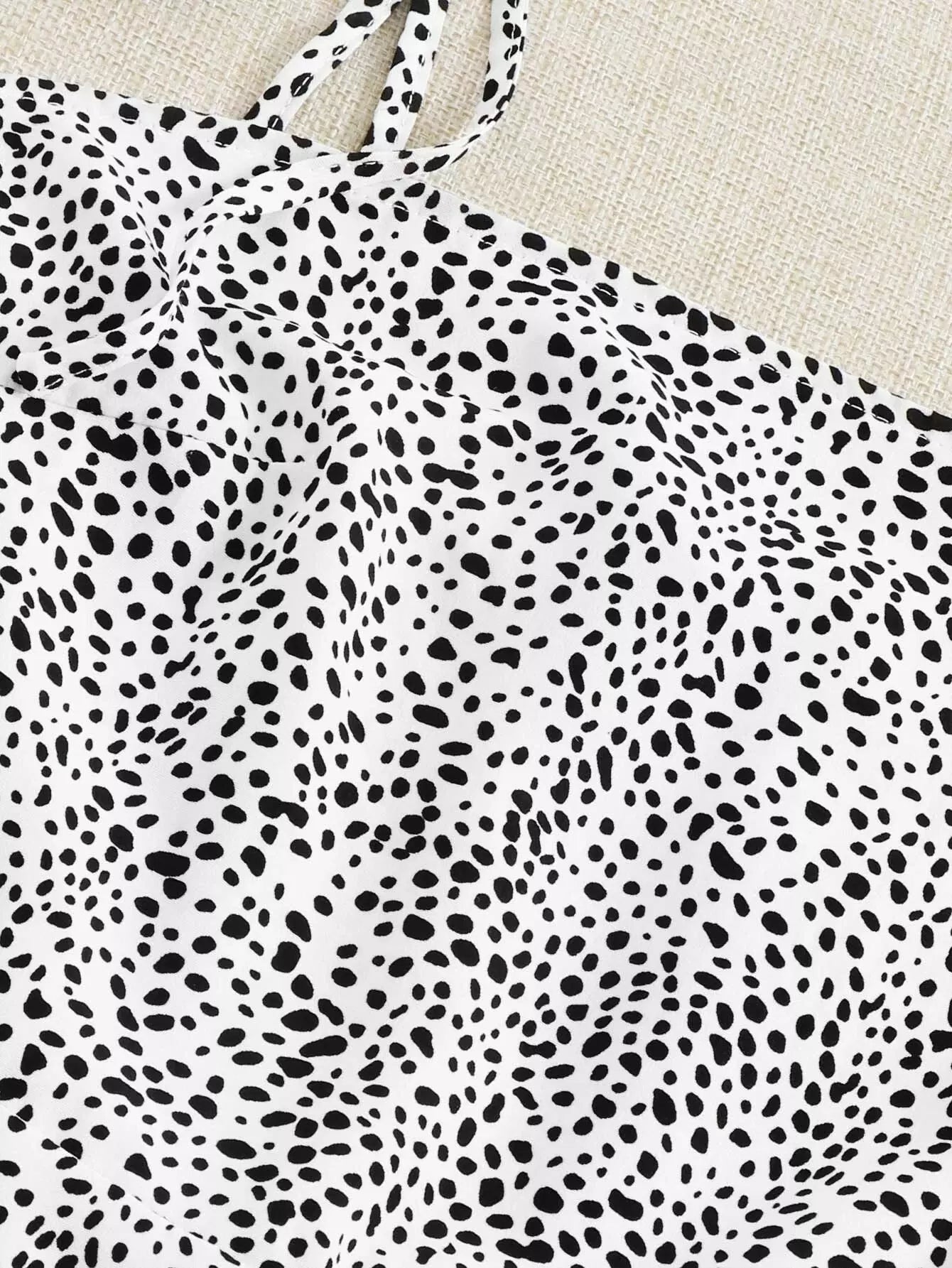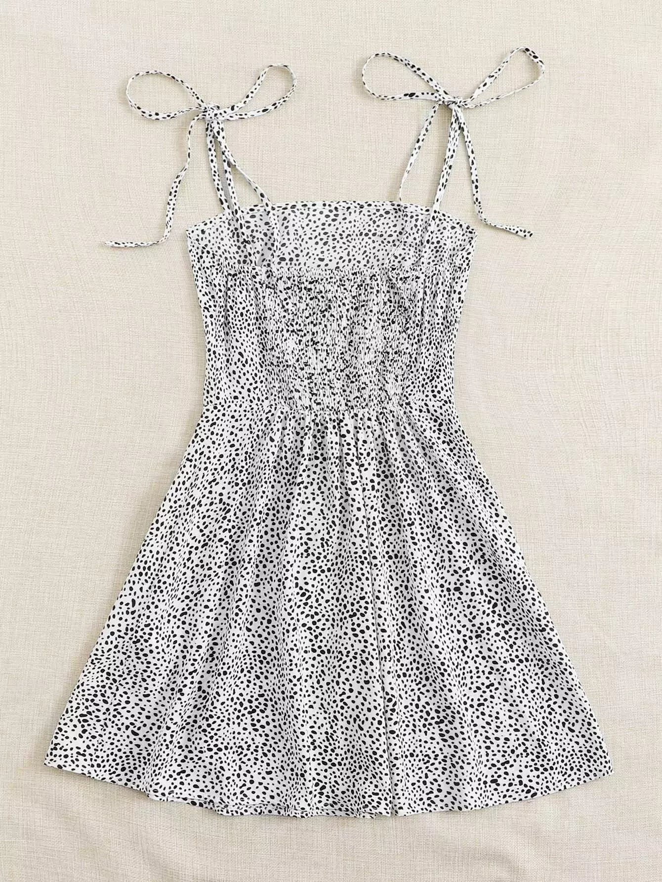Knot Strap Shirred Back Dalmatian Print Slip Dress