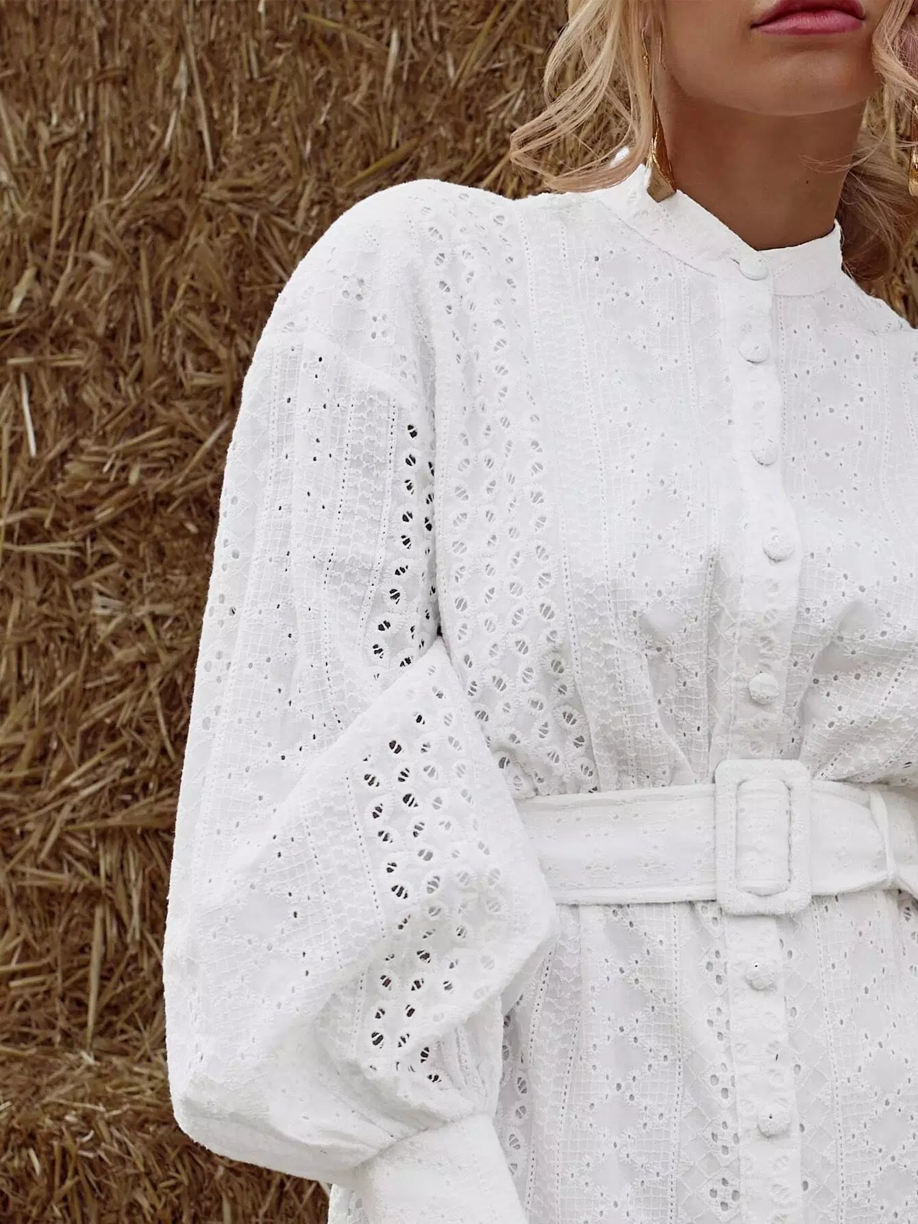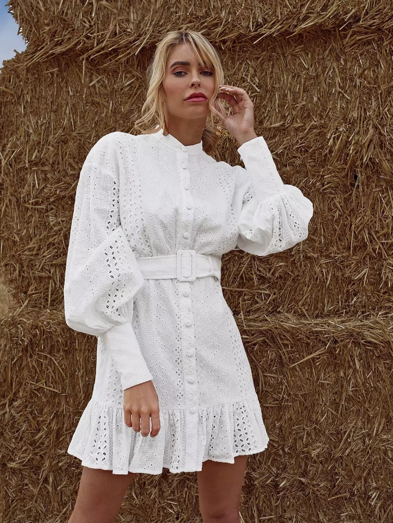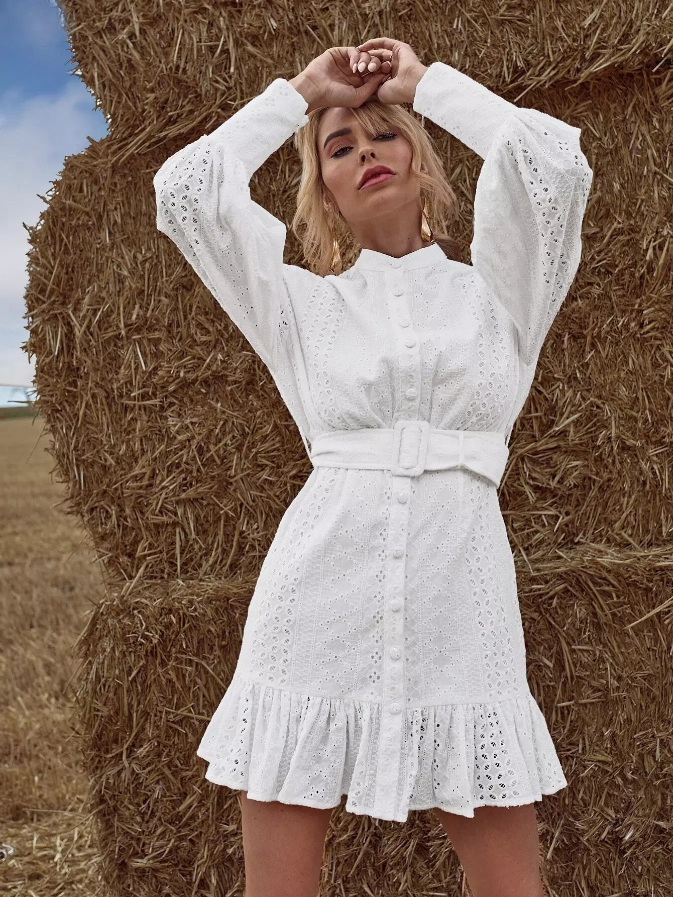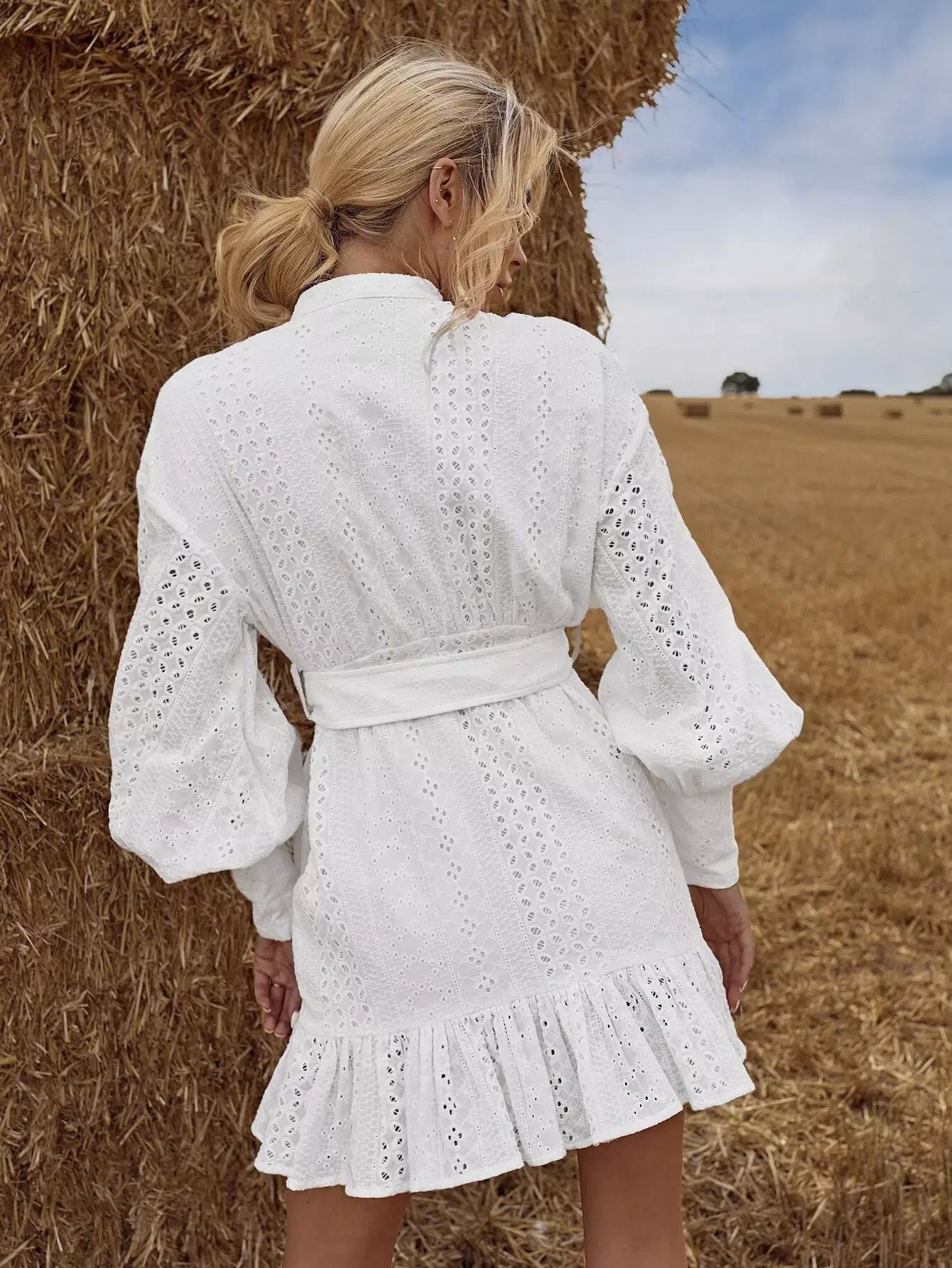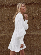 Lantern Sleeve Buckle Ruffle Hem Schiffy Dress Without Belt