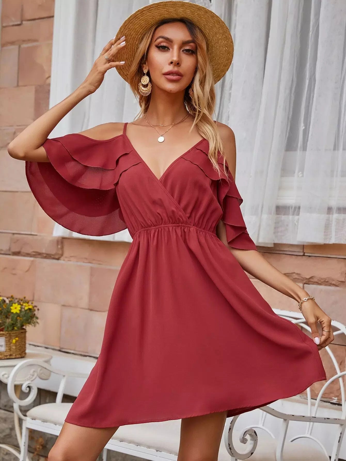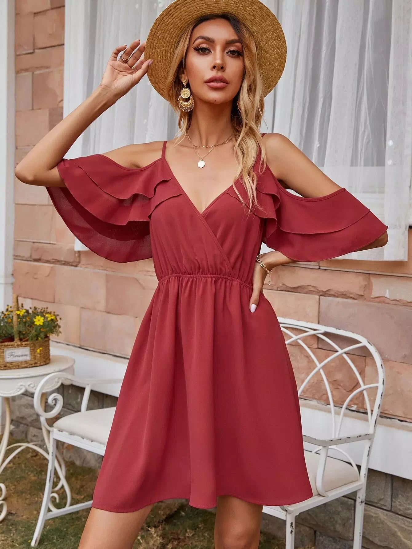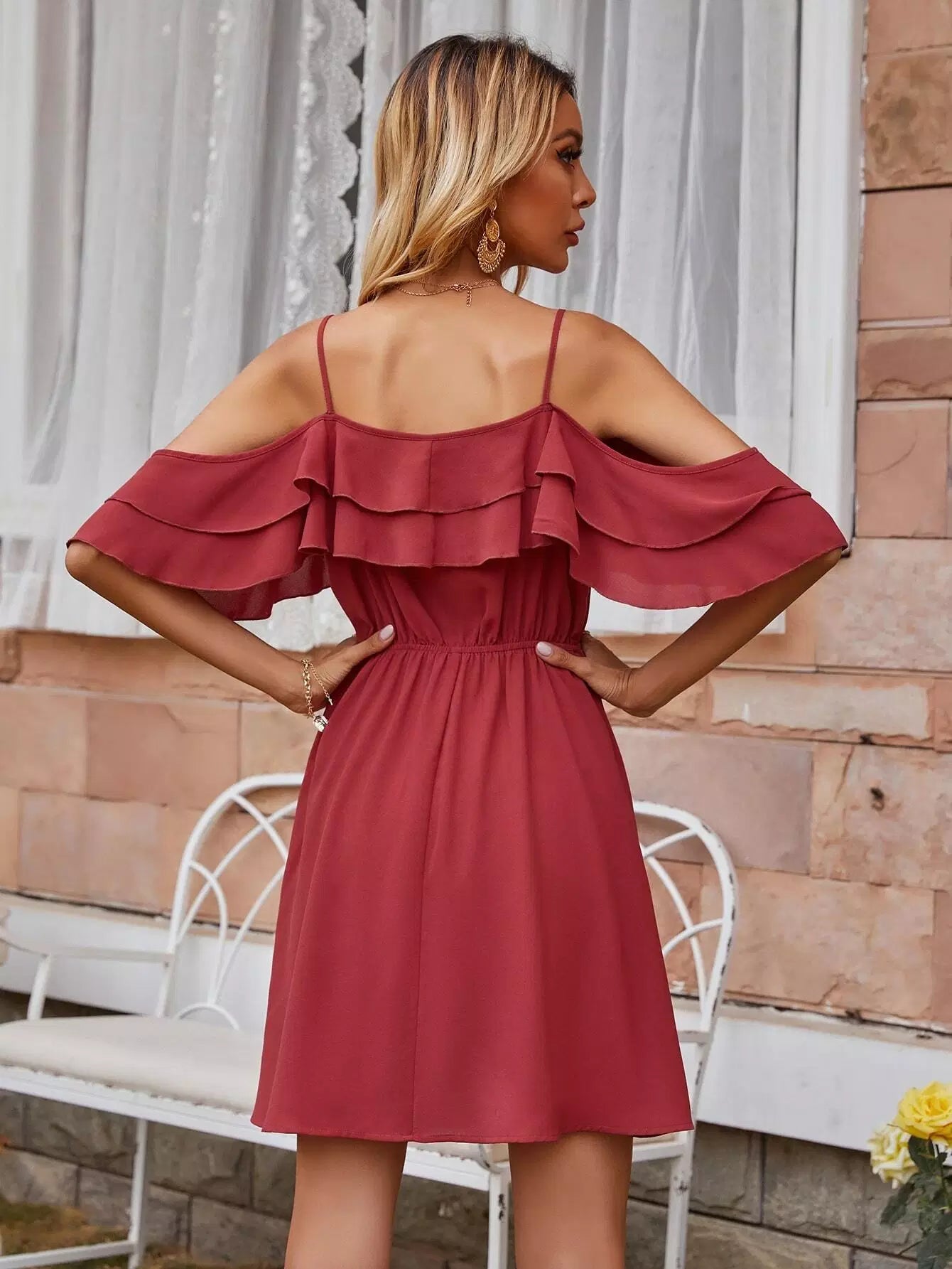 Women - Layered Ruffle Cold Shoulder A-line Dress