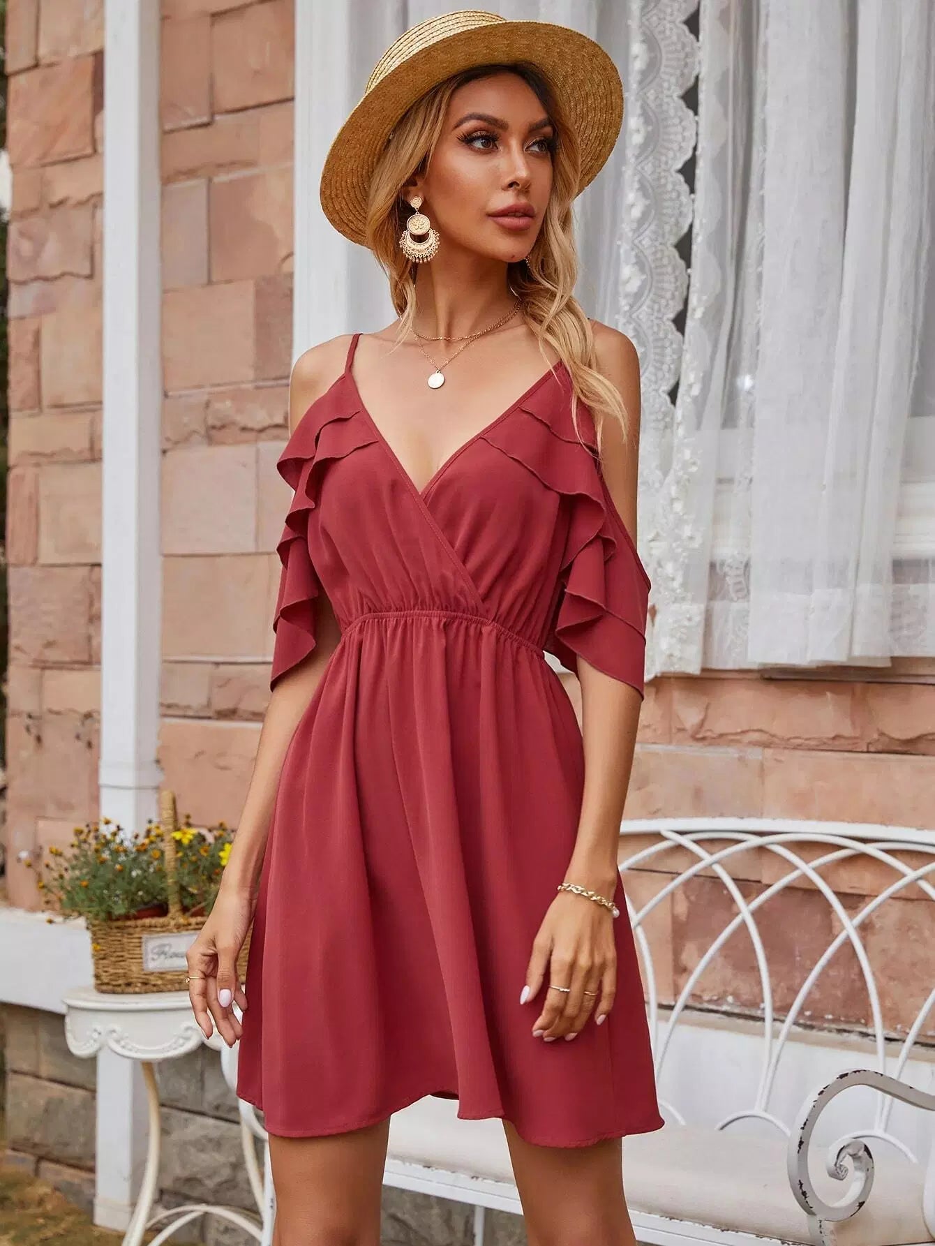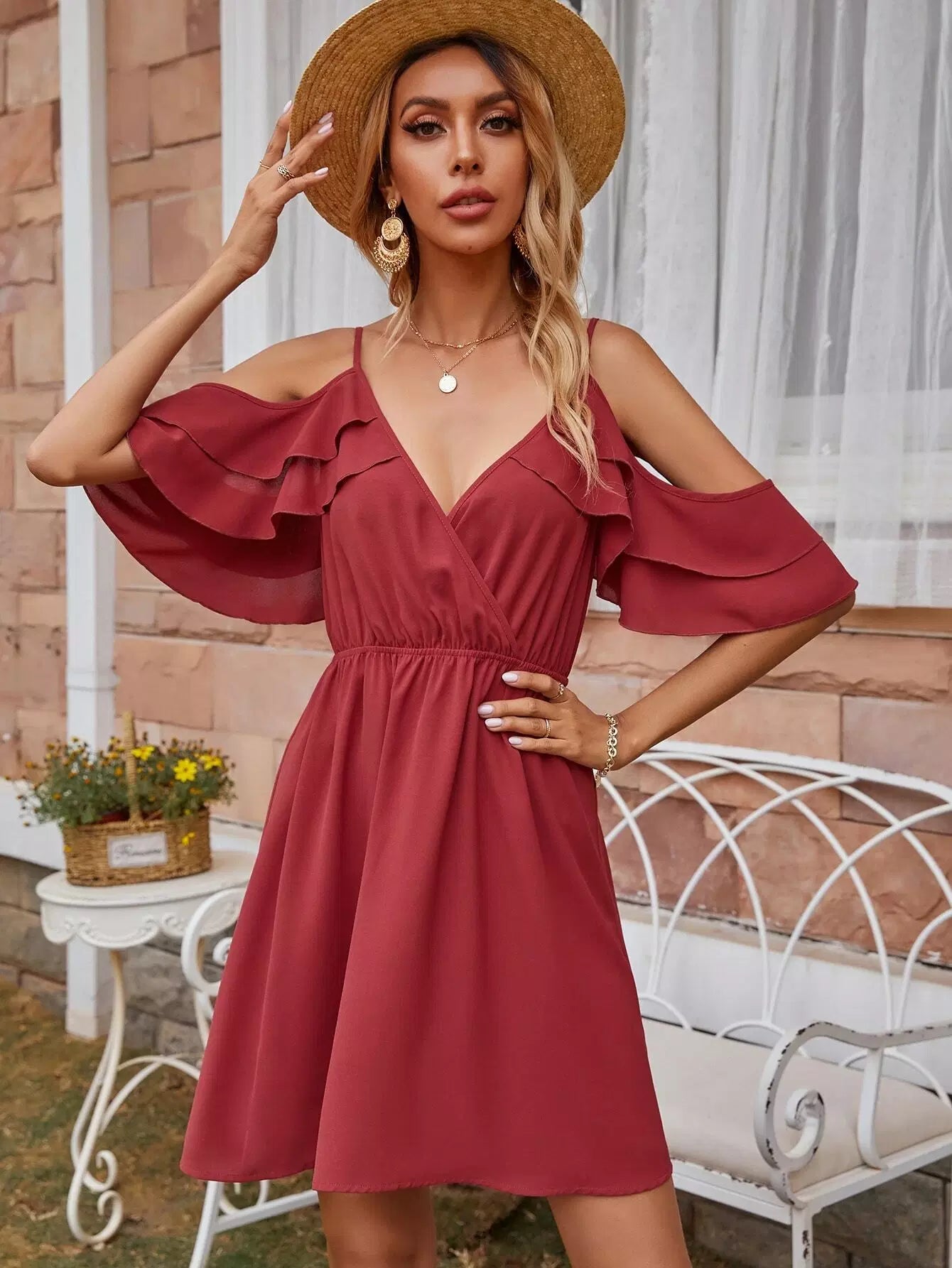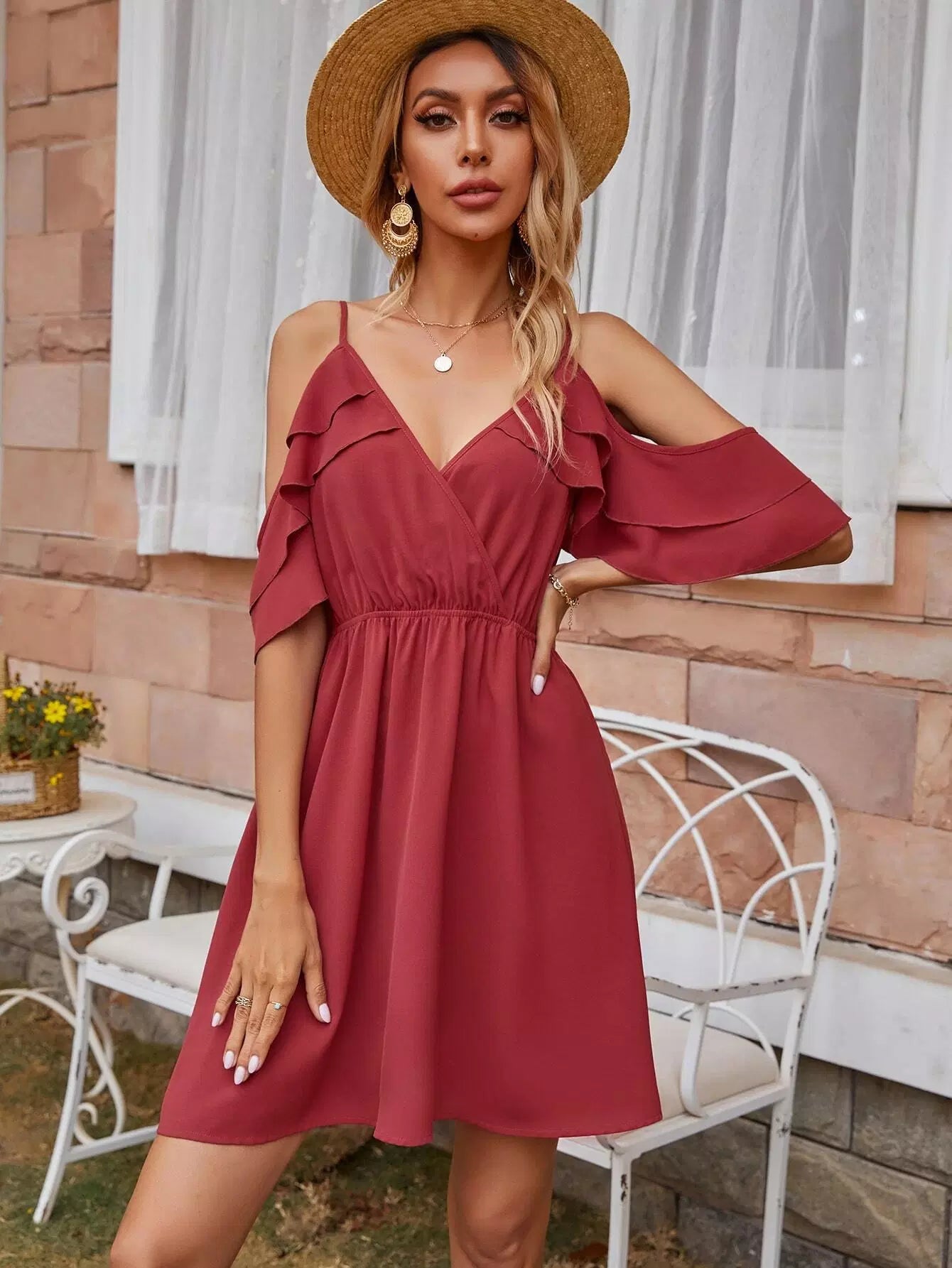 Women - Layered Ruffle Cold Shoulder A-line Dress