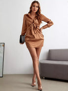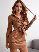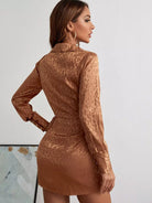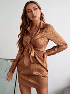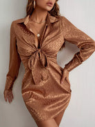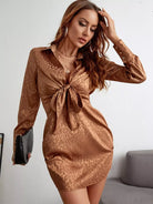 Leopard Jacquard Knot Front Bishop Sleeve Satin Dress