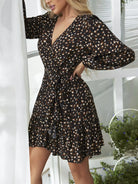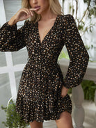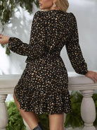 Leopard Lantern Sleeve Ruffle Trim Wrap Knot Side Dress