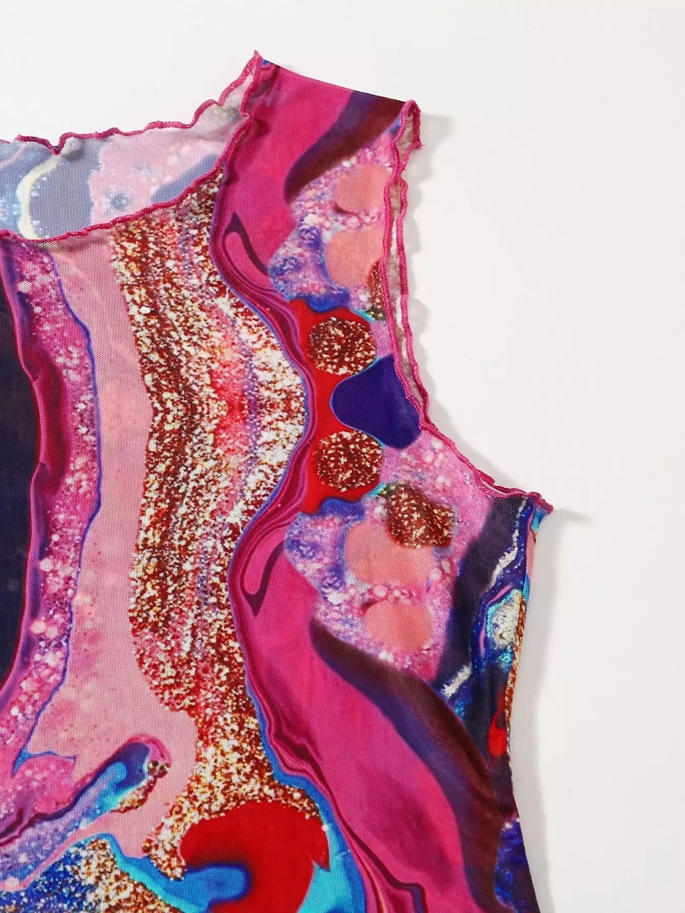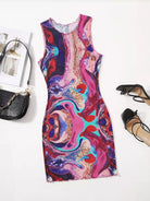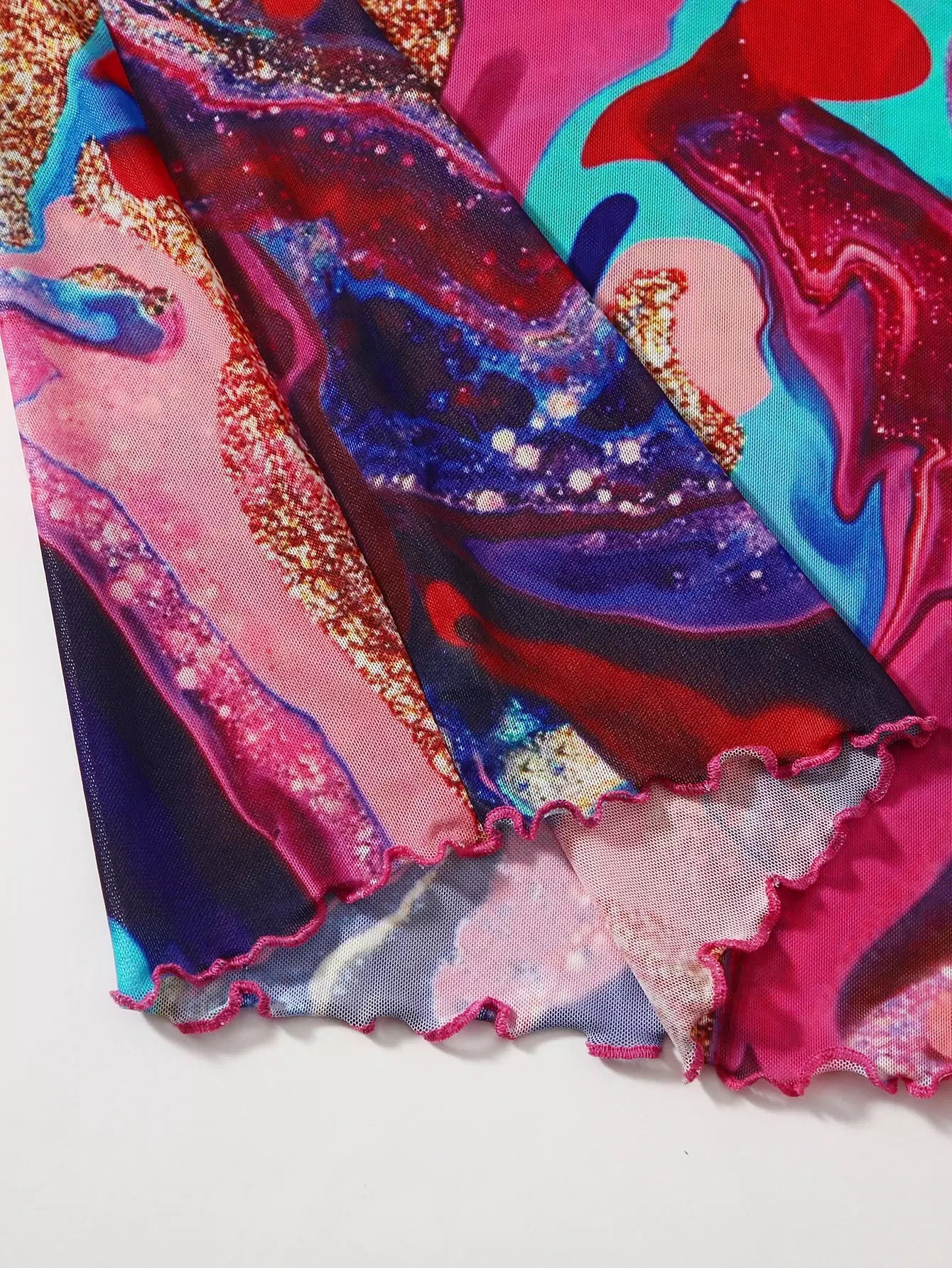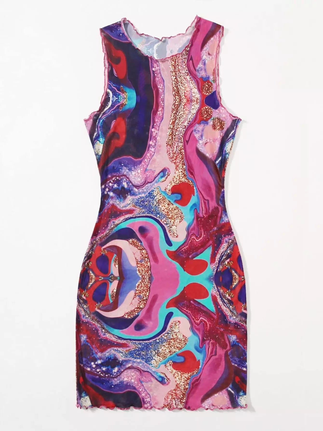 Lettuce Trim Marble Print Bodycon Dress