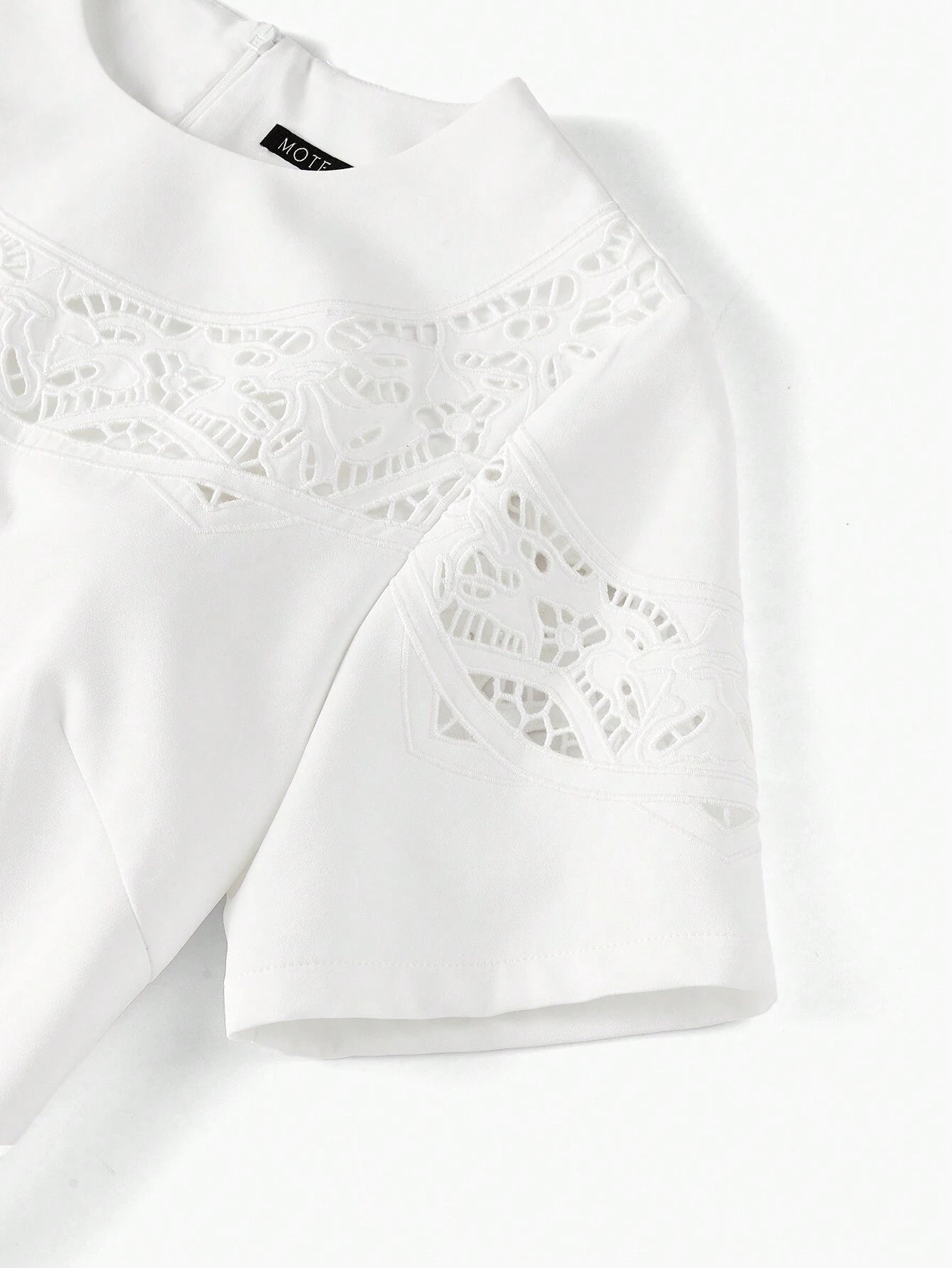 MOTF PREMIUM EMBROIDERY POINTELLE SHORT SLEEVE DRESS