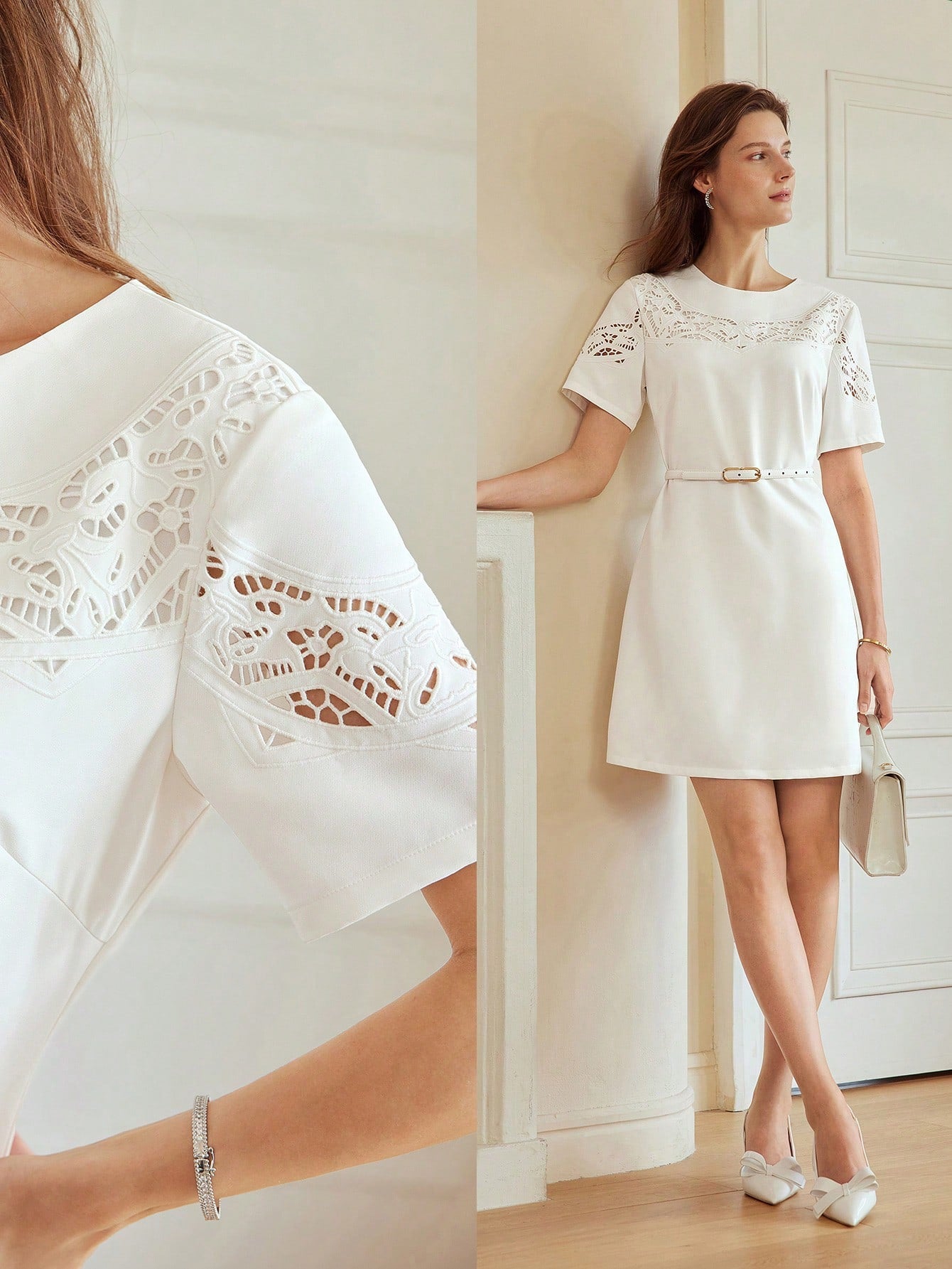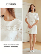 women MOTF PREMIUM EMBROIDERY POINTELLE SHORT SLEEVE DRESS