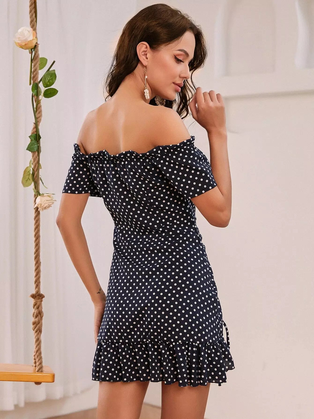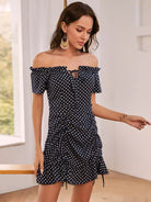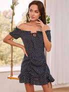 Off-shoulder Polka Dot Ruffle Hem Dress