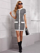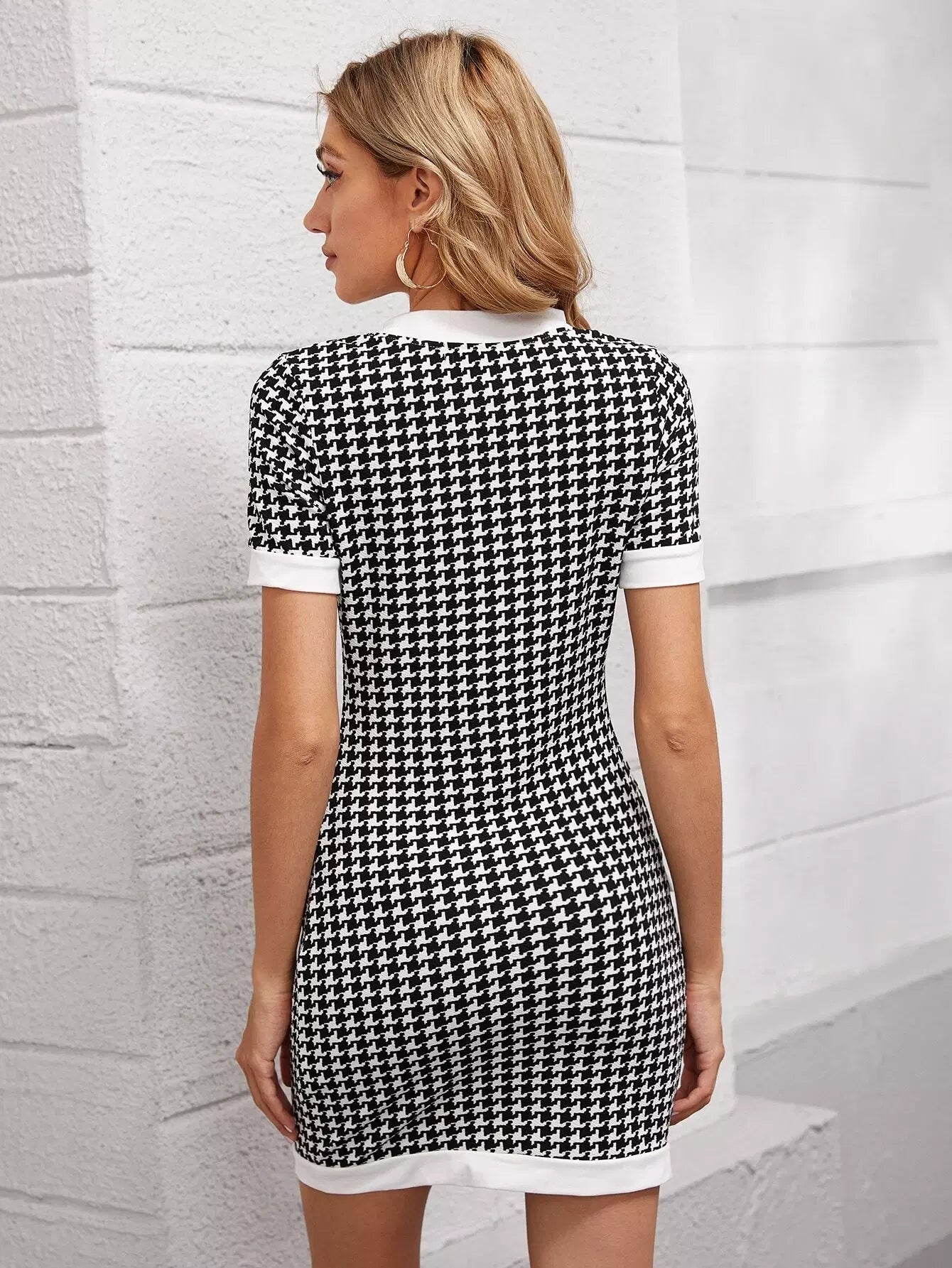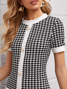 Pearl Button Front Houndstooth Bodycon Dress