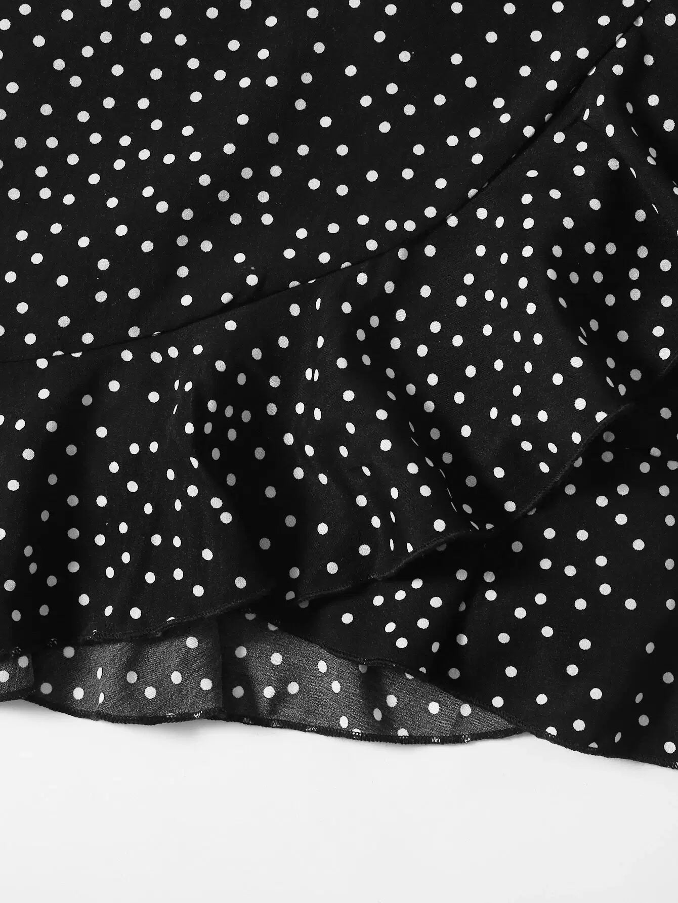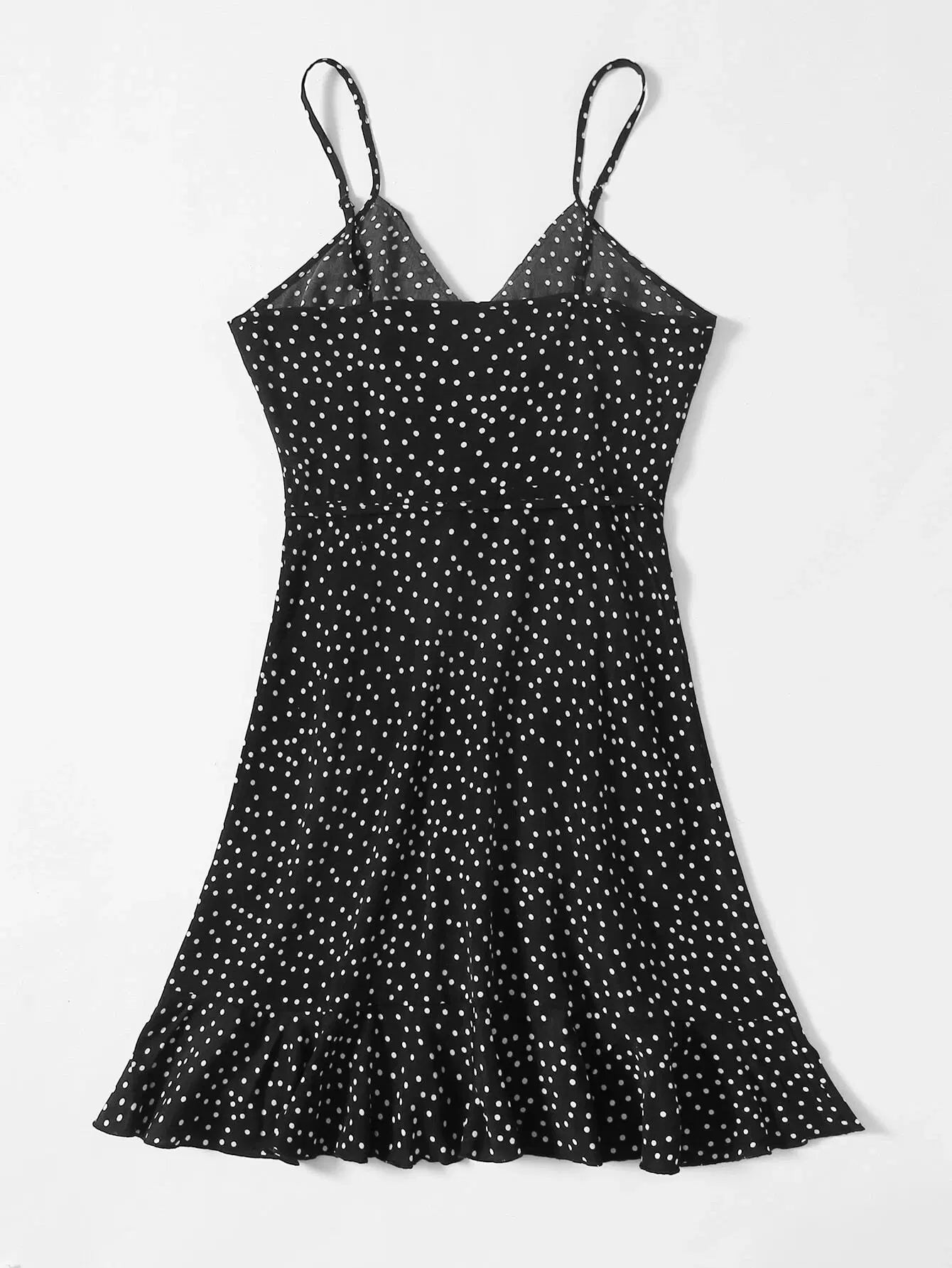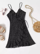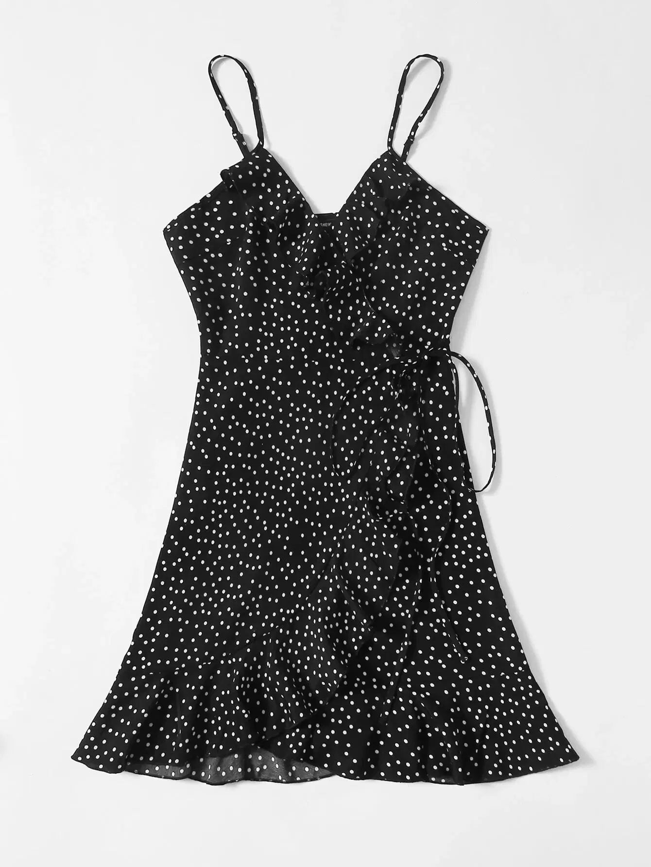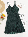 Polka Dot Knot Side Ruffle Trim Wrap Cami Dress