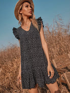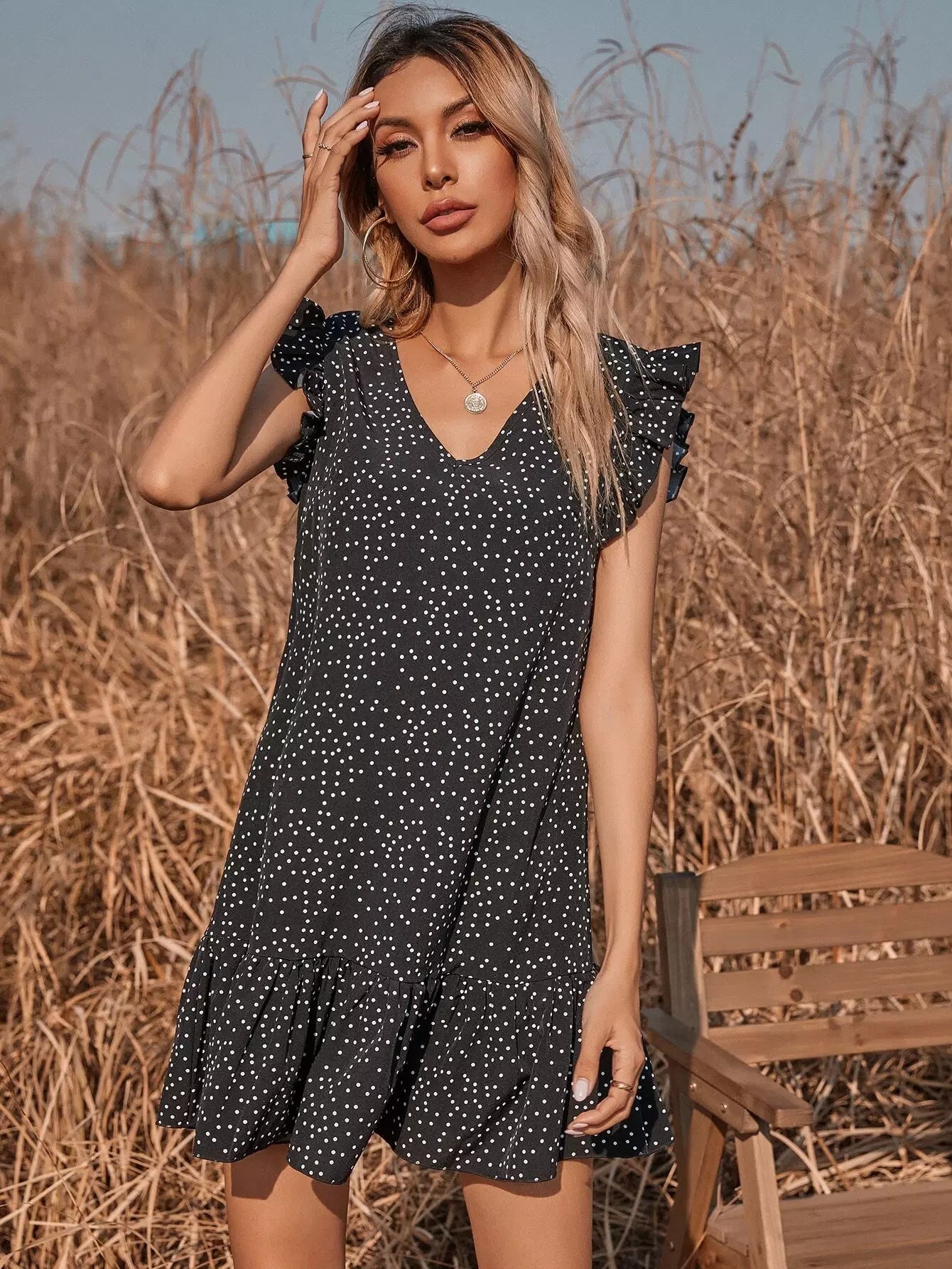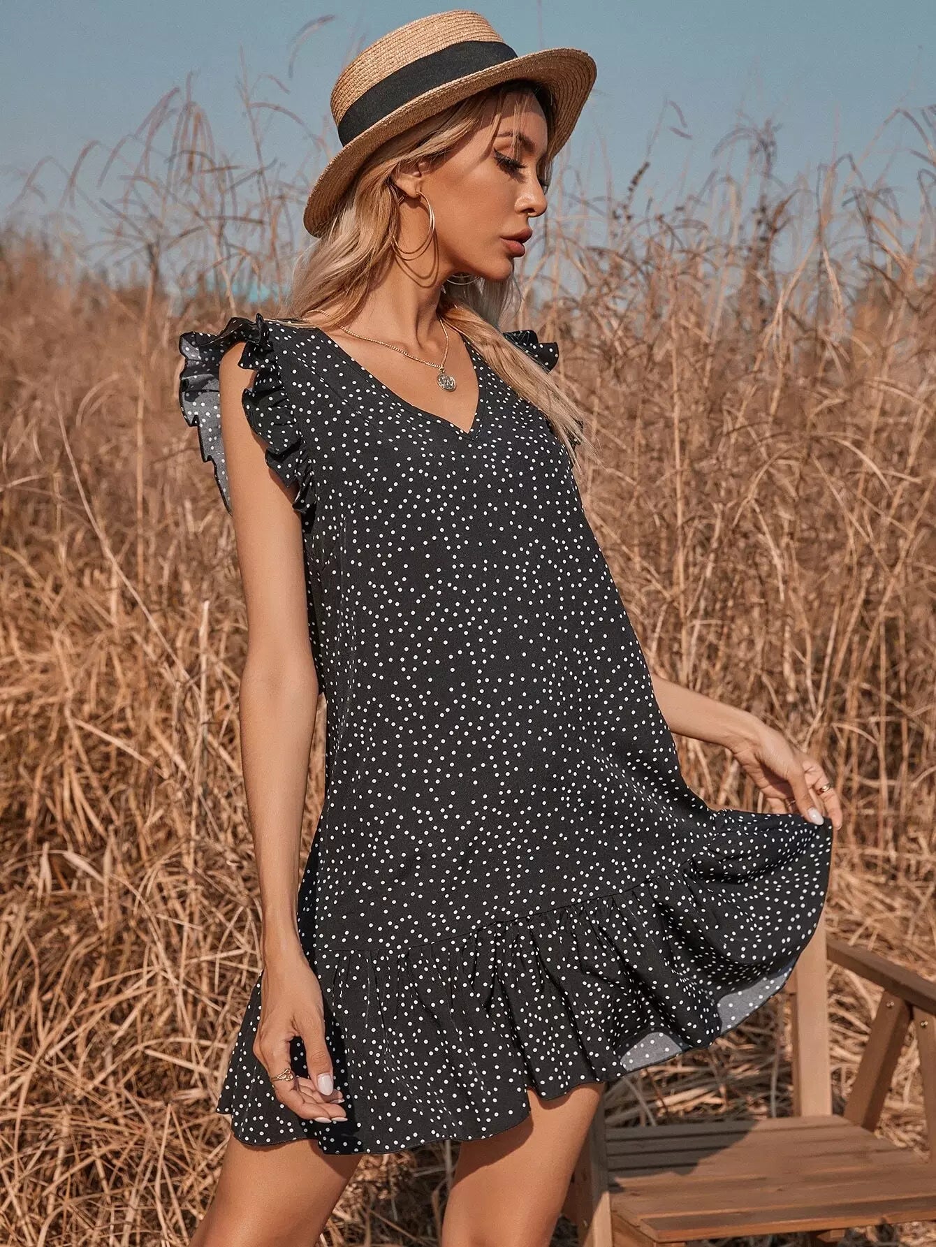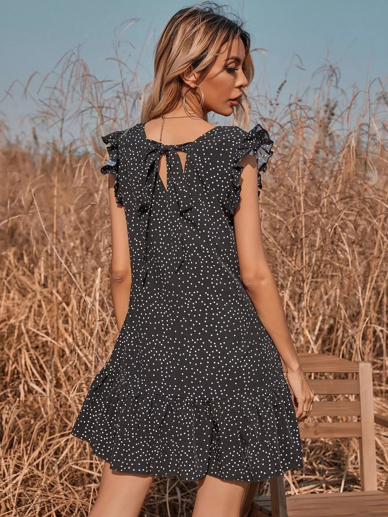 Women - Polka Dot Tie Back Ruffle Hem Dress