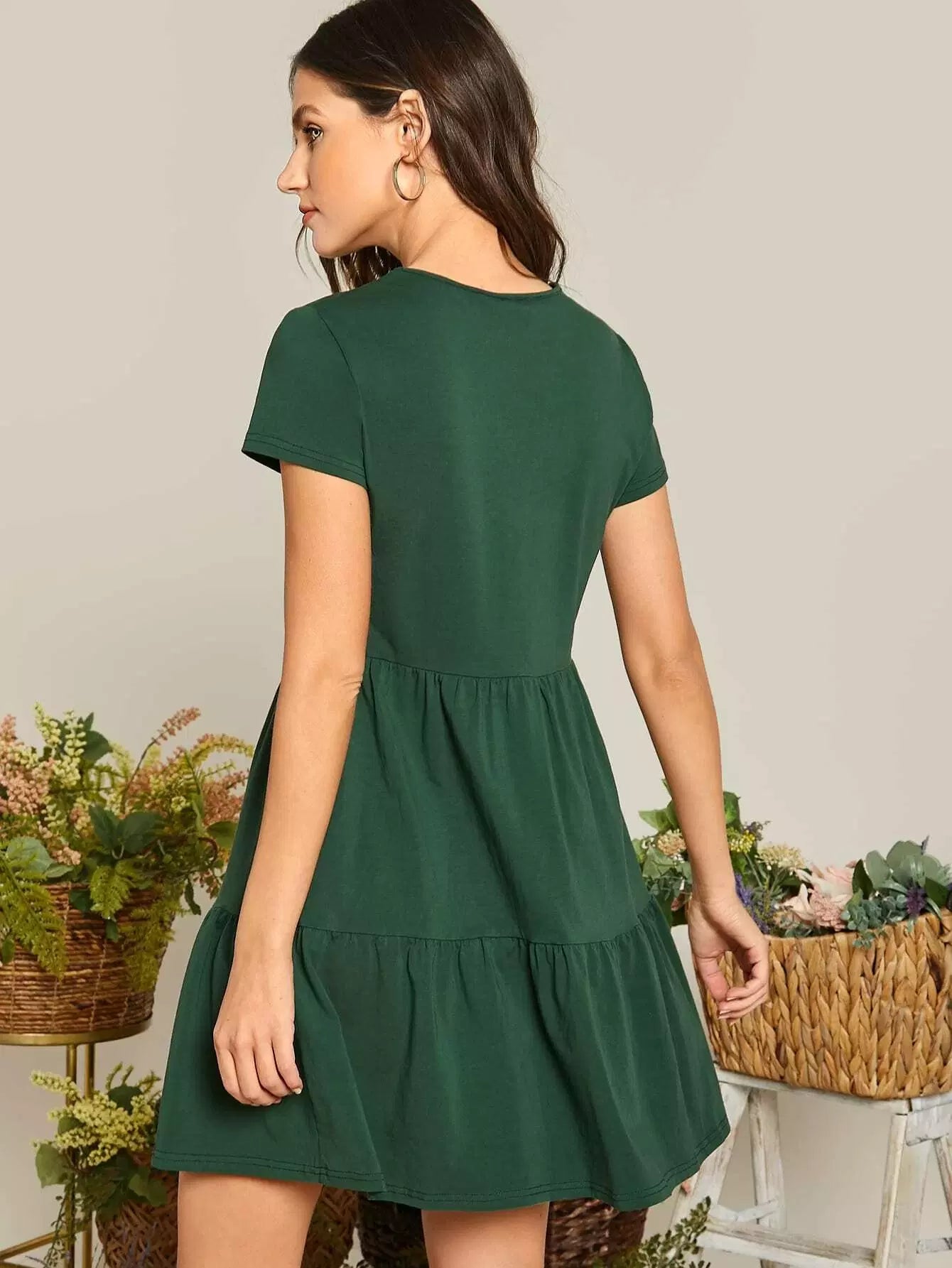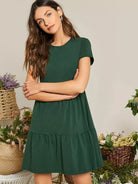 Round Neck Solid Smock Dress