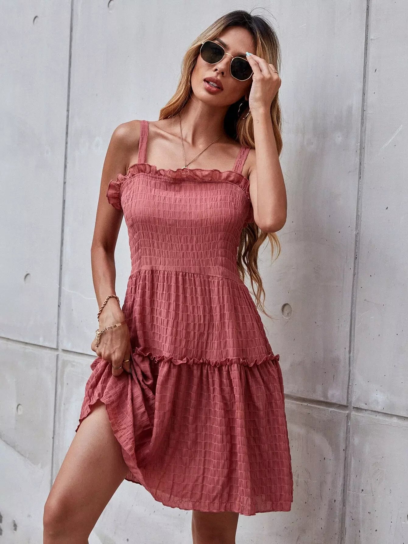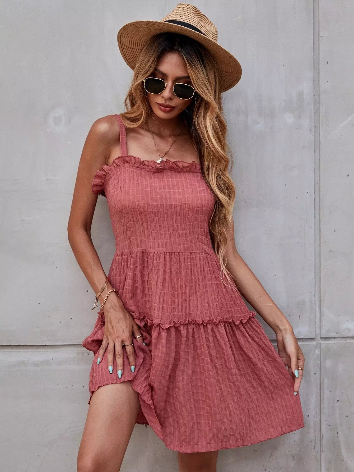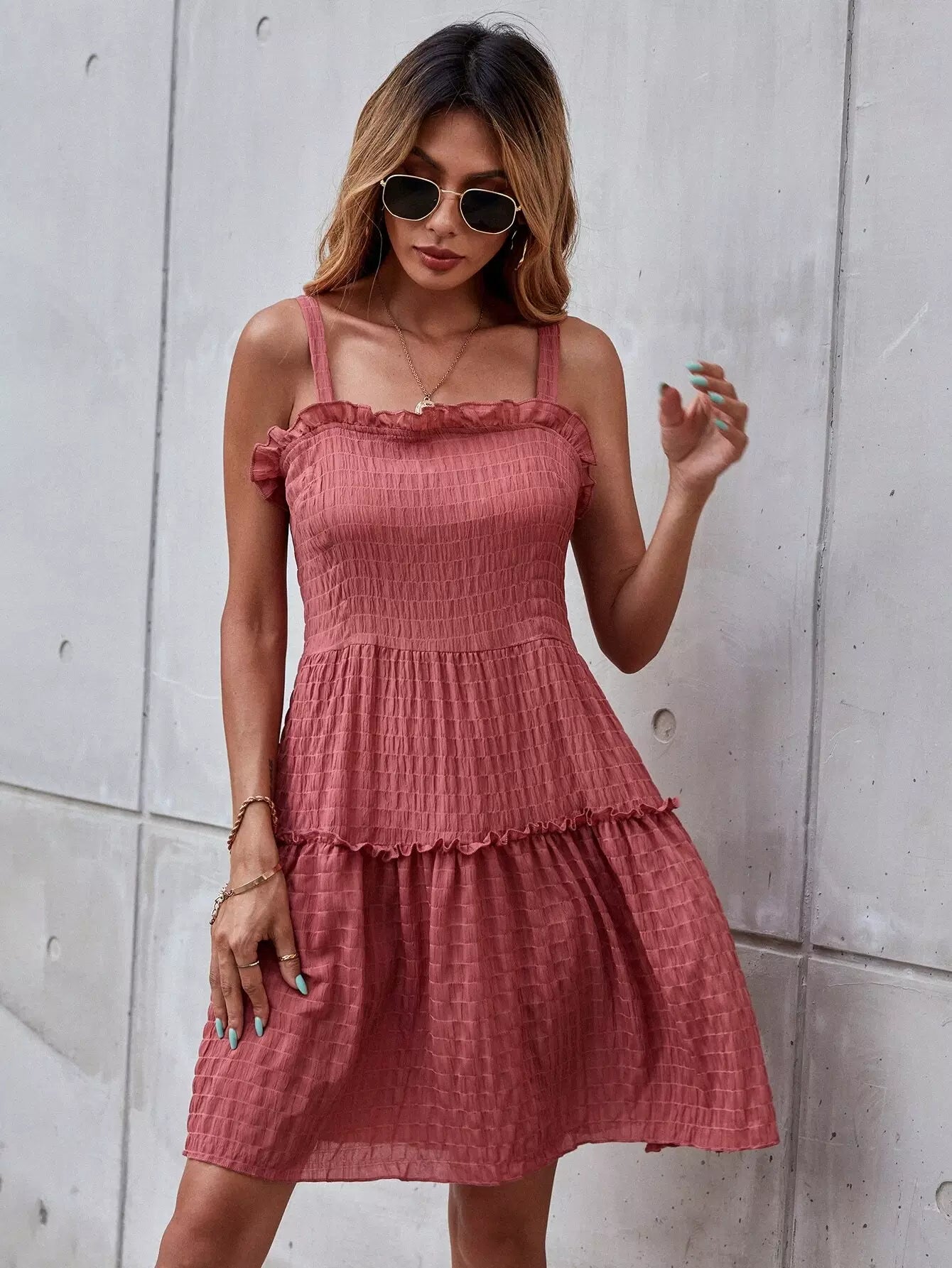 Ruched Frill Trim Cami Dress