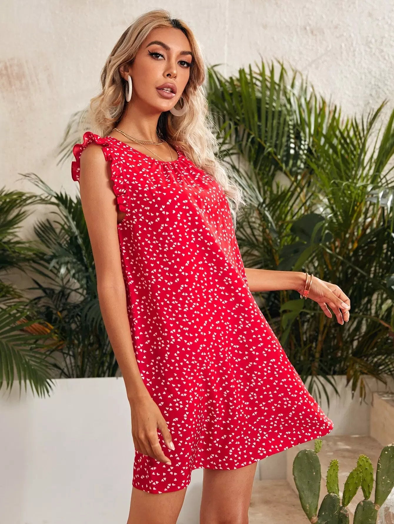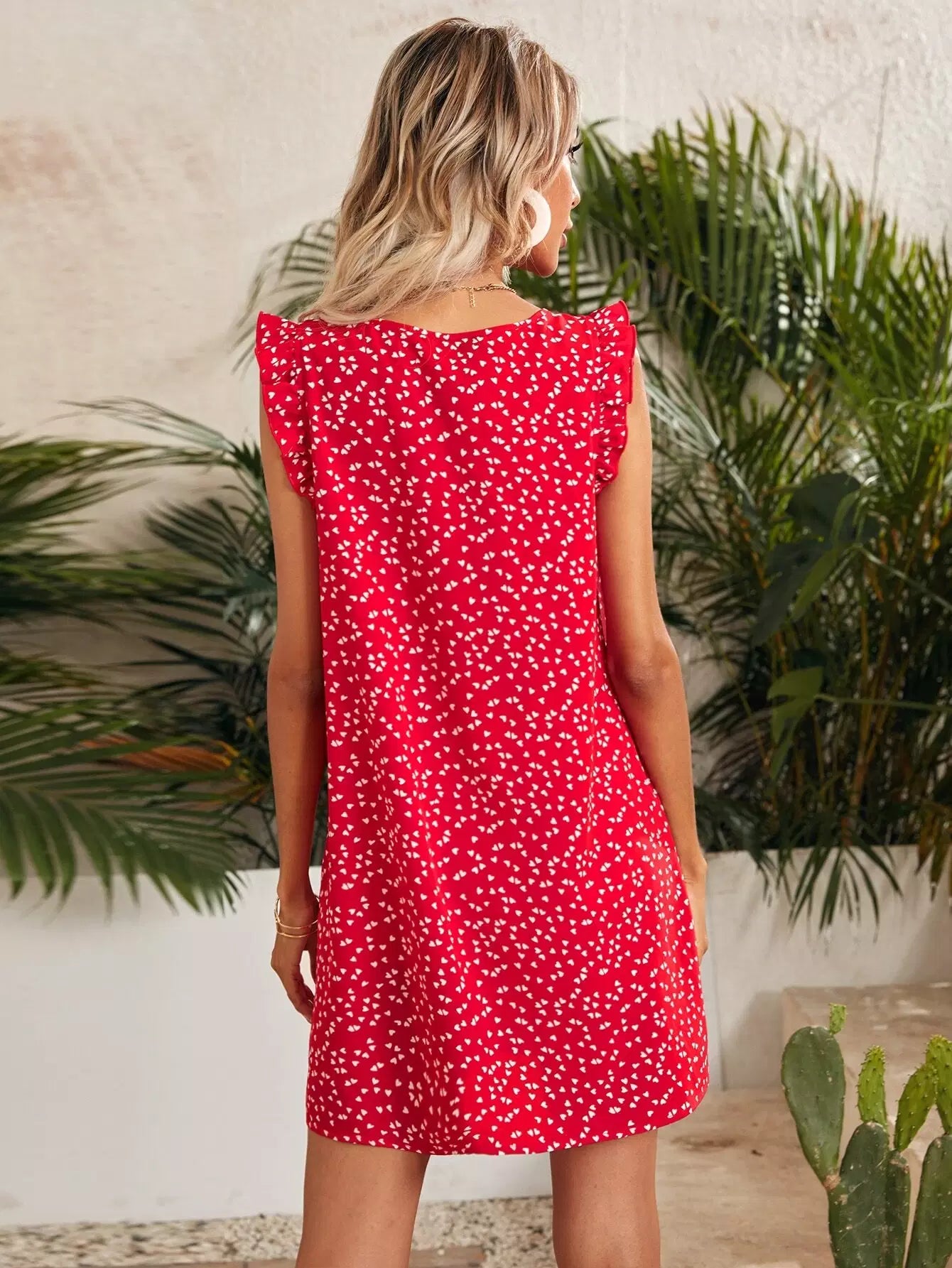 Ruffle Trim Heart Print Dress