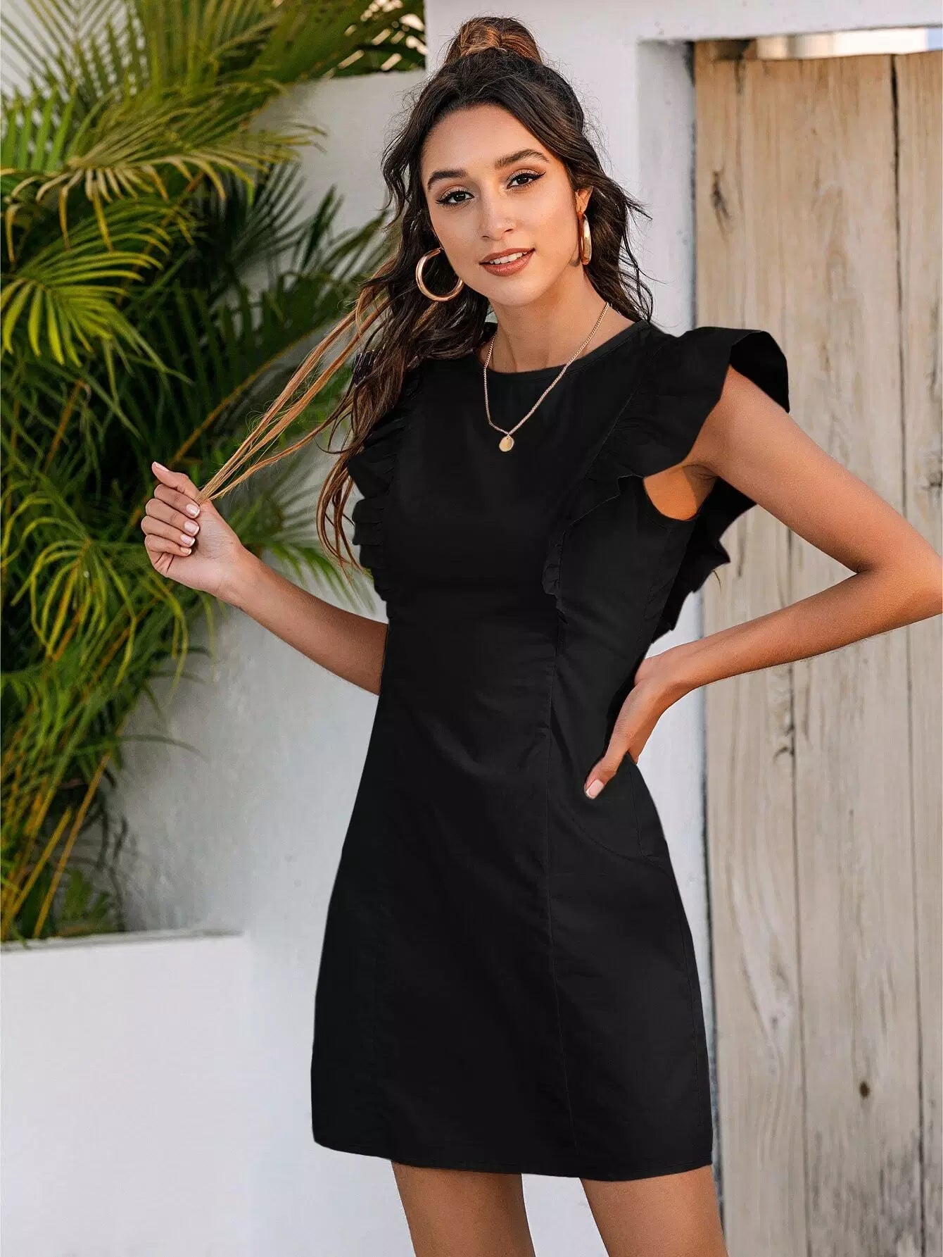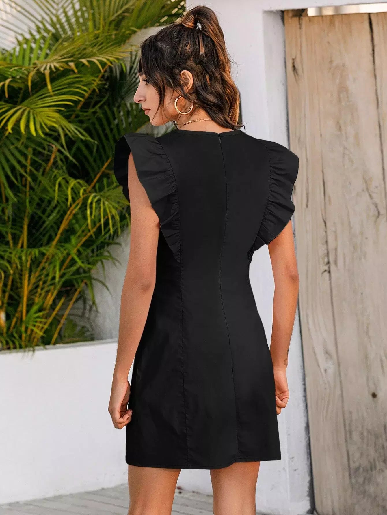 Ruffle Trim Zipper Back Fitted Dress