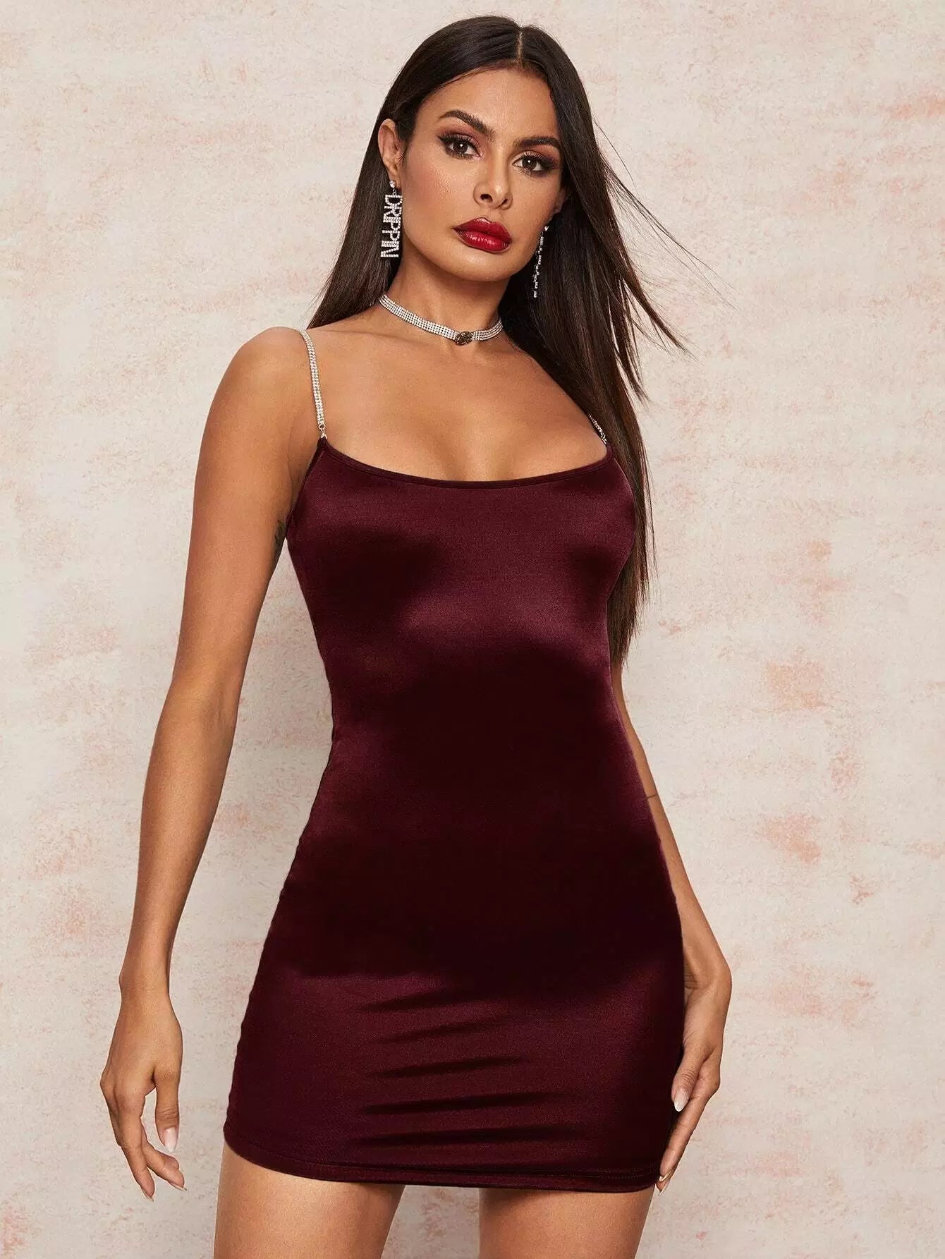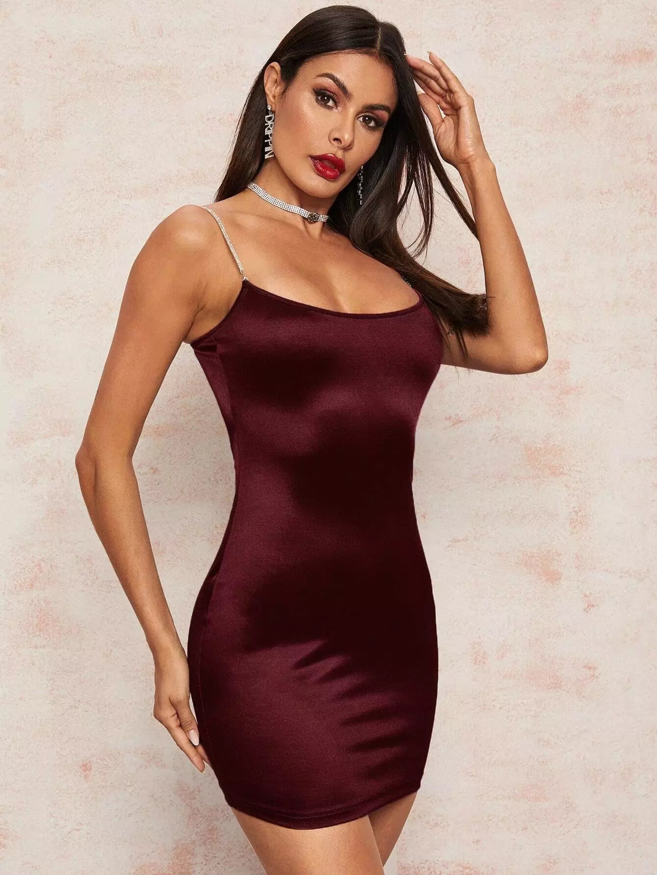 Satin Bodycon Dress With Rhinestone Strap
