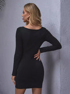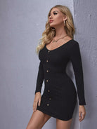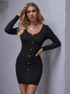 Scoop Neck Button Front Rib-knit Bodycon Dress