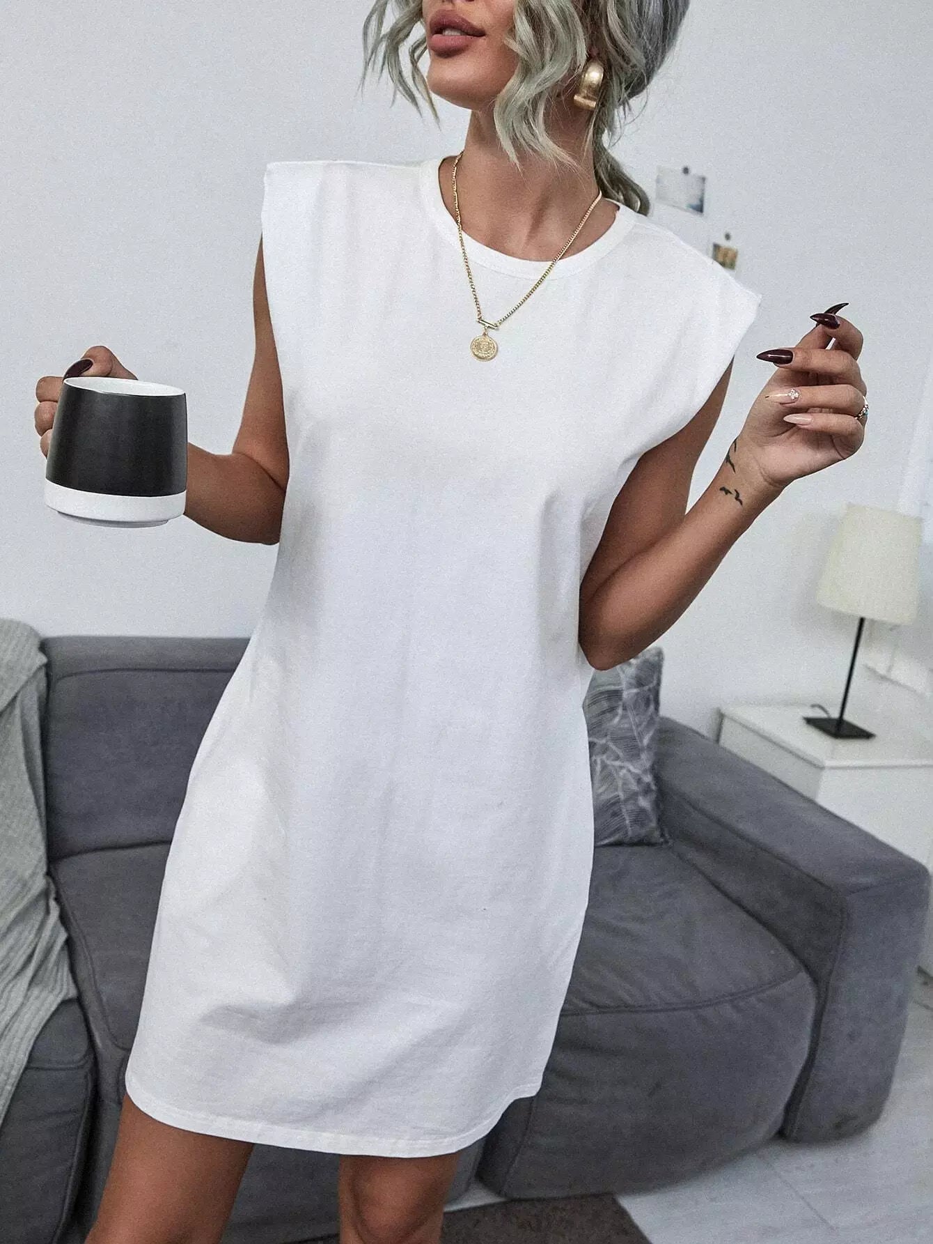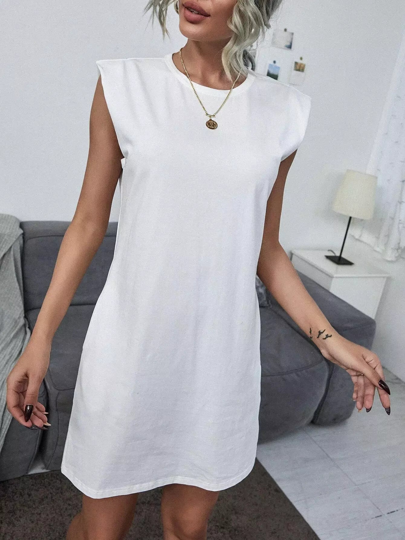 Solid Crew Neck Tank Dress