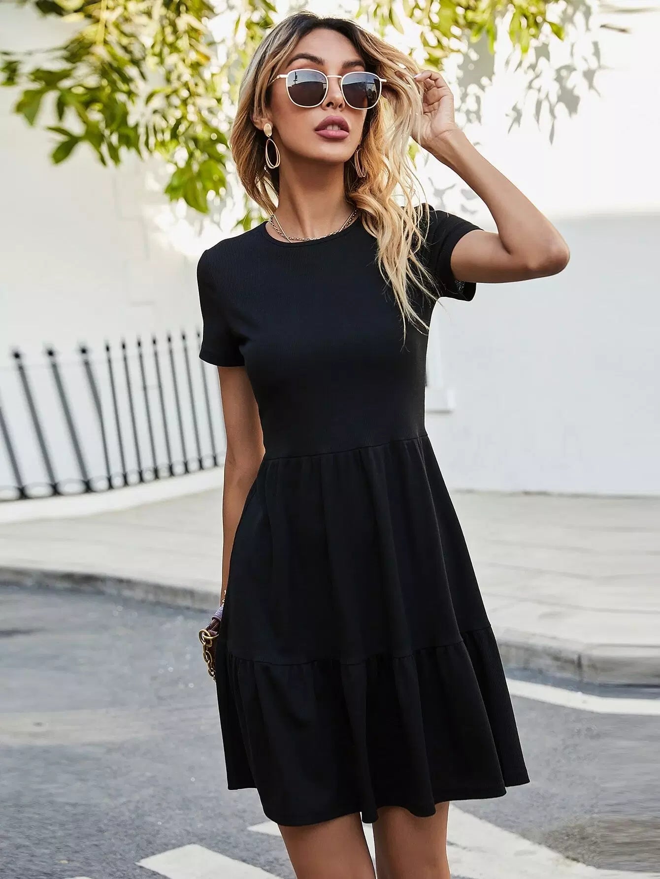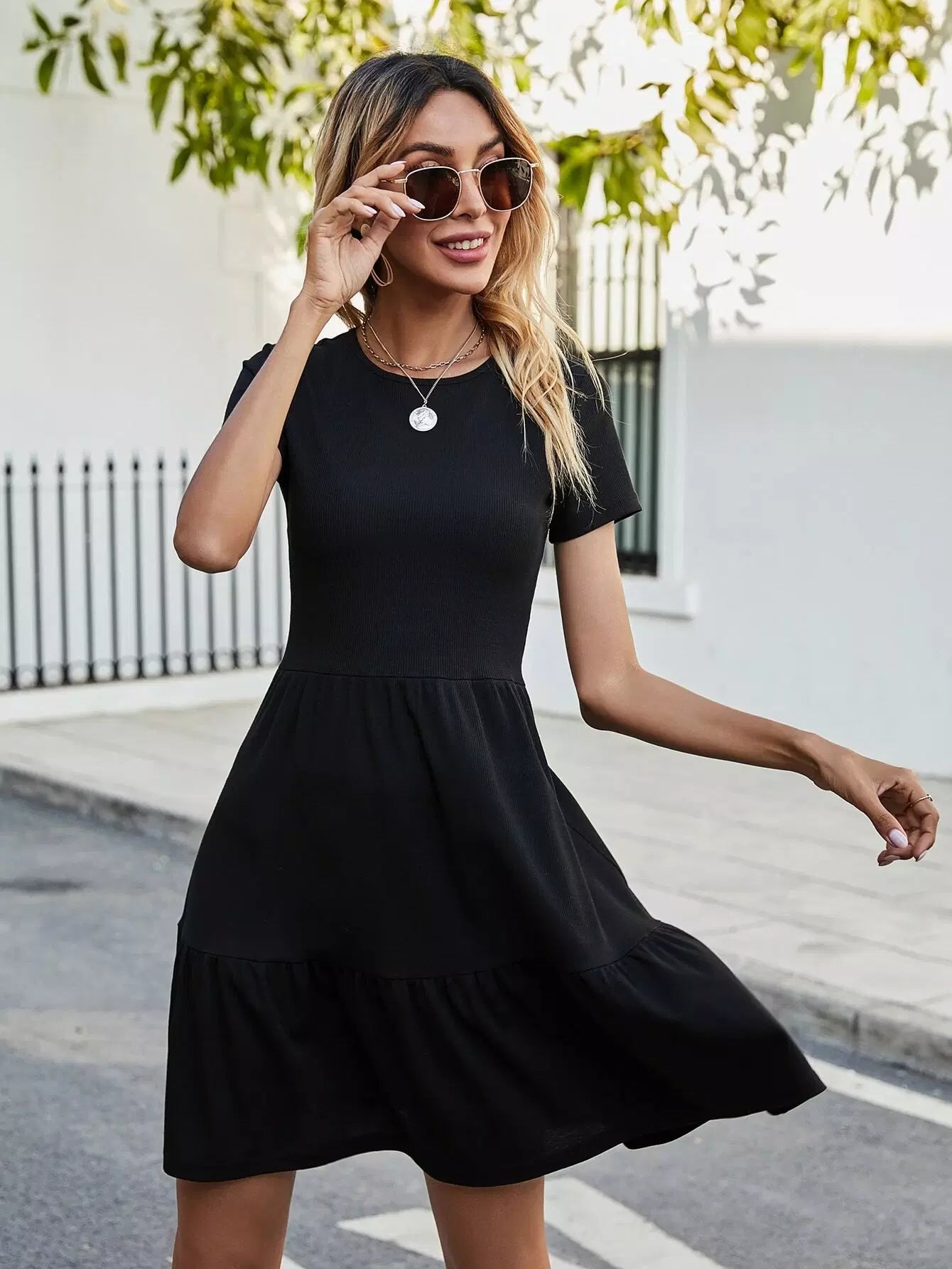 Solid Rib-Knit Ruffle Hem Dress