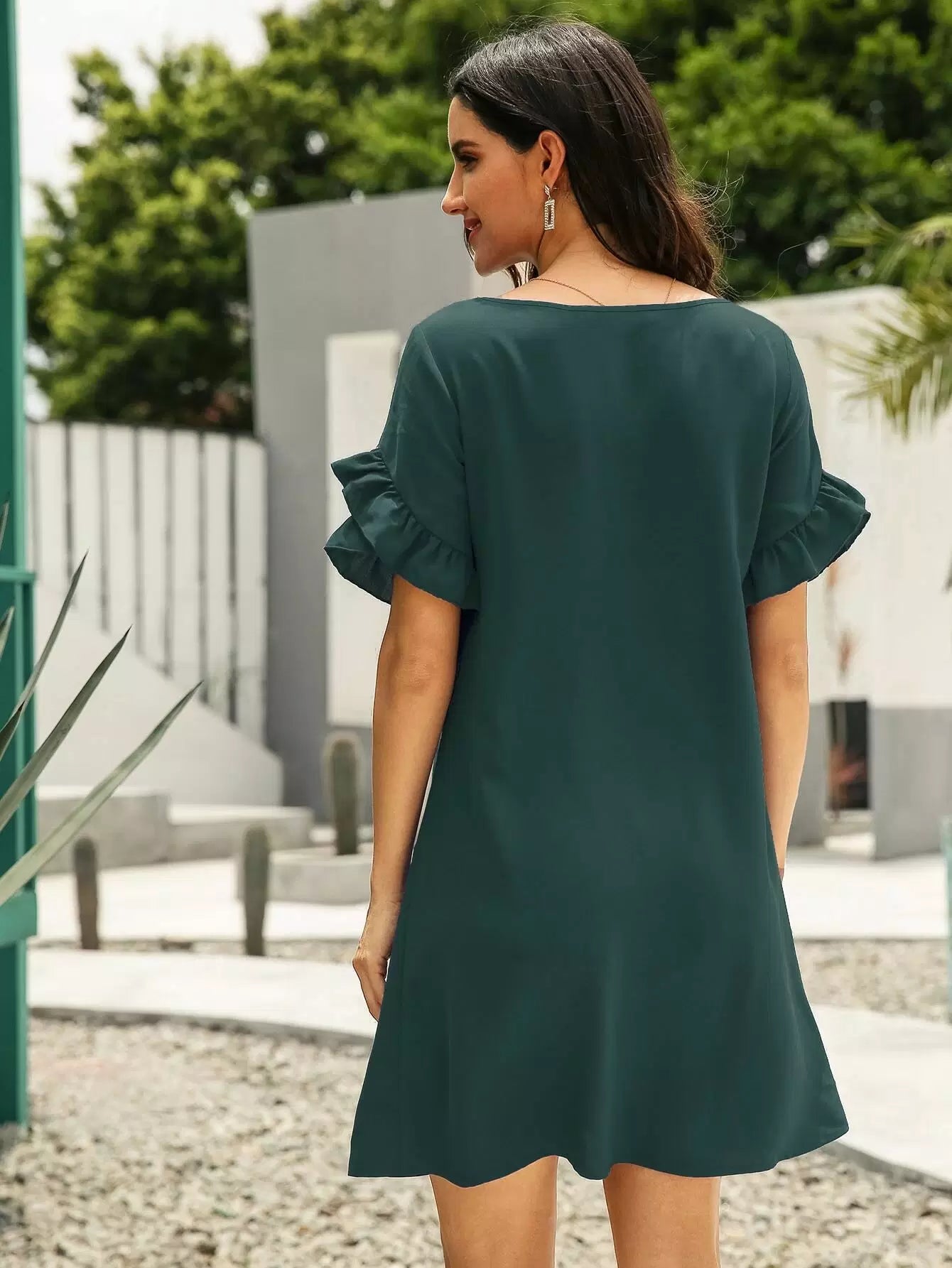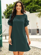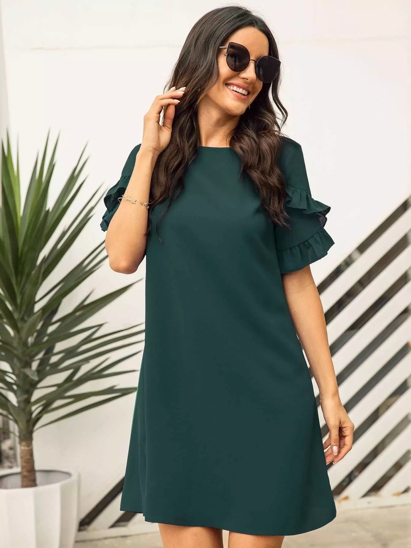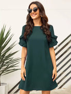 Solid Ruffle Trim Tunic Dress