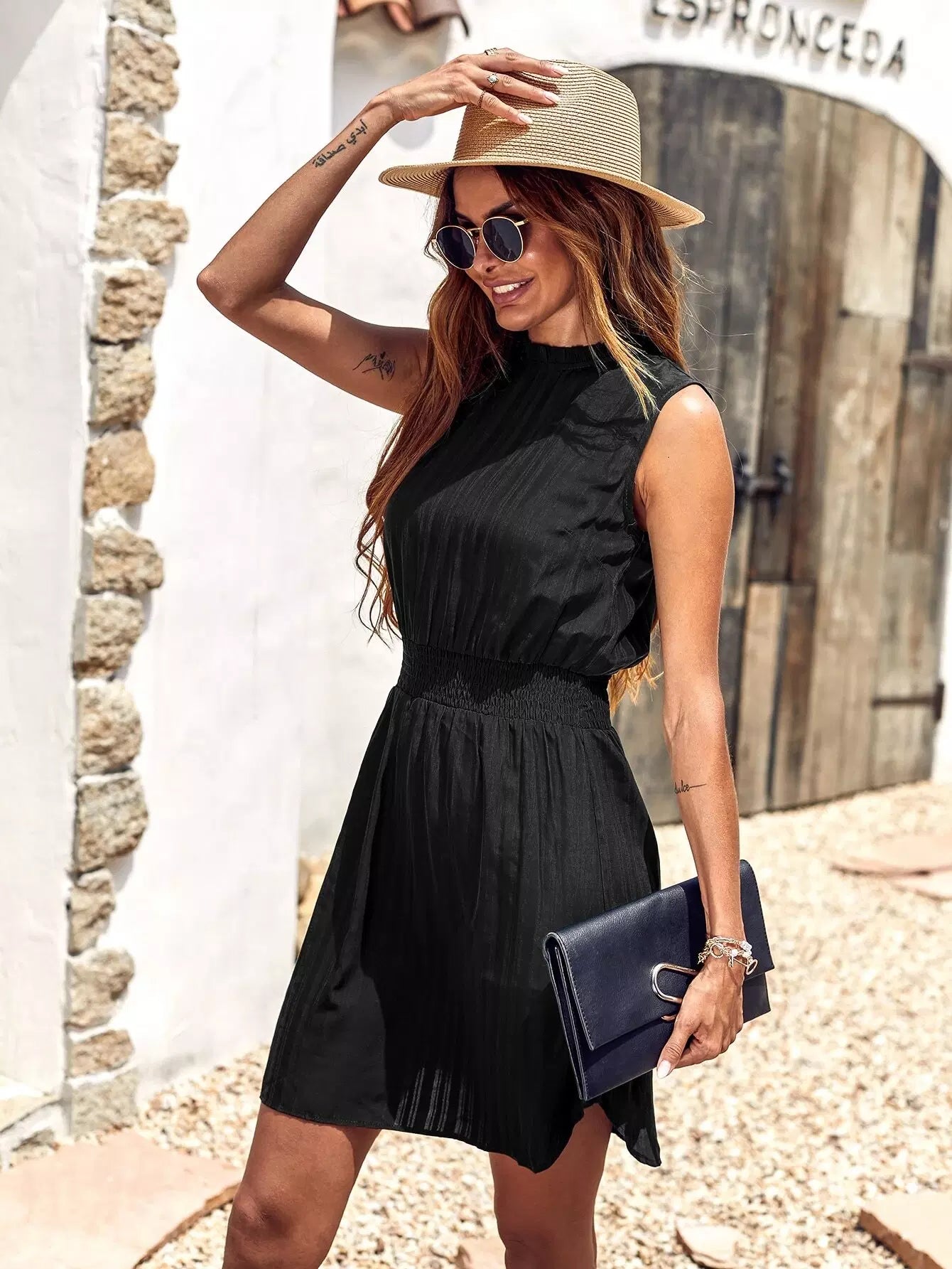 Solid Shirred Waist Dress