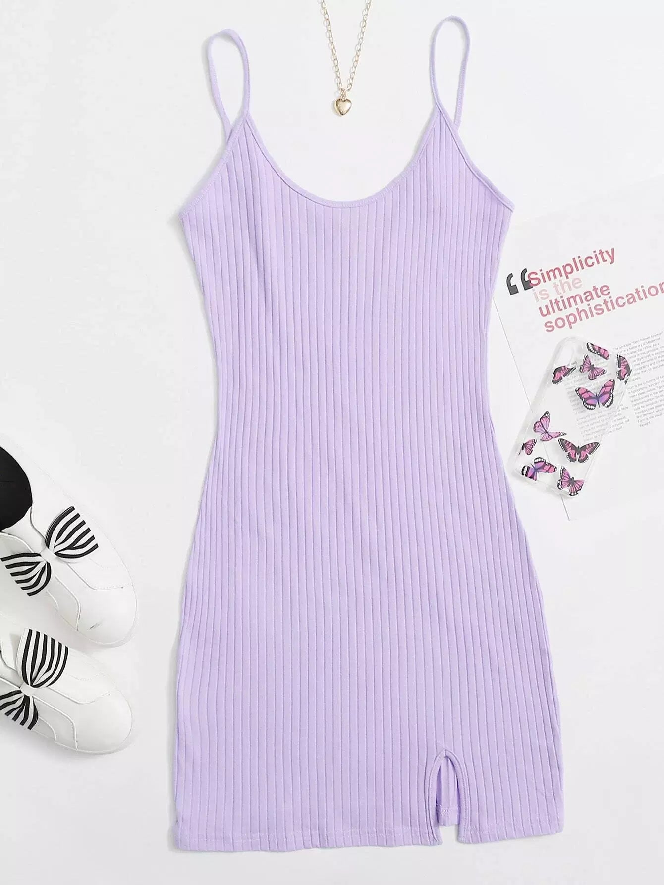 Split Hem Rib-knit Bodycon Dress