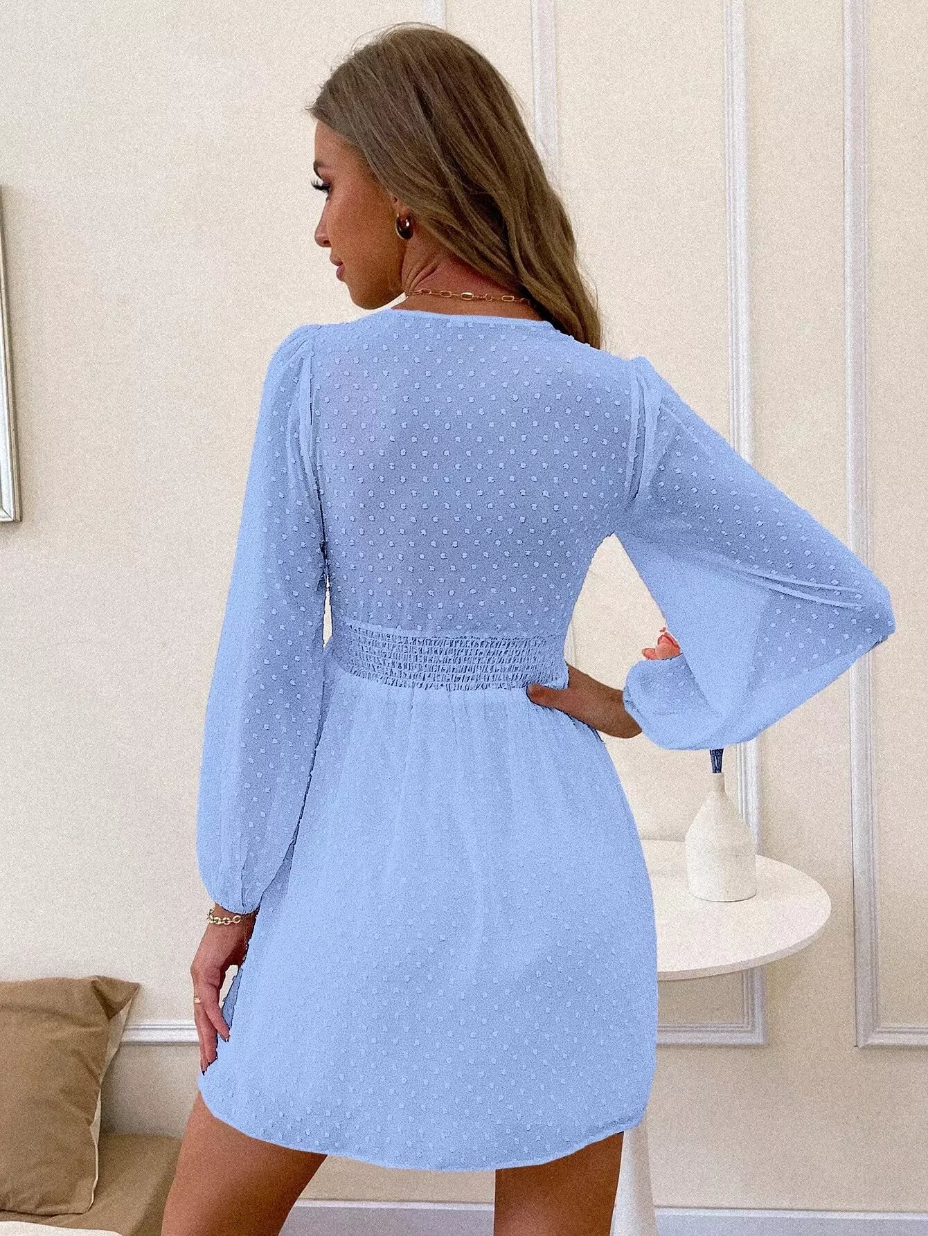 Swiss Dot Bishop Sleeve A-line Dress
