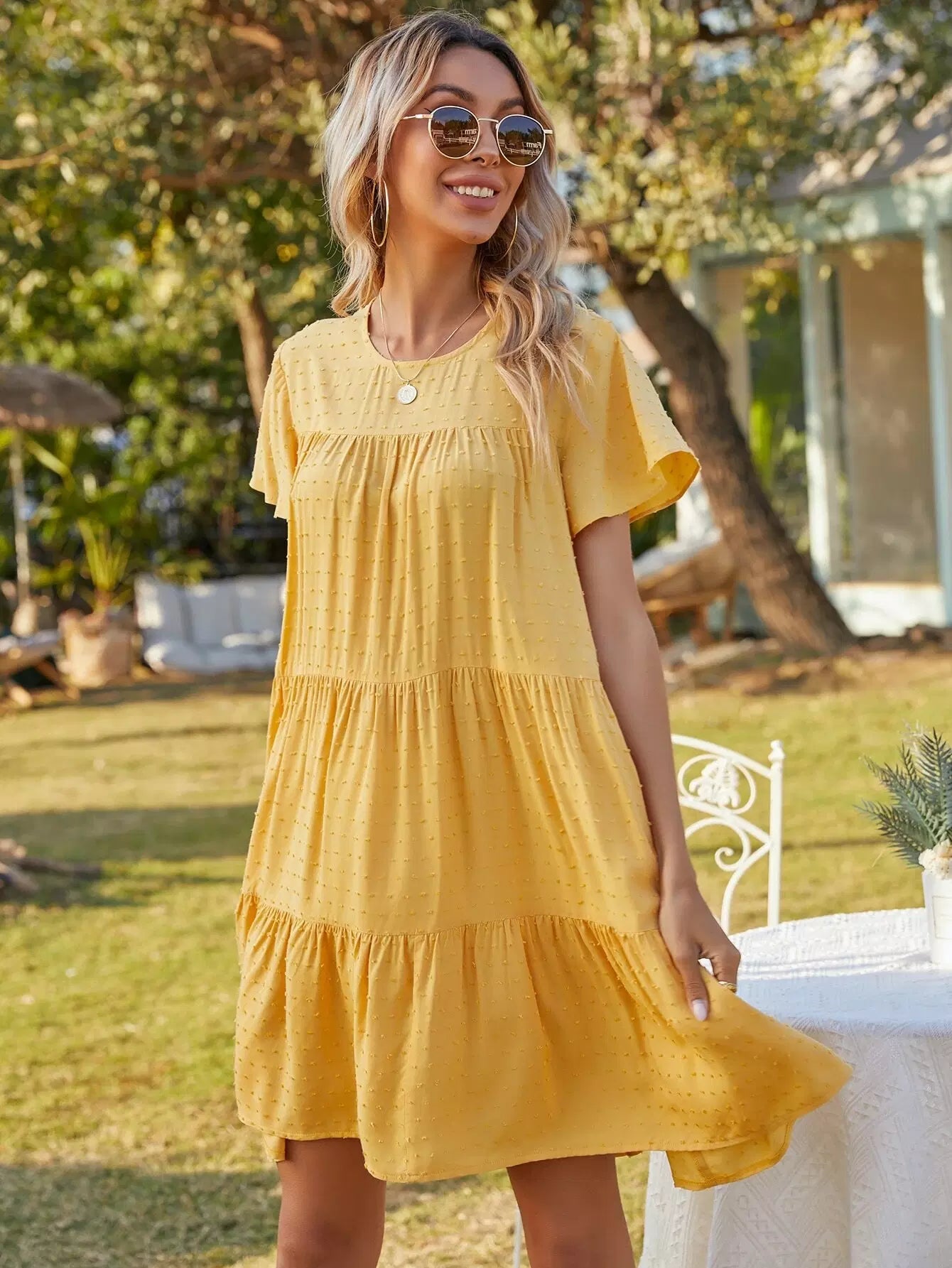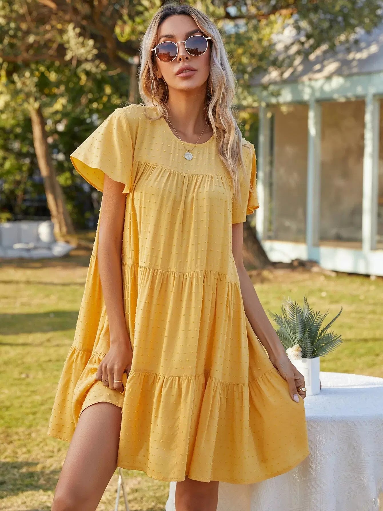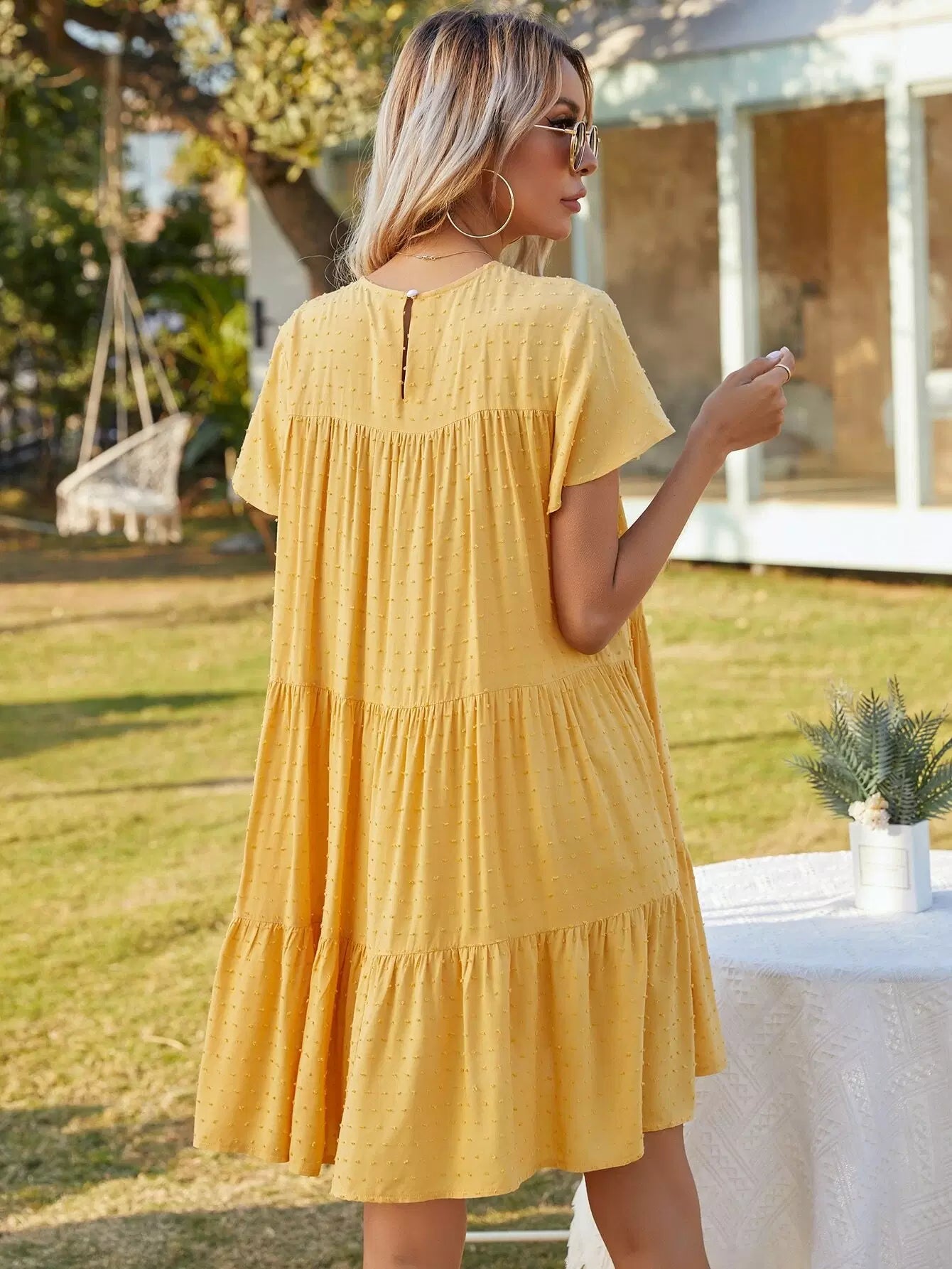 Swiss Dot Ruffle Hem Smock Dress