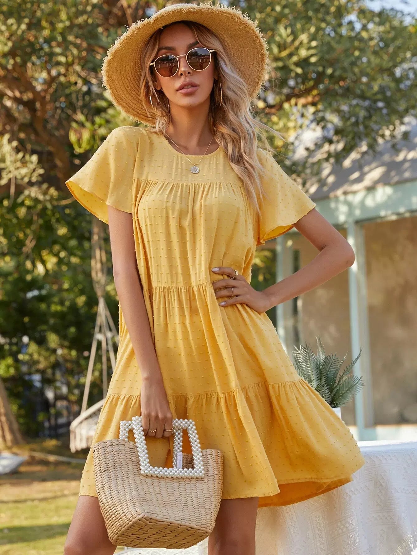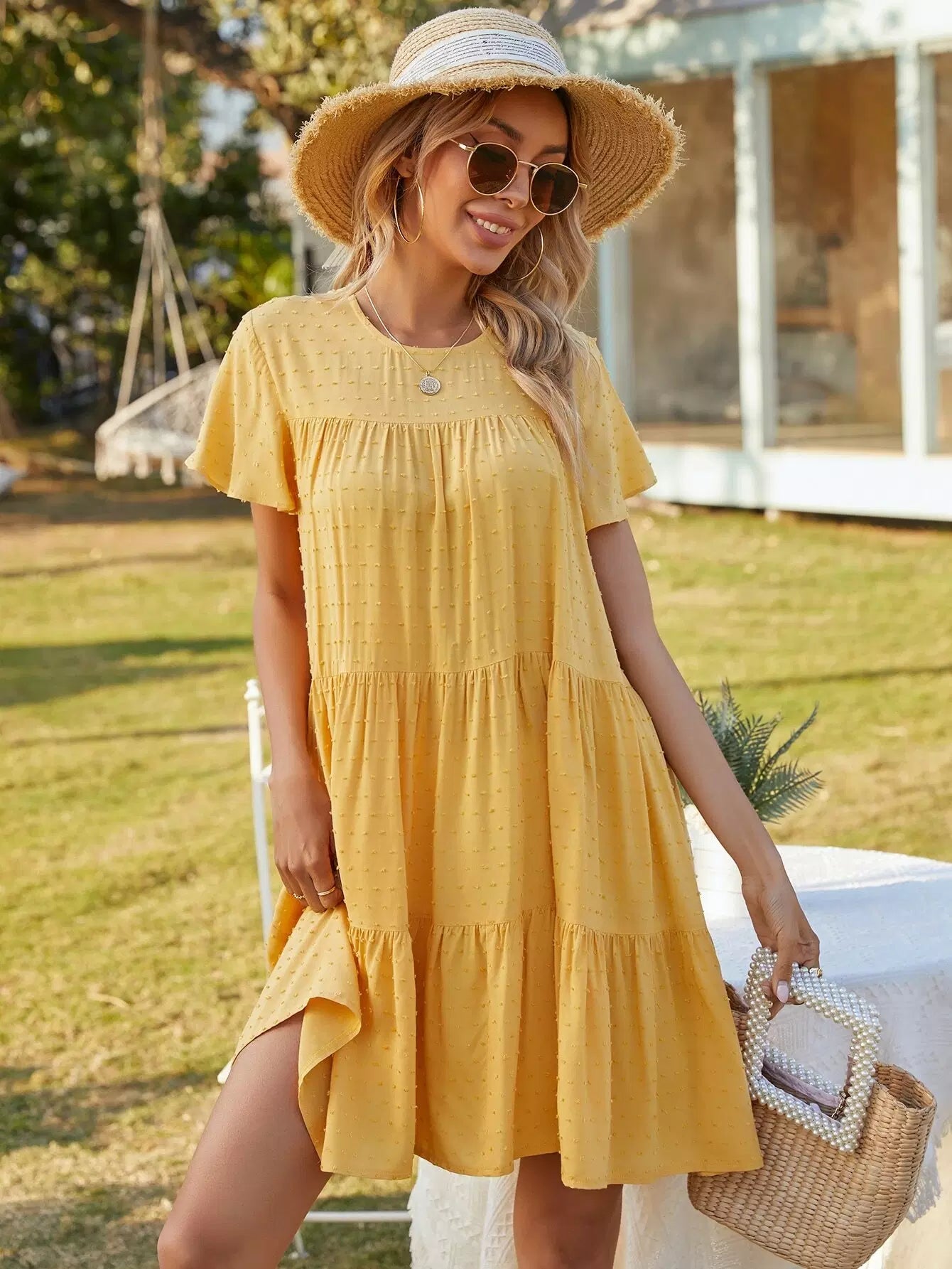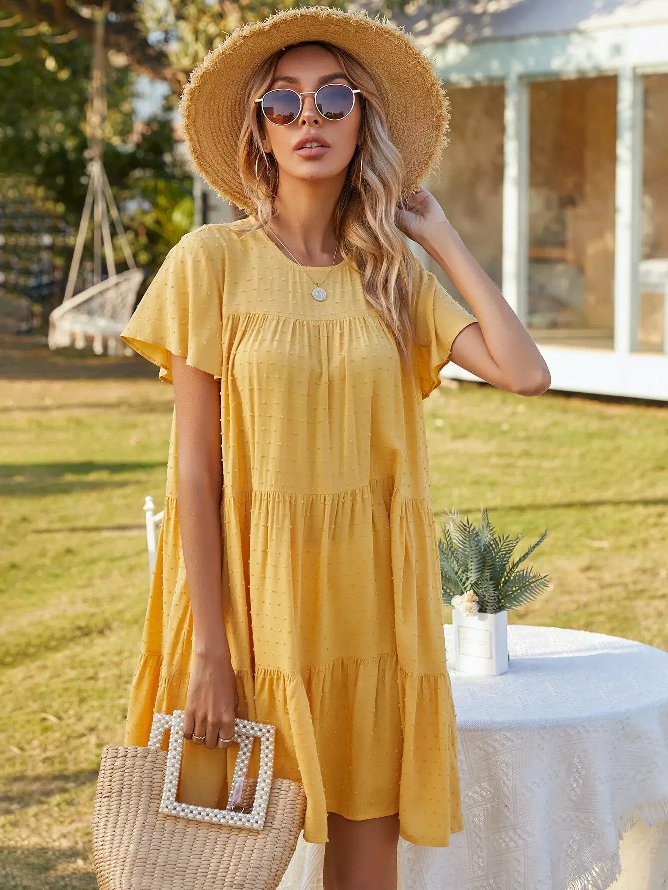 Swiss Dot Ruffle Hem Smock Dress