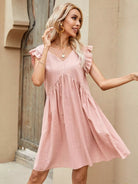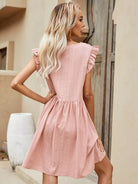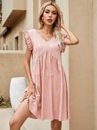 Swiss Dot V-neck Ruffle Trim Babydoll Dress