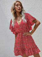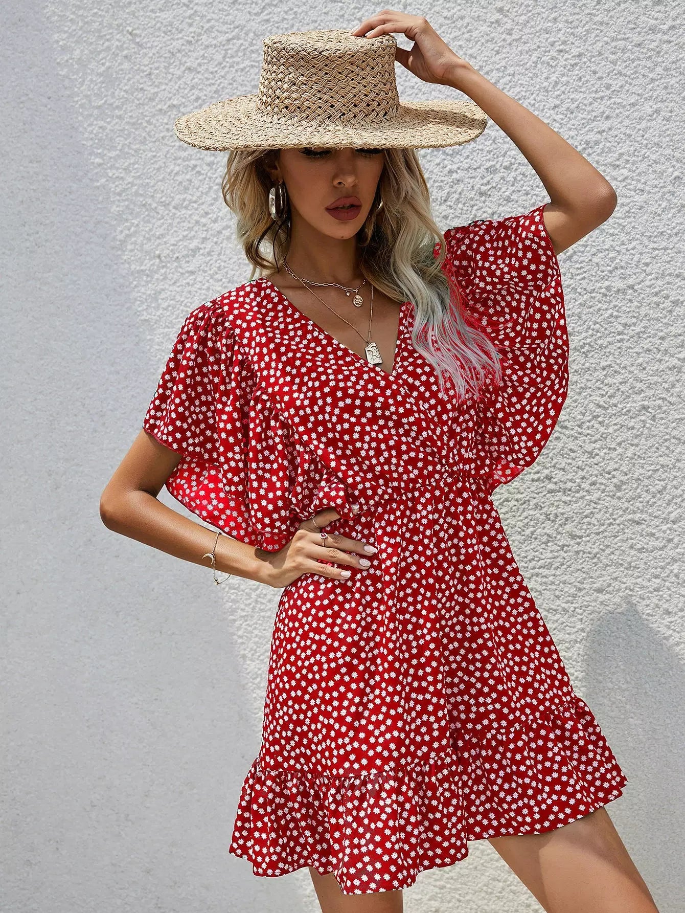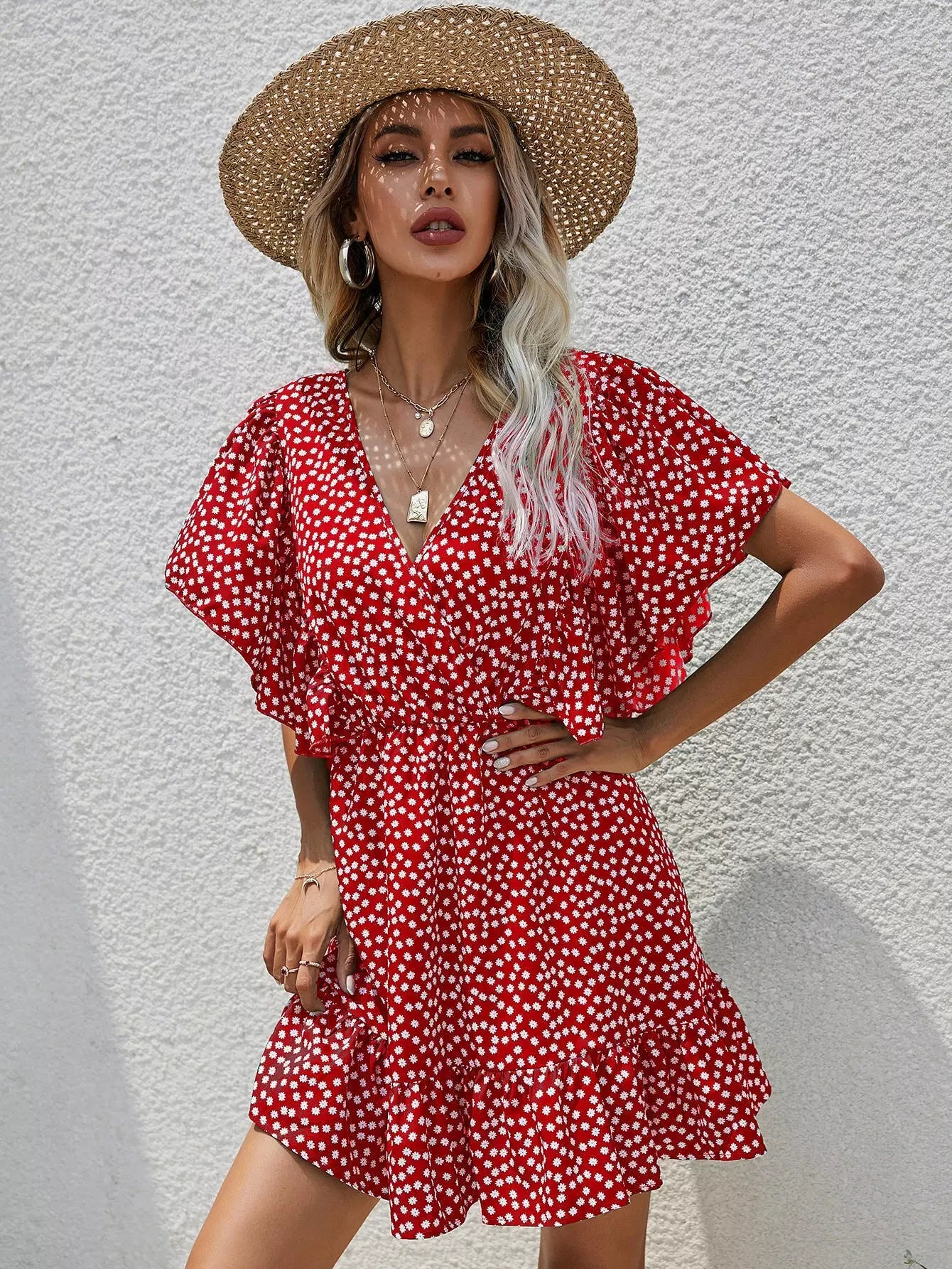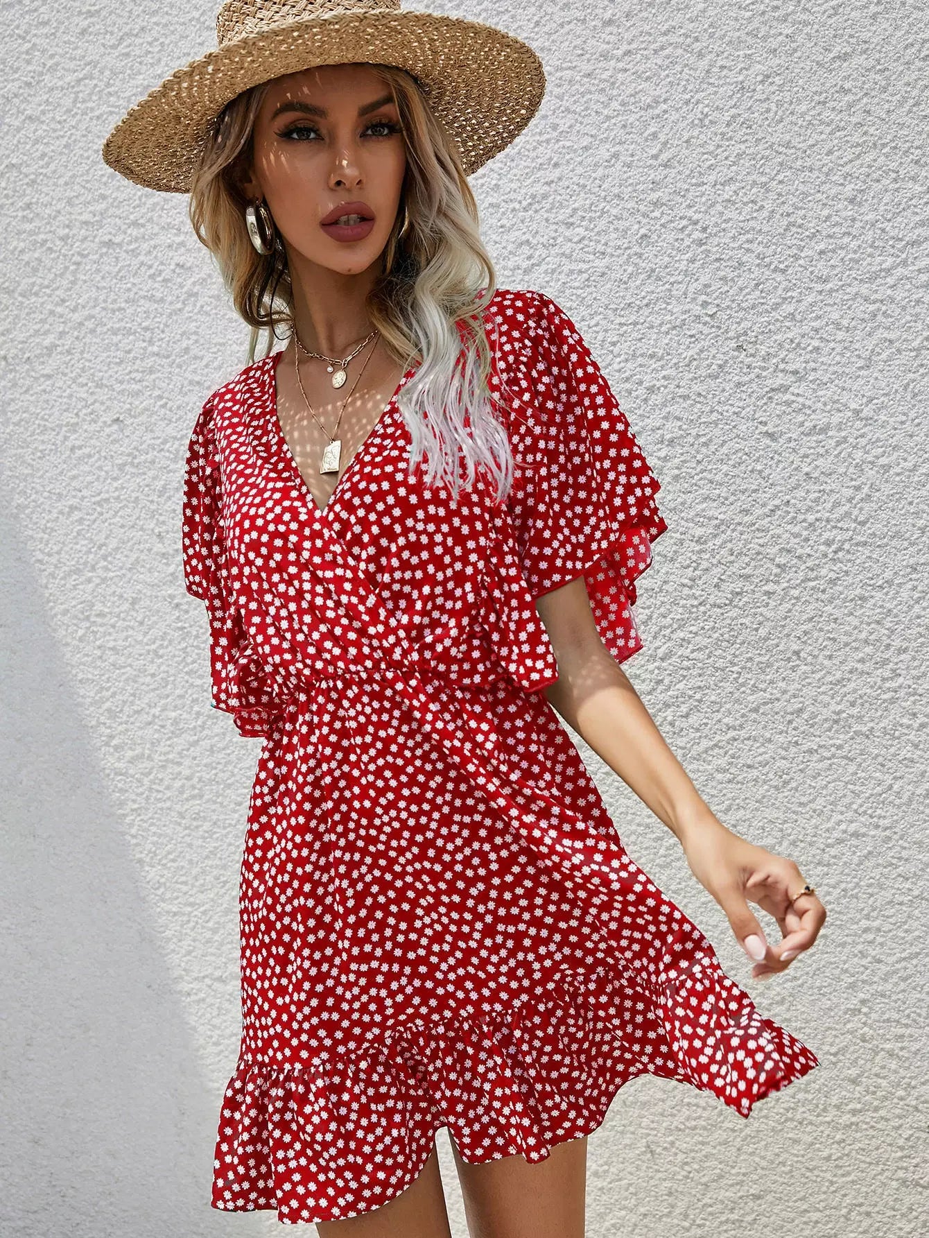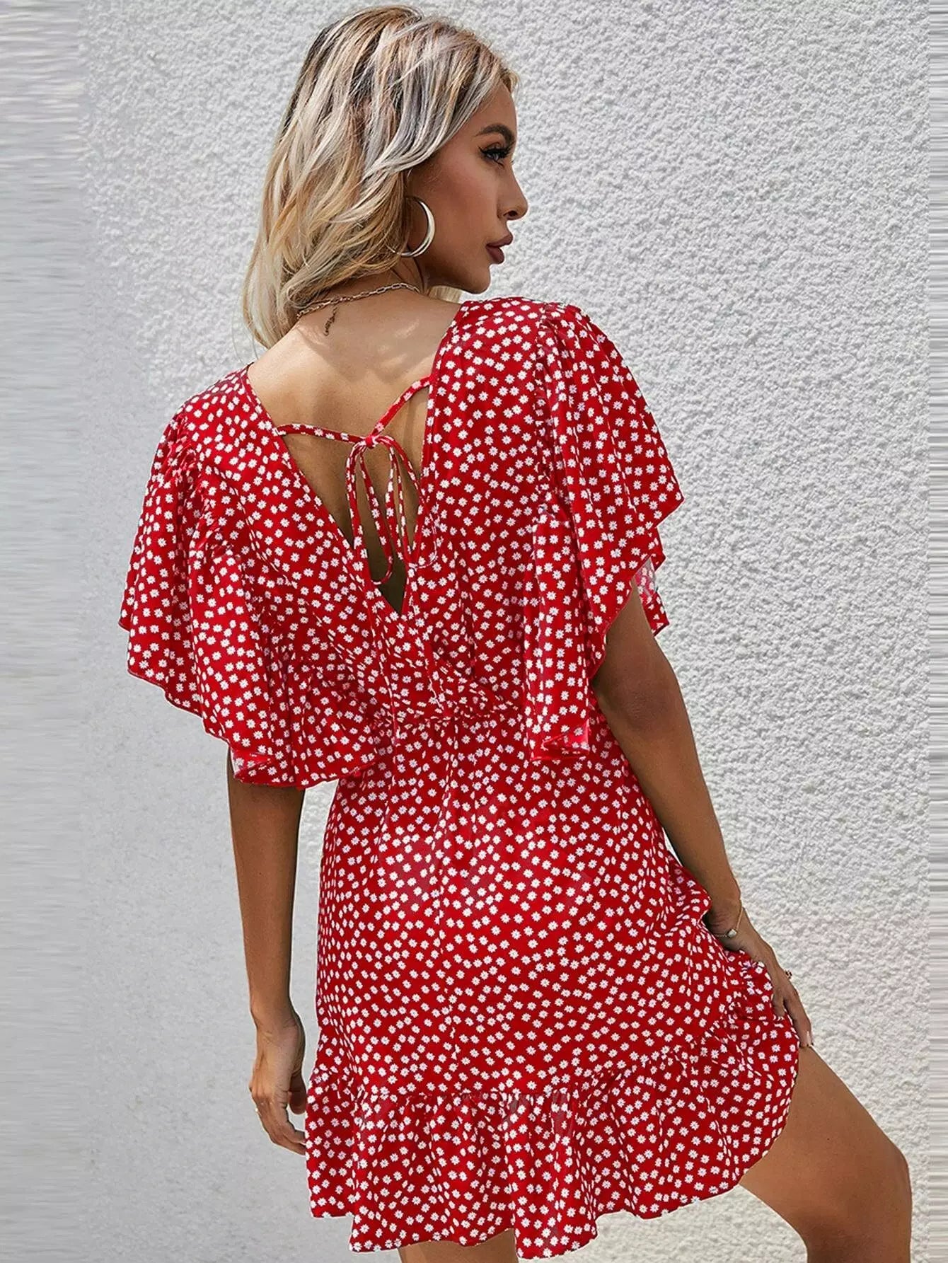 Tie Back Ruffle Trim Ditsy Floral Dress