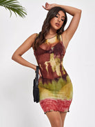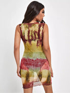 Women - Tie Dye Lettuce Trim Sheer Mesh Dress Without Underwear