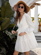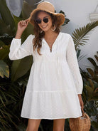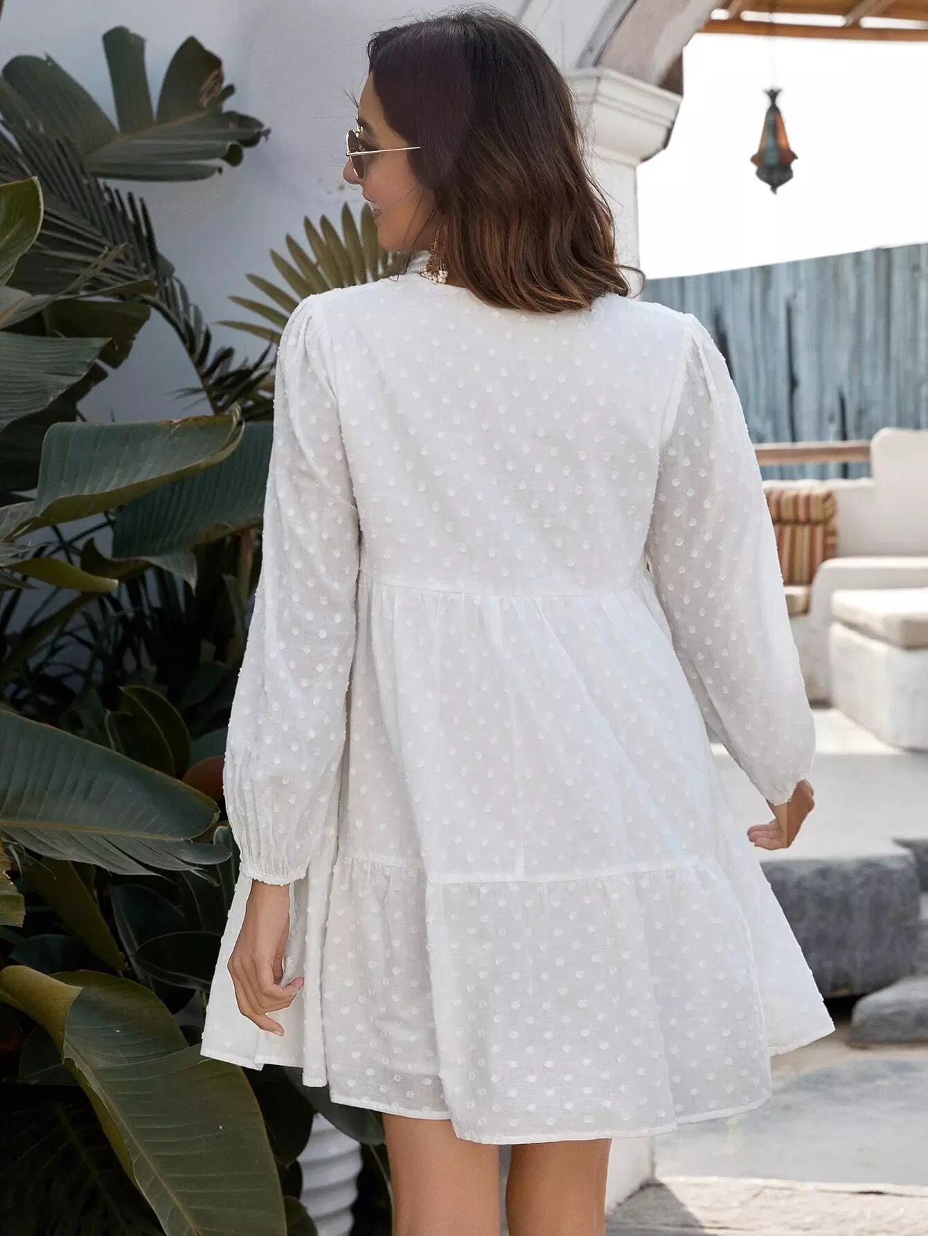 Tie Neck Swiss Dot Ruffle Hem Smock Dress