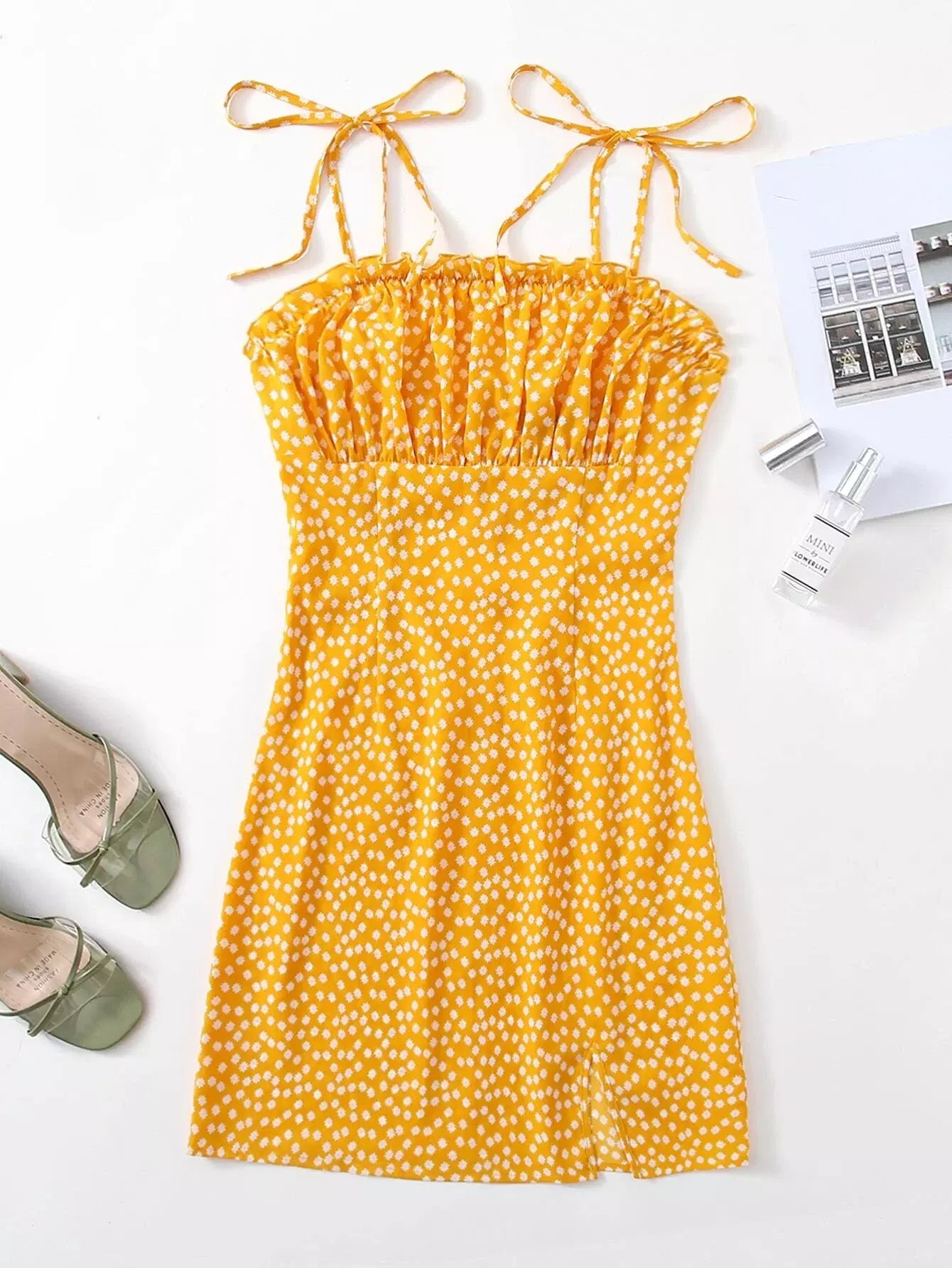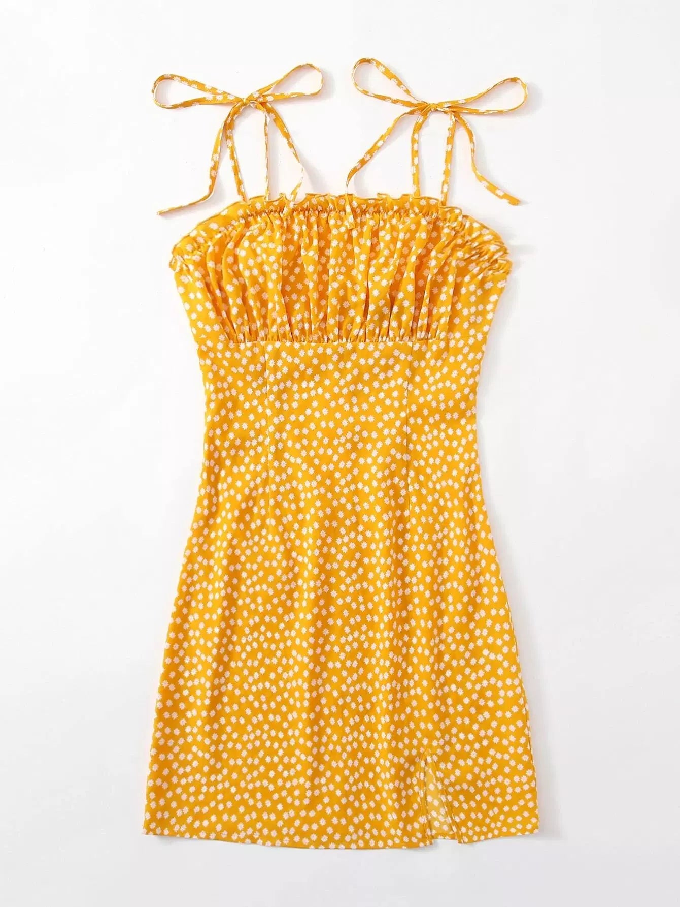 Tie Shoulder Ruched Bust Ditsy Floral Dress