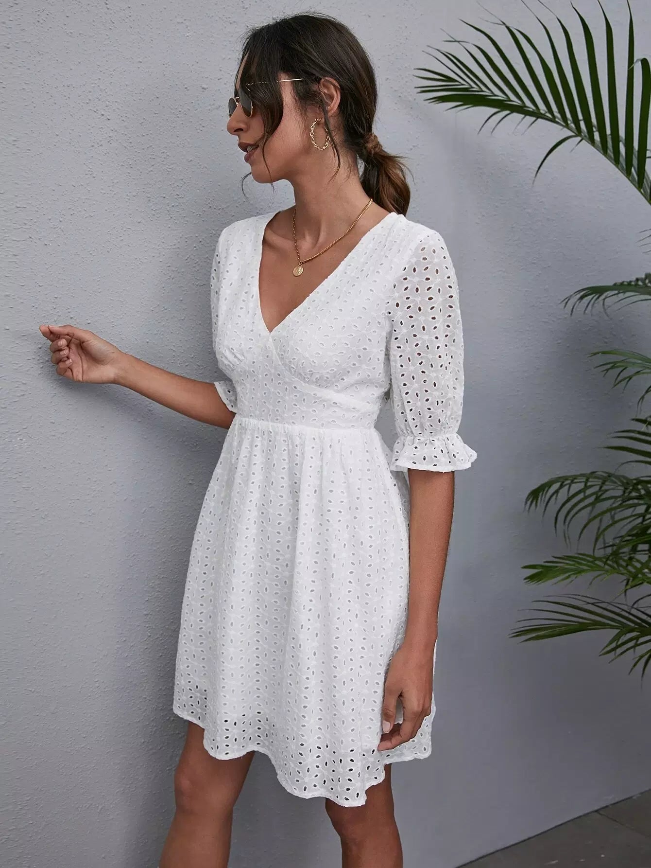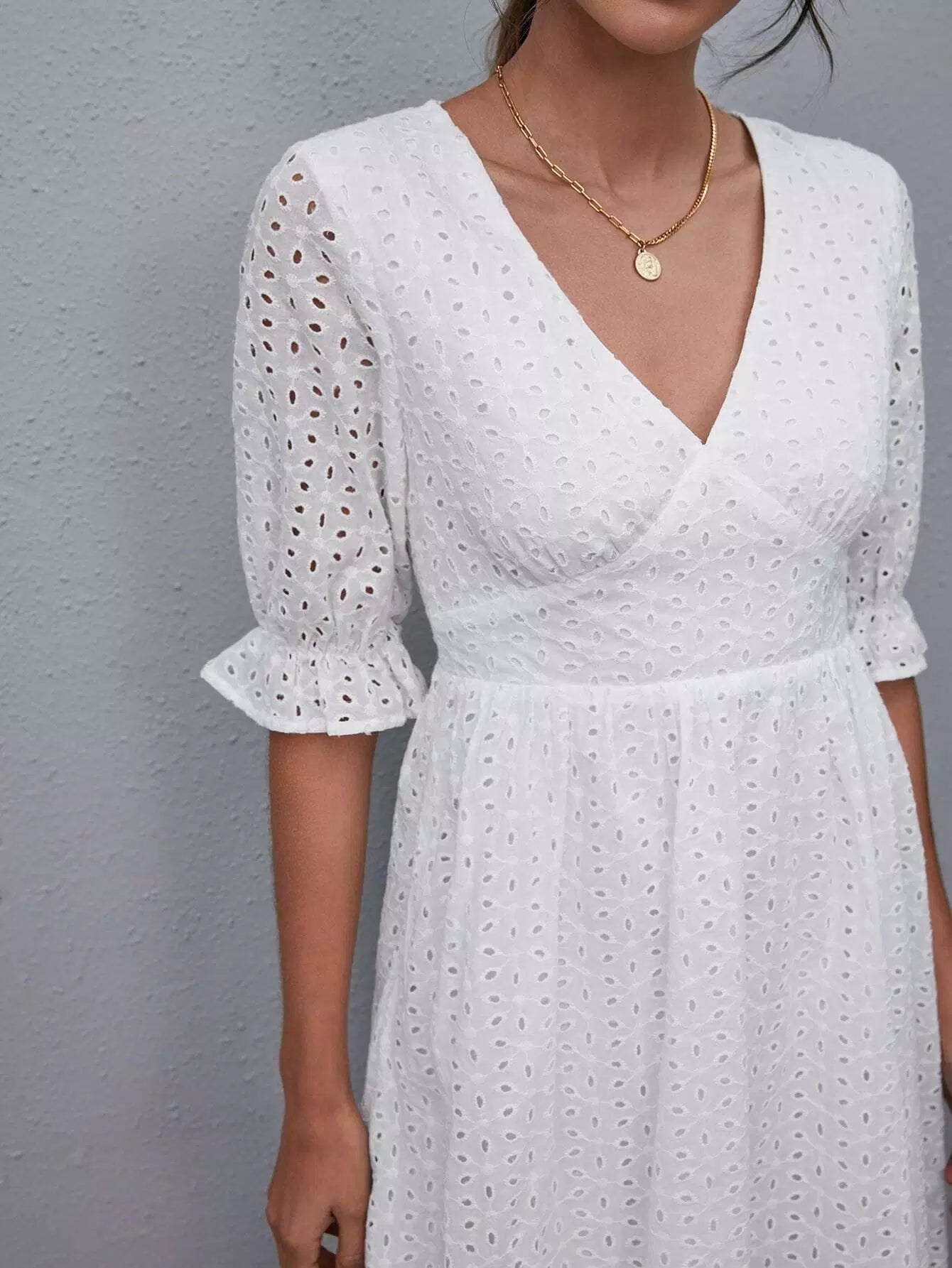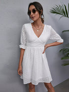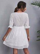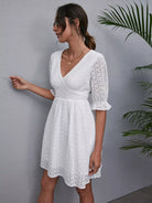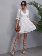 Women - V-neck Flounce Sleeve Schiffy Dress