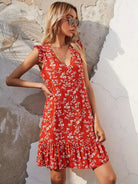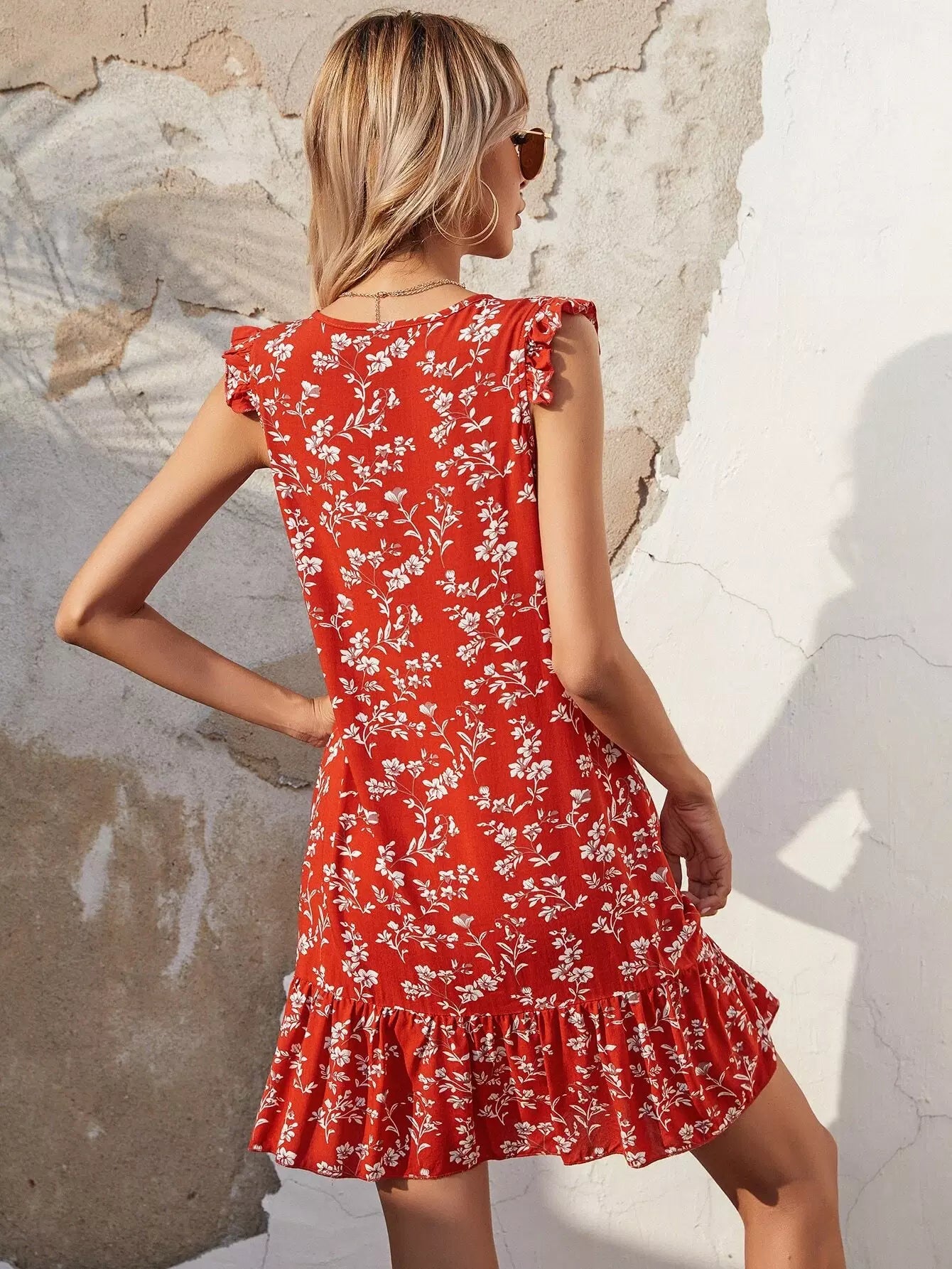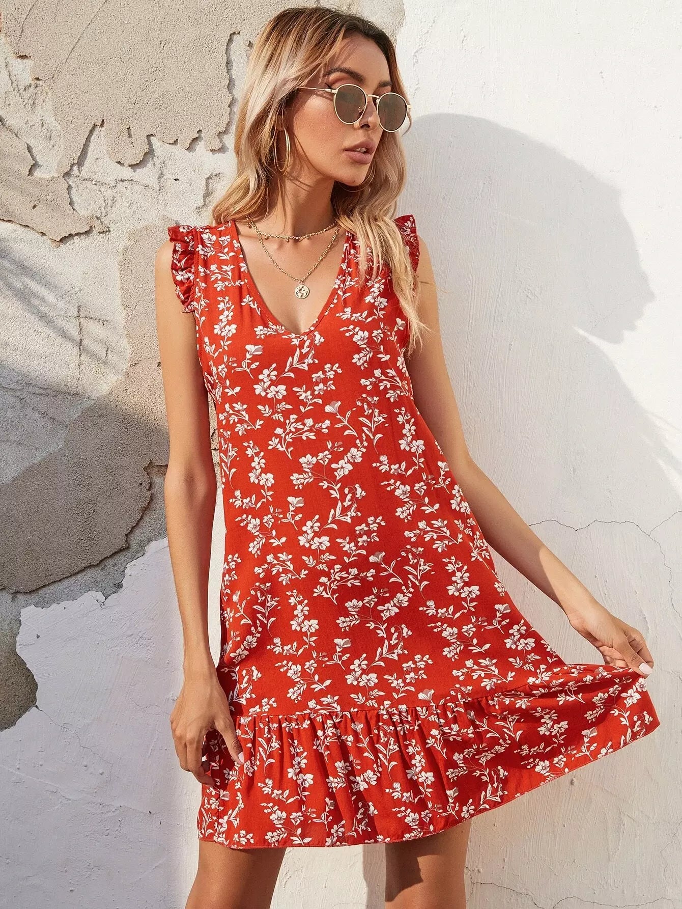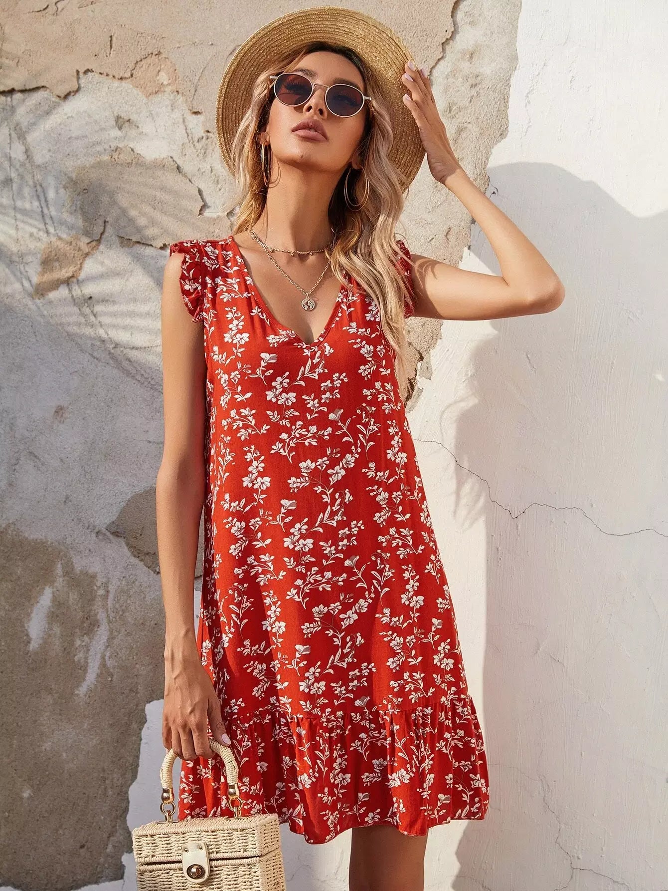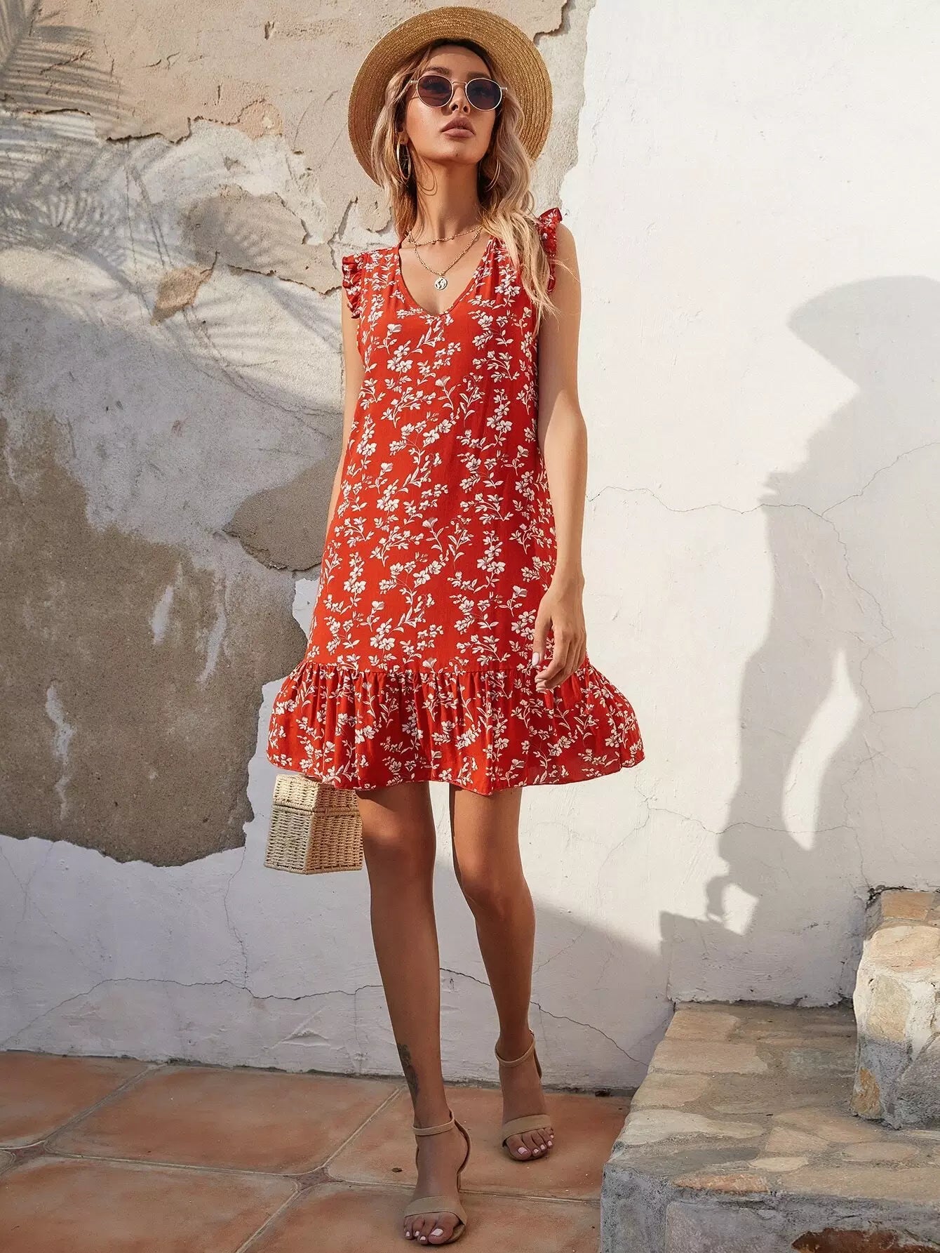 Women - All Over Floral Print Ruffle Hem Smock Dress