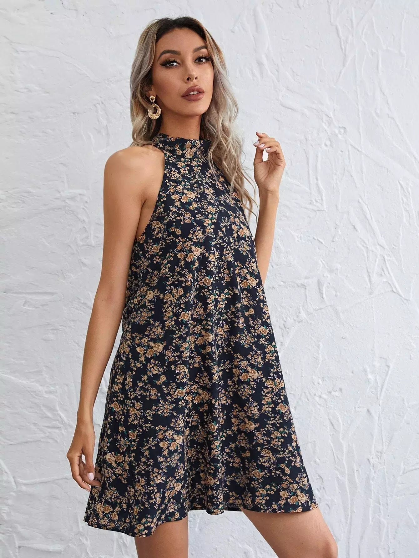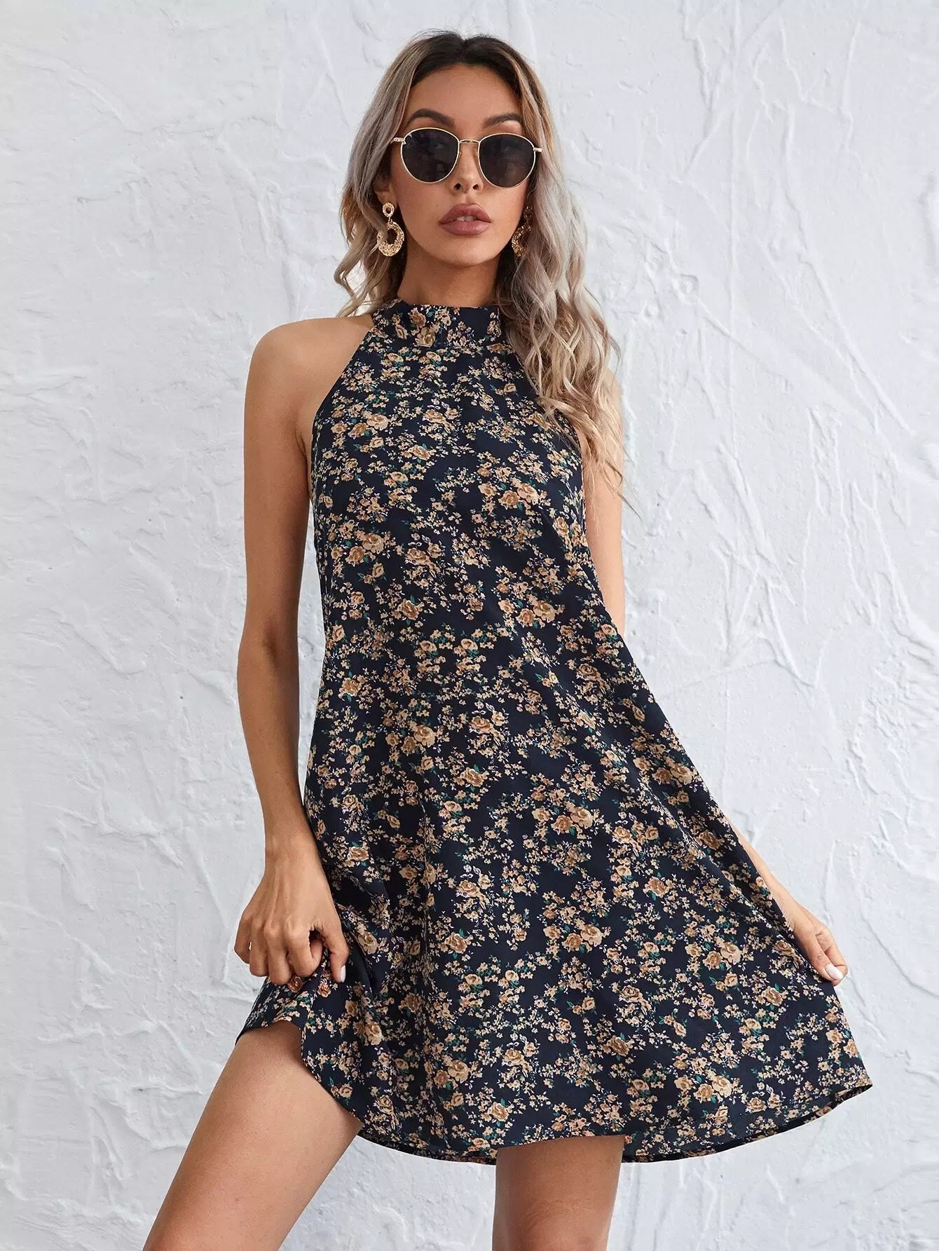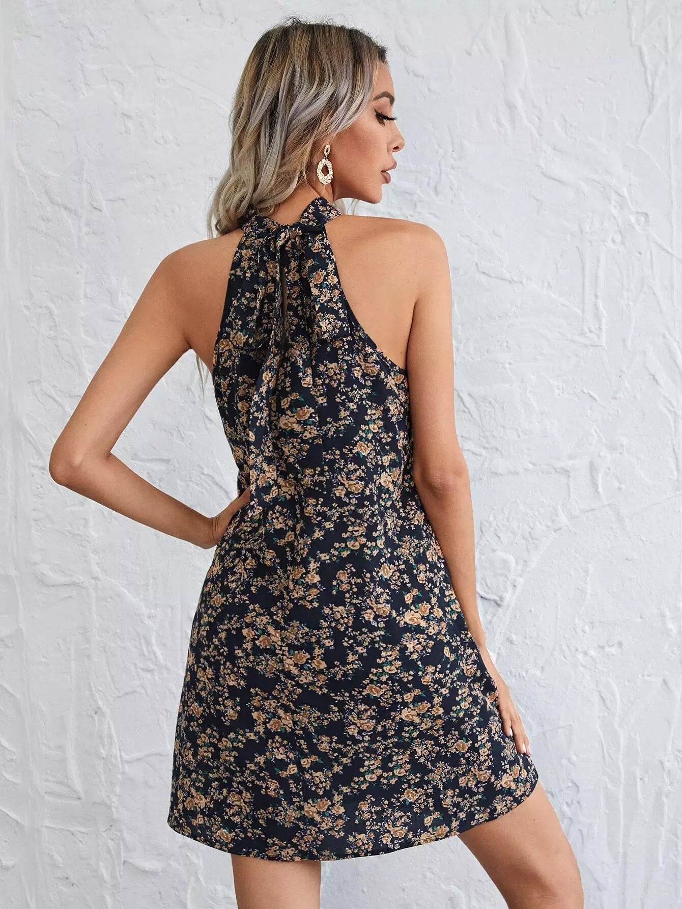 All Over Floral Tie Back Halter Dress