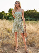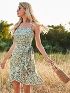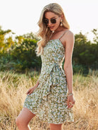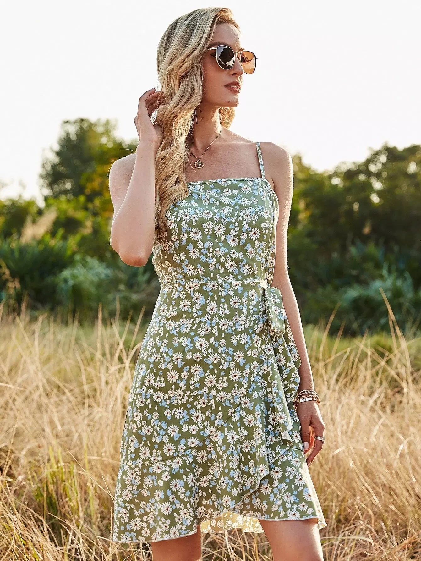 Allover Floral Knot Ruffle Wrap Cami Sundress