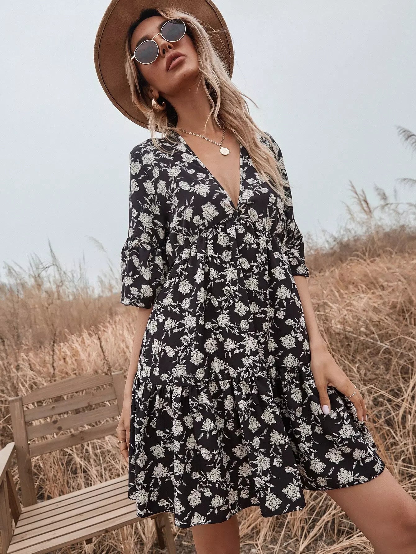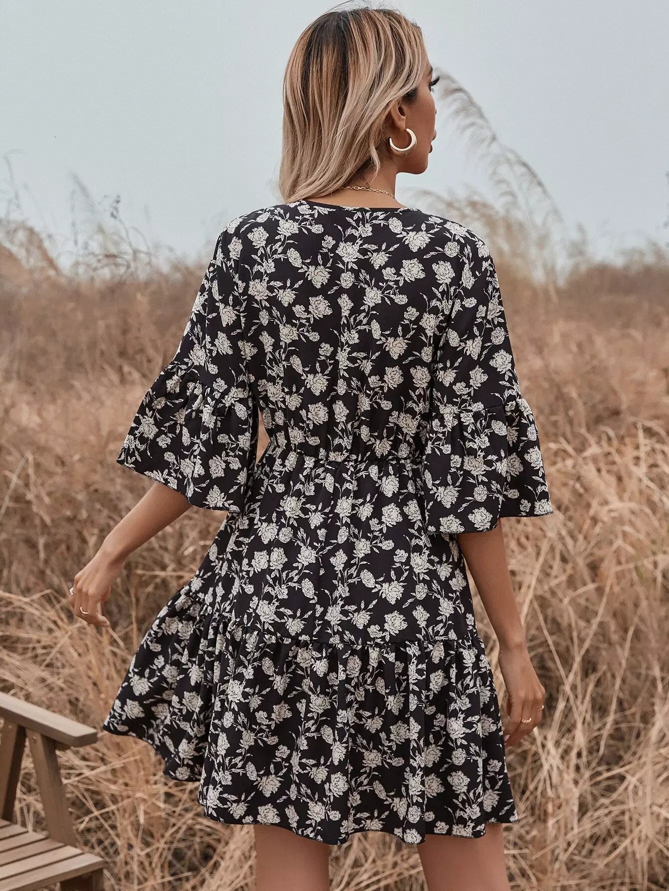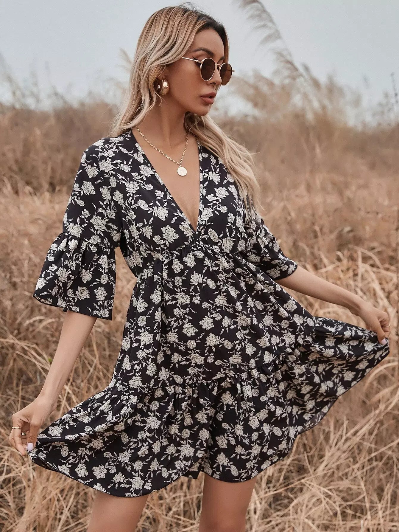 Women - Allover Floral Print Ruffle Hem A-line Dress