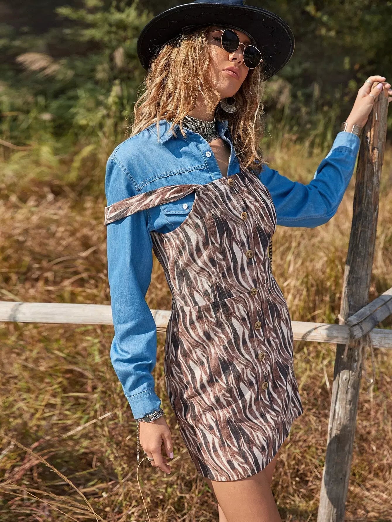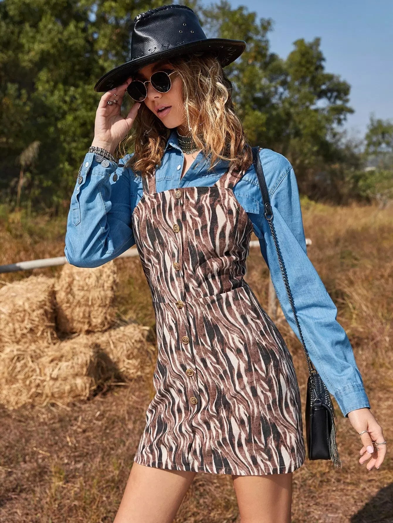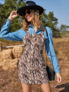 Allover Print Button Detail Suspender Dress