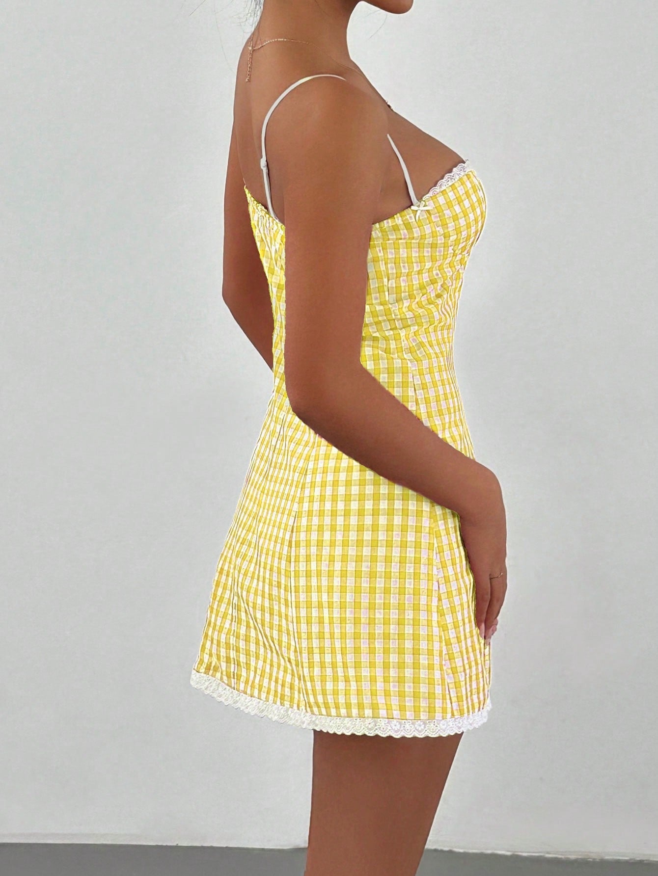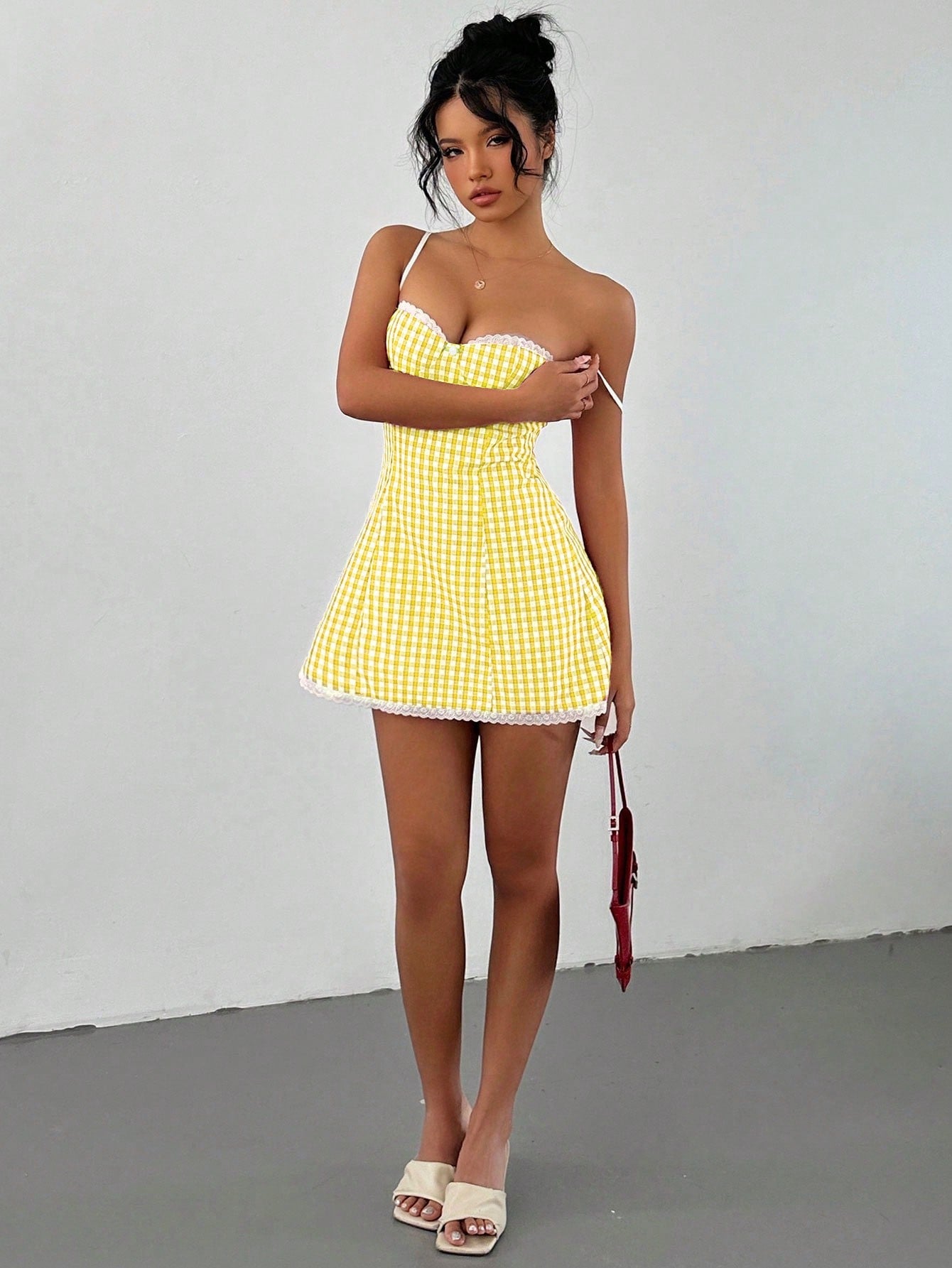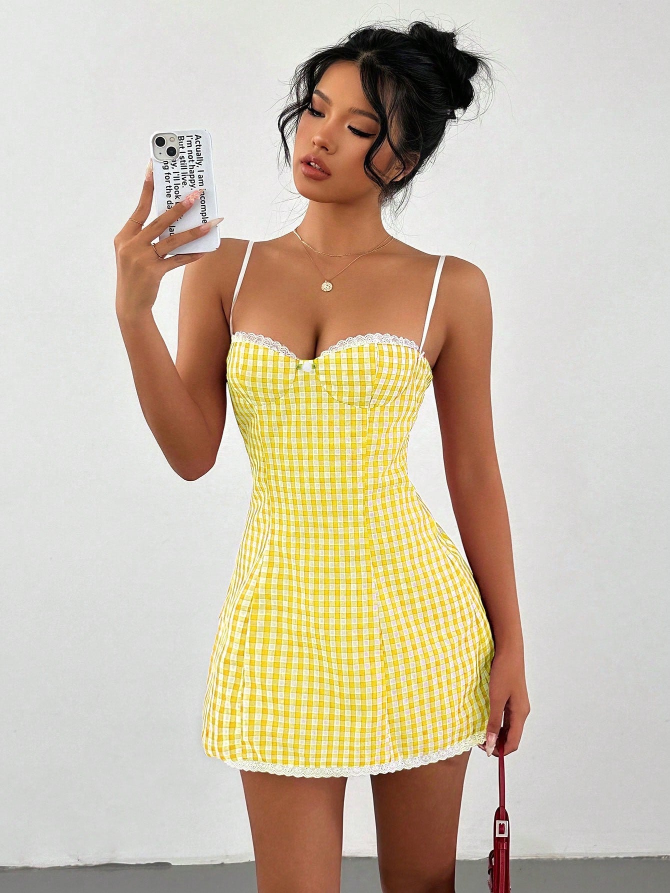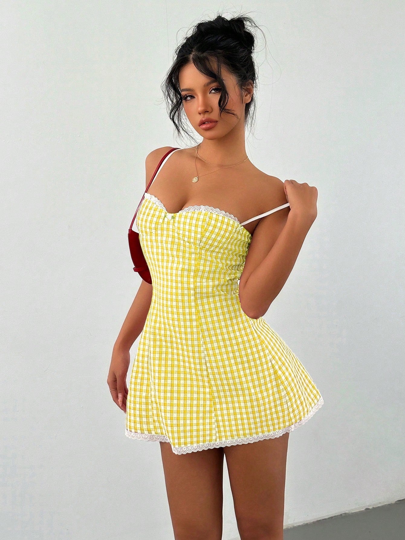 Aloruh Women Camisole Bodice Mini A-Line Lace Trim Bodycon Dress,Summer Dresses For Women,Pastel Dresses