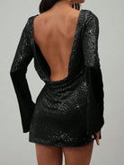 Aloruh Women's Plunge Neck Backless Sequin Mini Party Dress