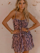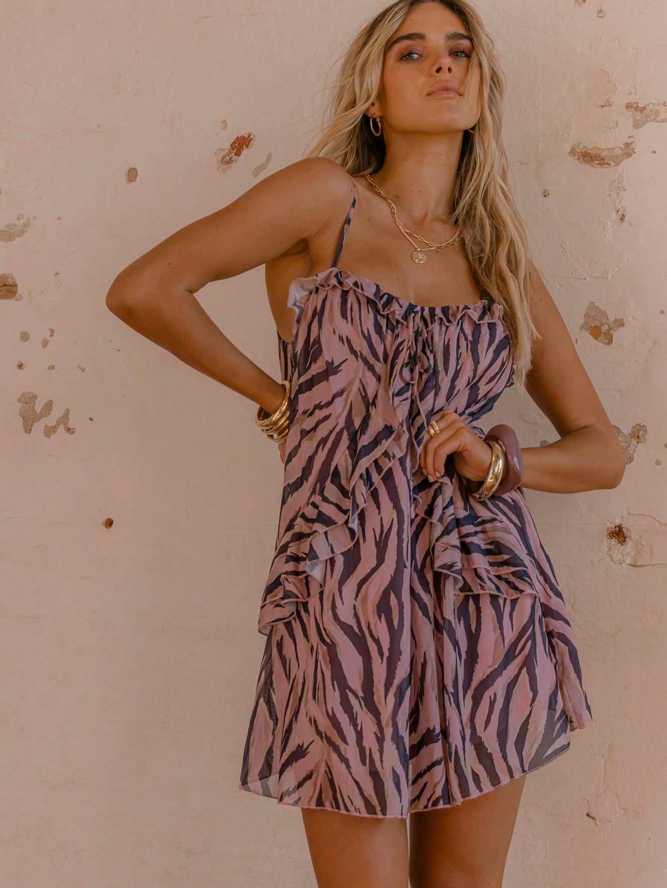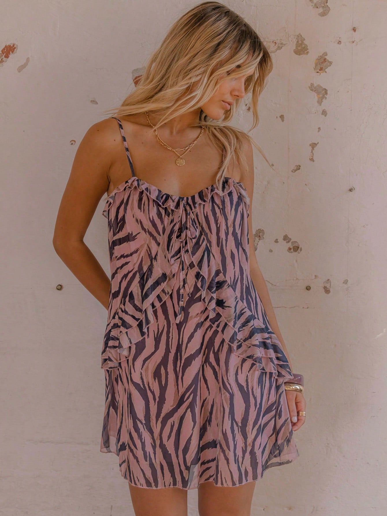 Aralina Summer Winter Ruffle Animal Print Sexy Pink Mesh Mini Dress