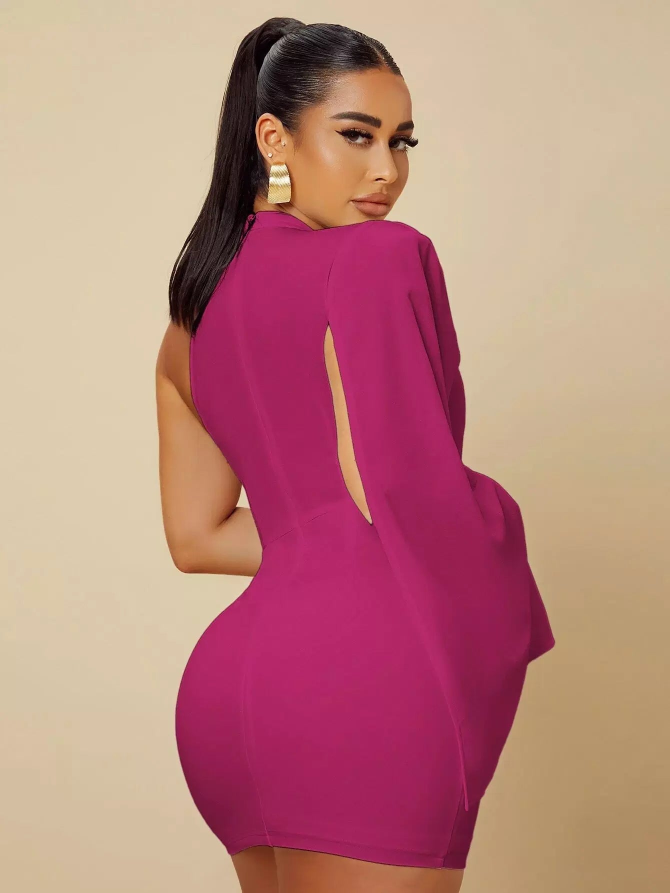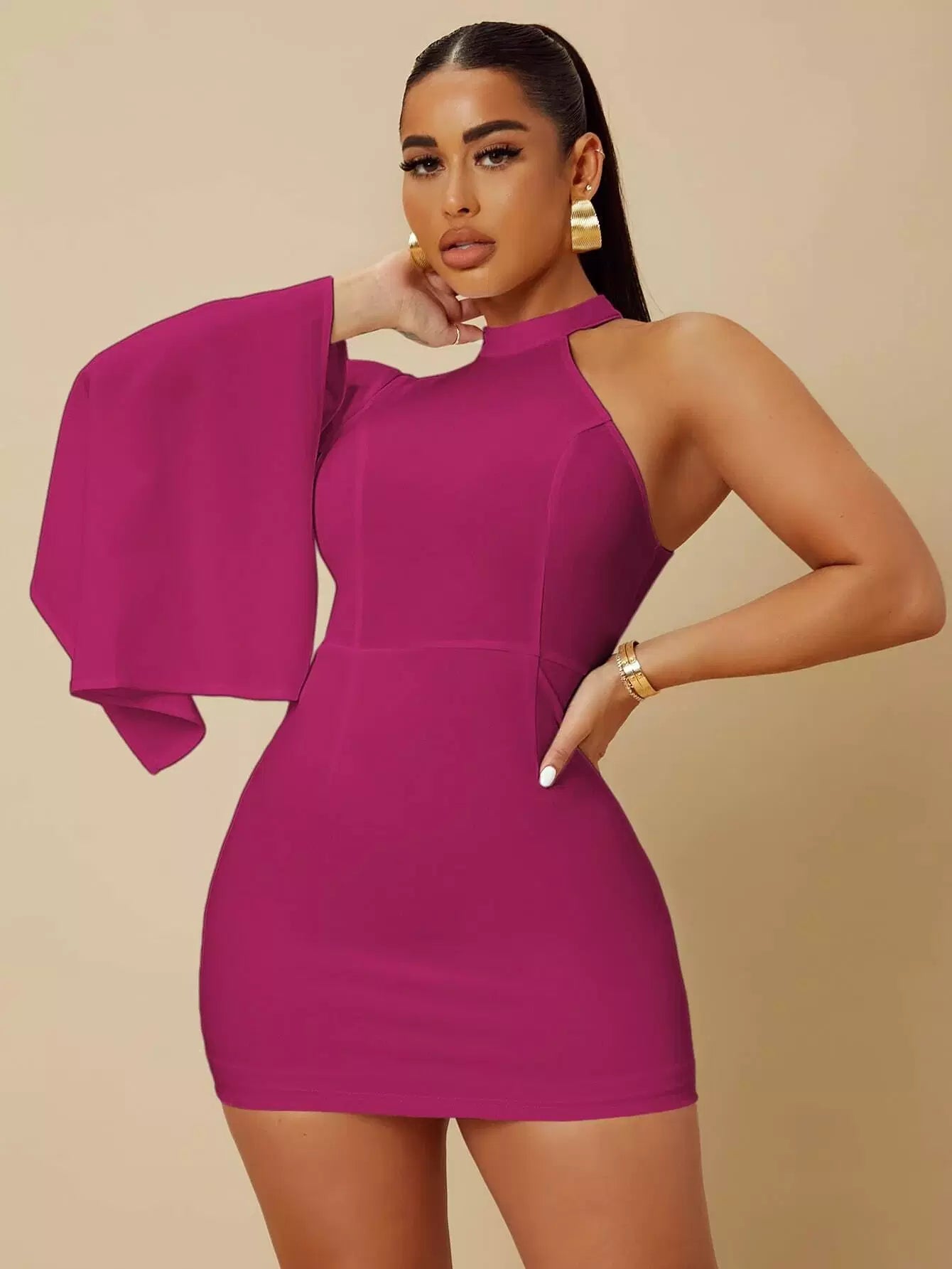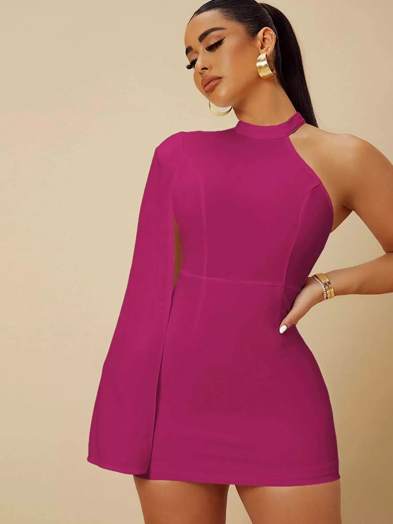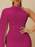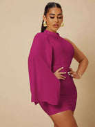 Asymmetrical Neck Slit Sleeve Bodycon Dress